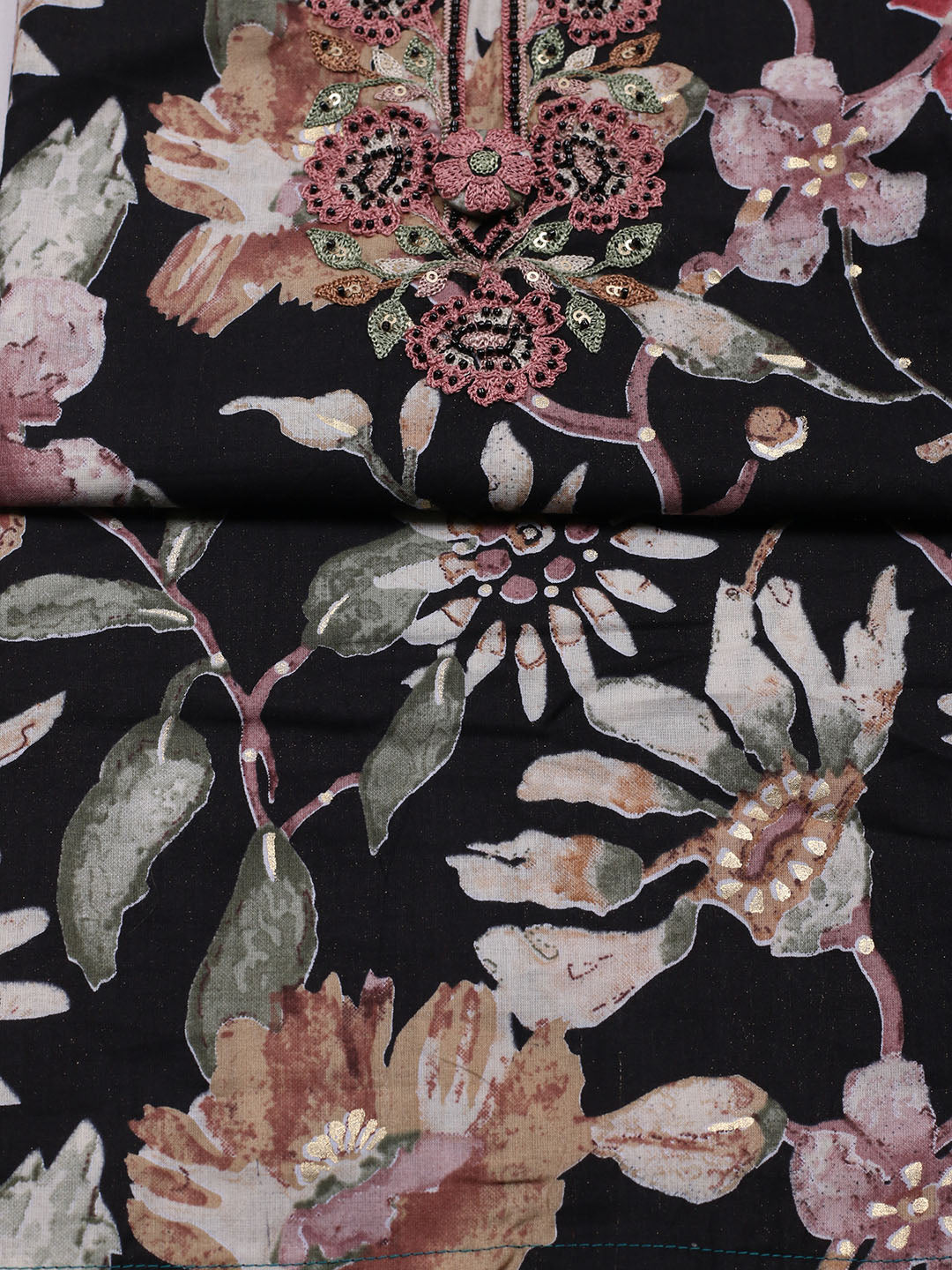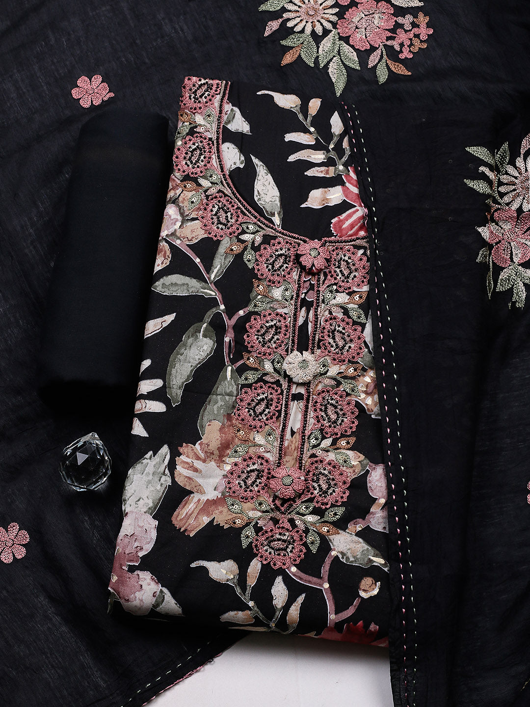Embroidered Cotton Blend Unstitched Suit With Pant & Dupatta