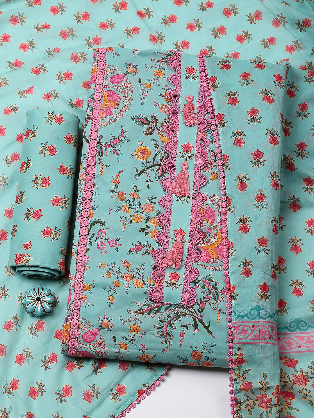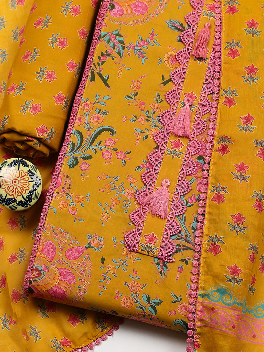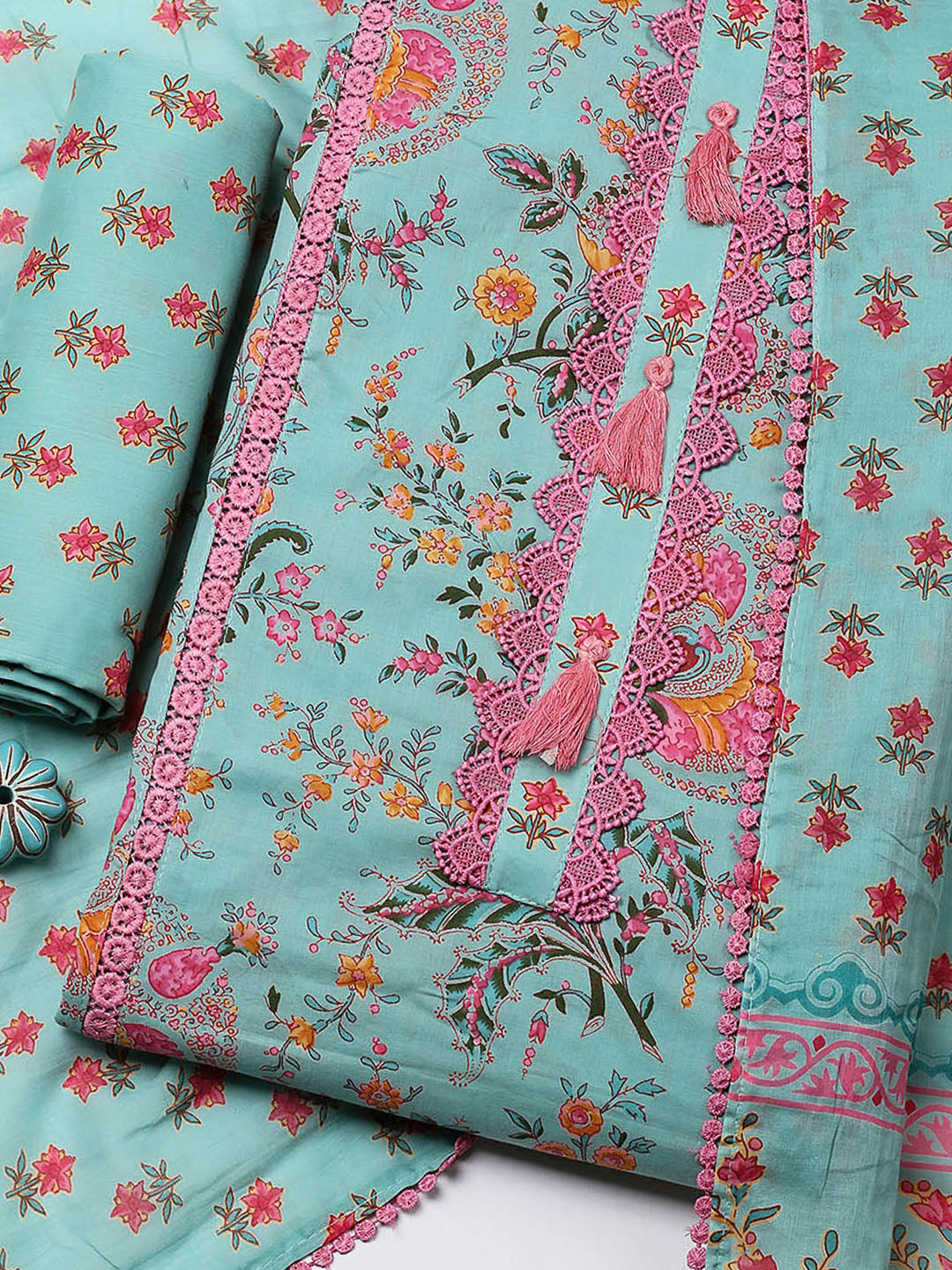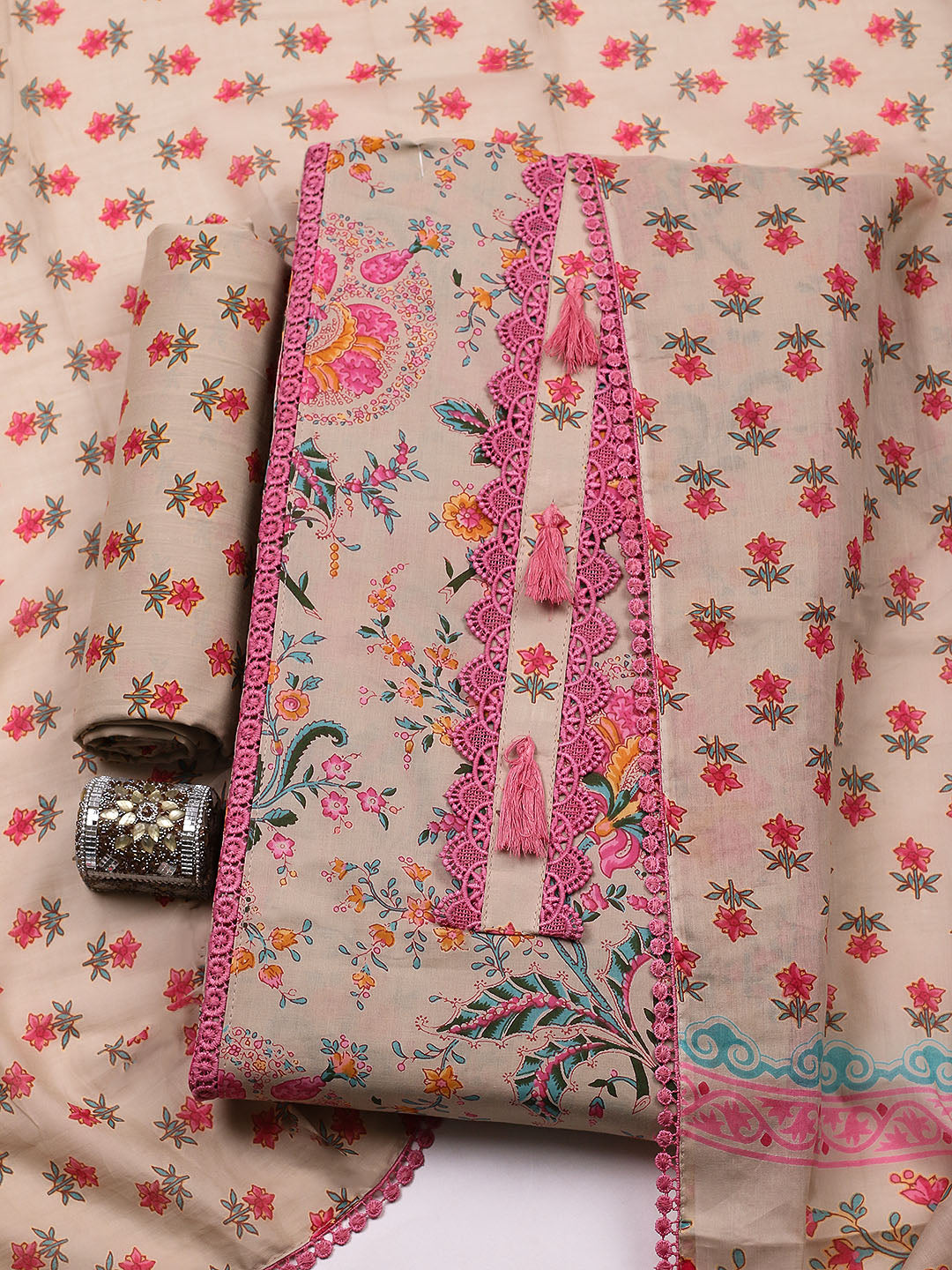 Embroidered Cotton Blend Unstitched Suit With Pant & Dupatta