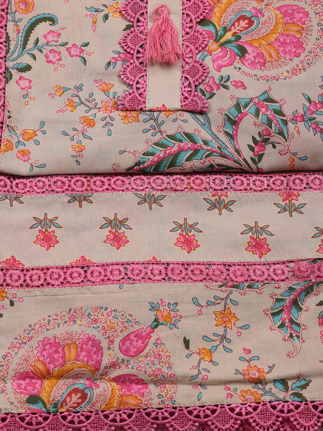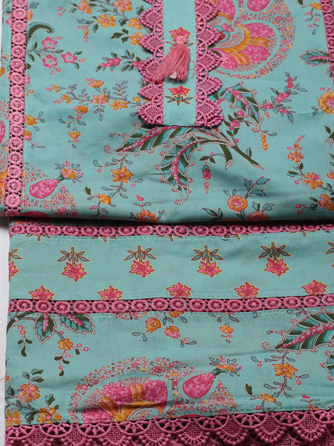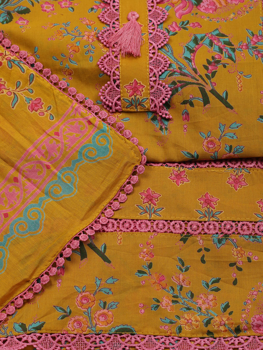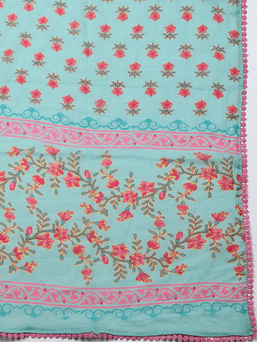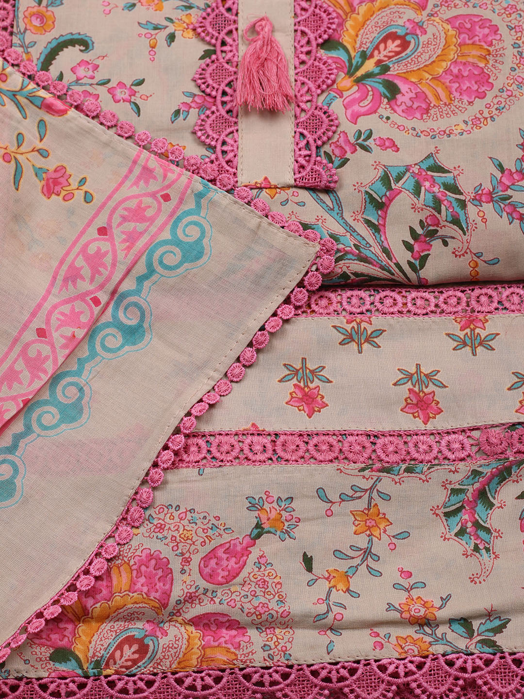 Embroidered Cotton Blend Unstitched Suit With Pant & Dupatta