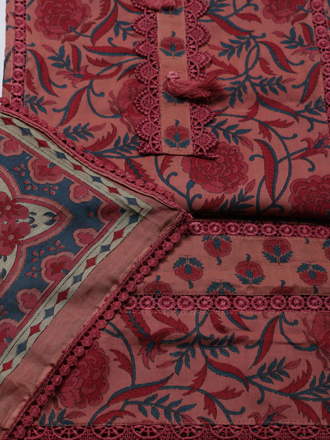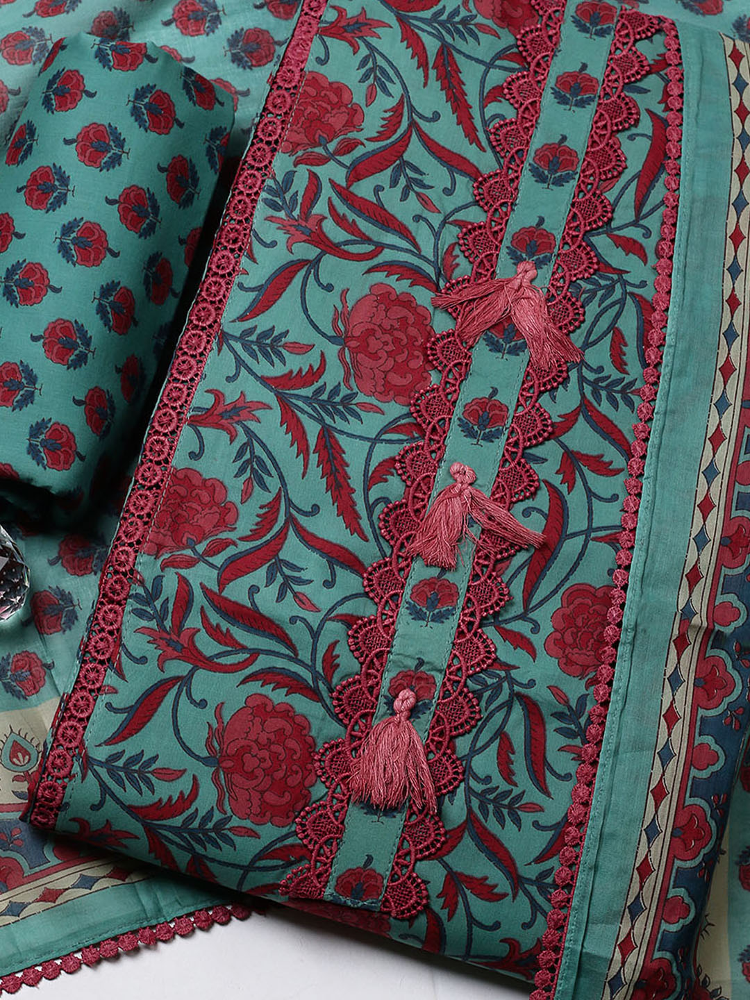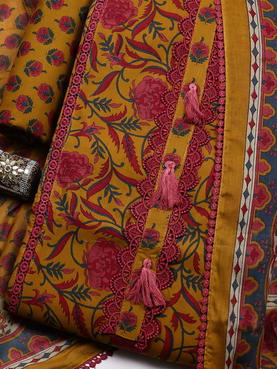 Embroidered Cotton Blend Unstitched Suit With Pant & Dupatta