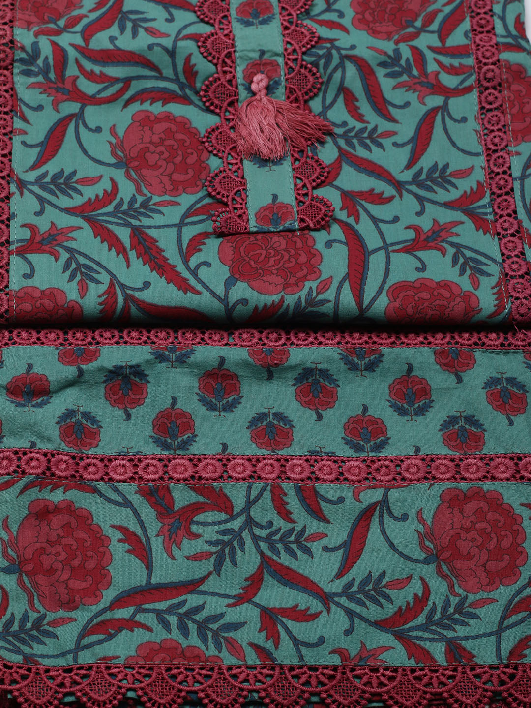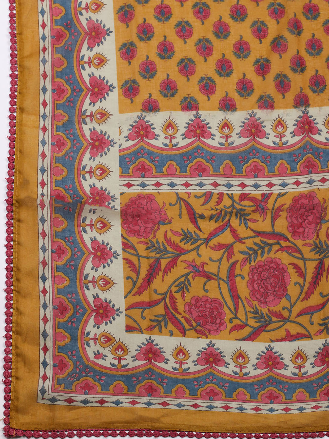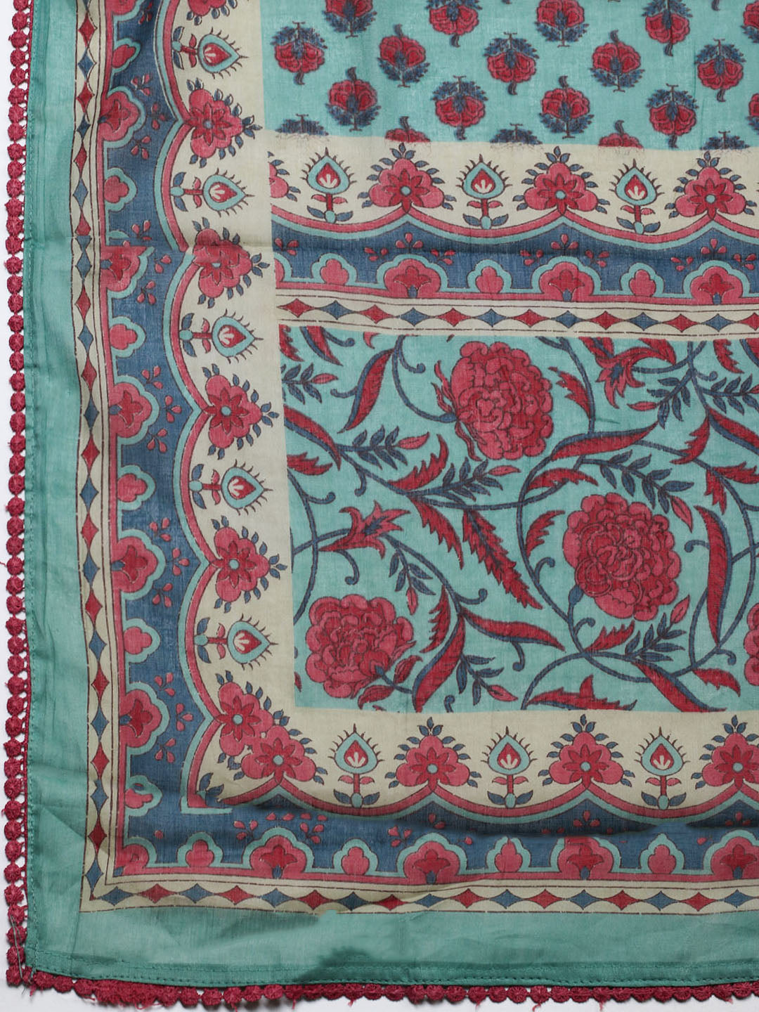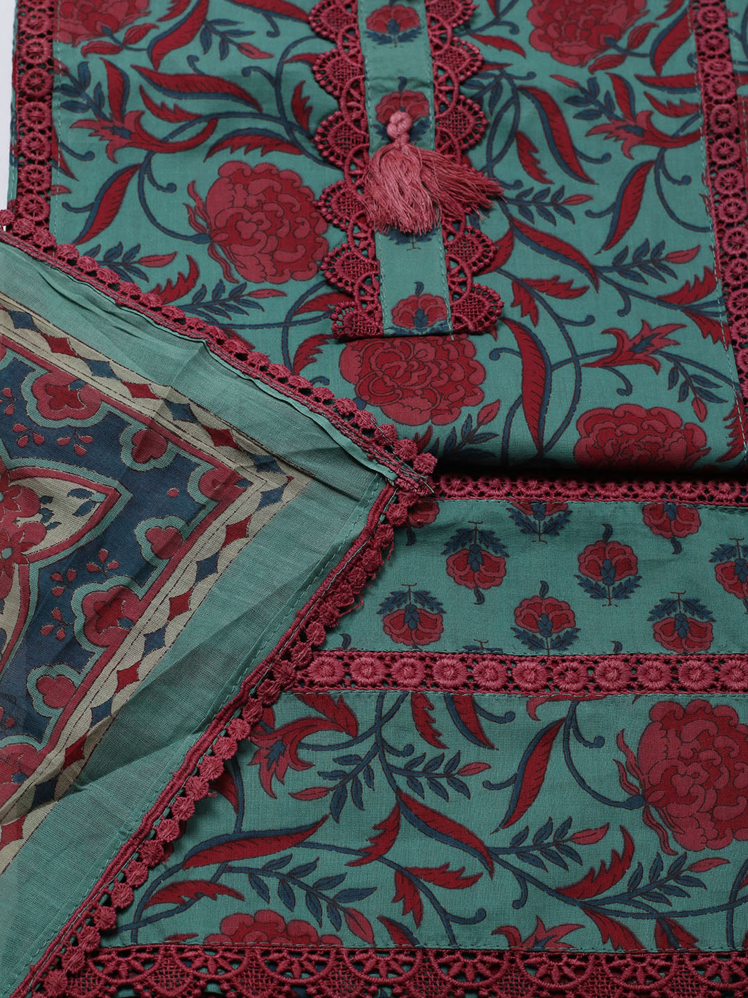 Embroidered Cotton Blend Unstitched Suit With Pant & Dupatta