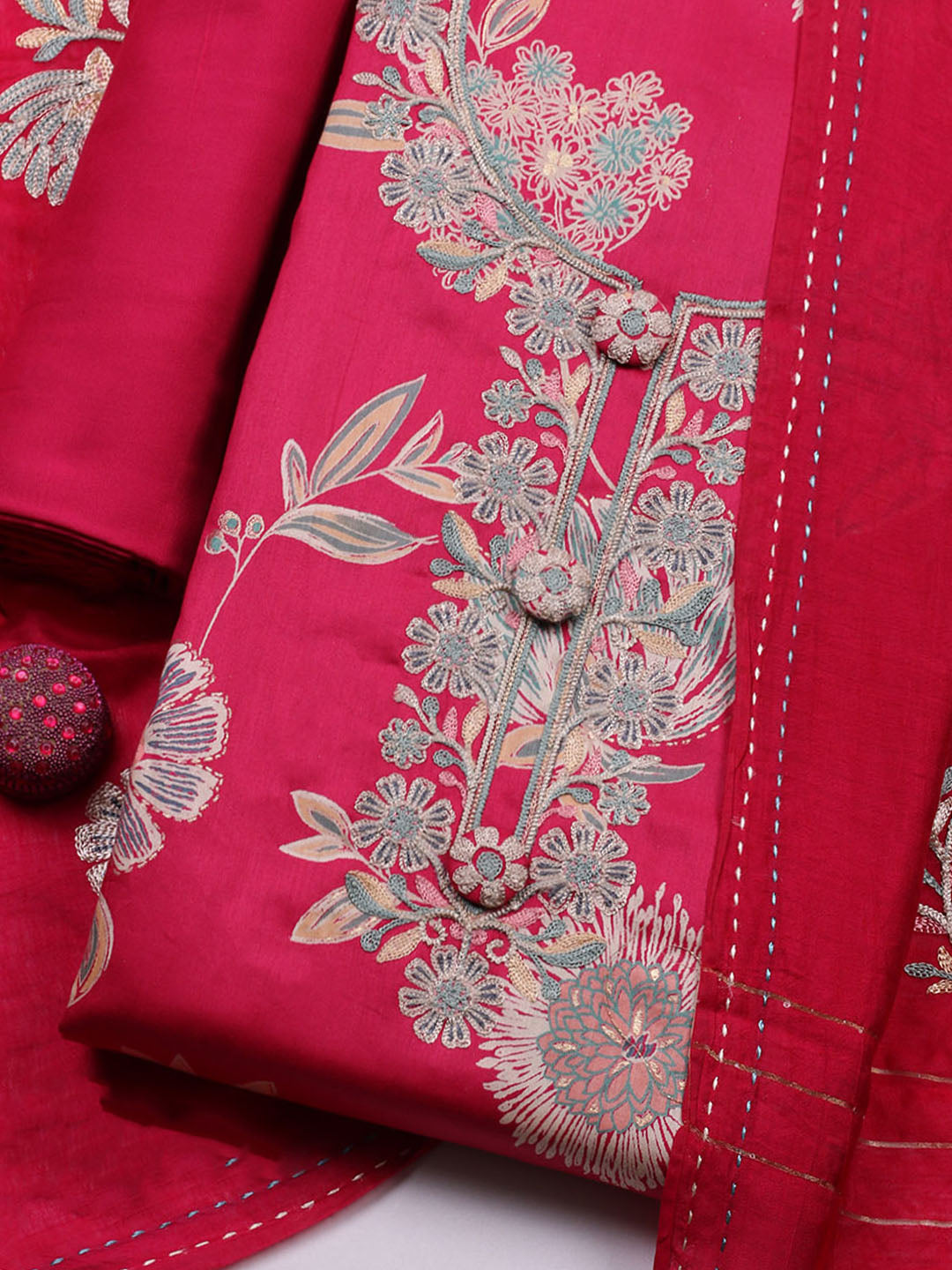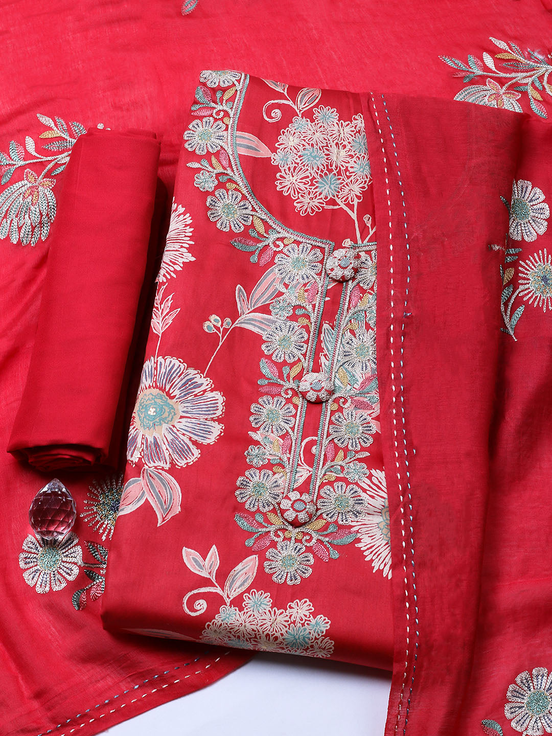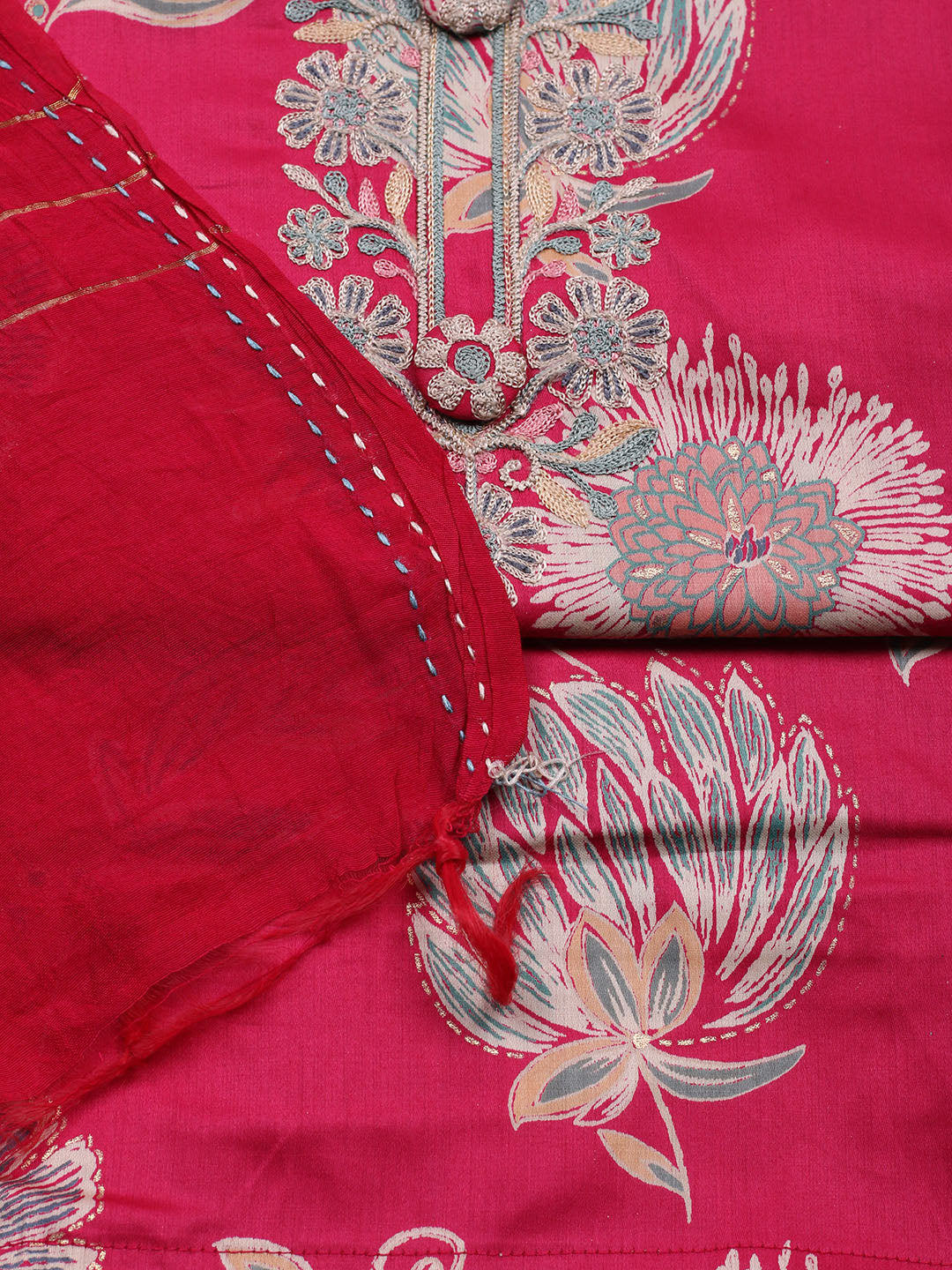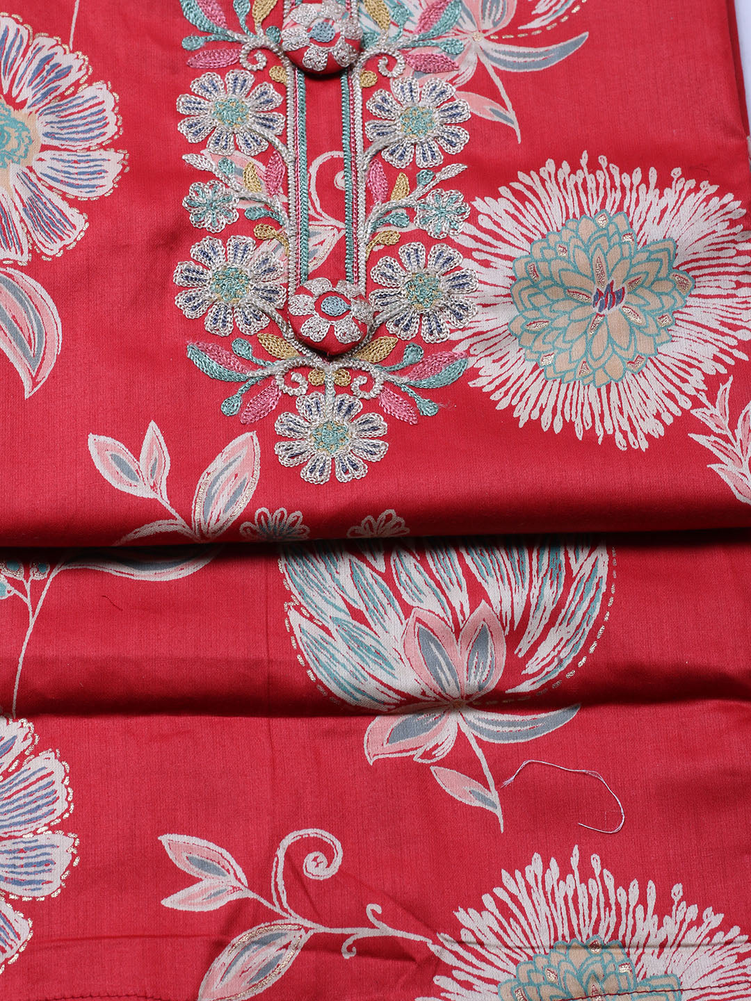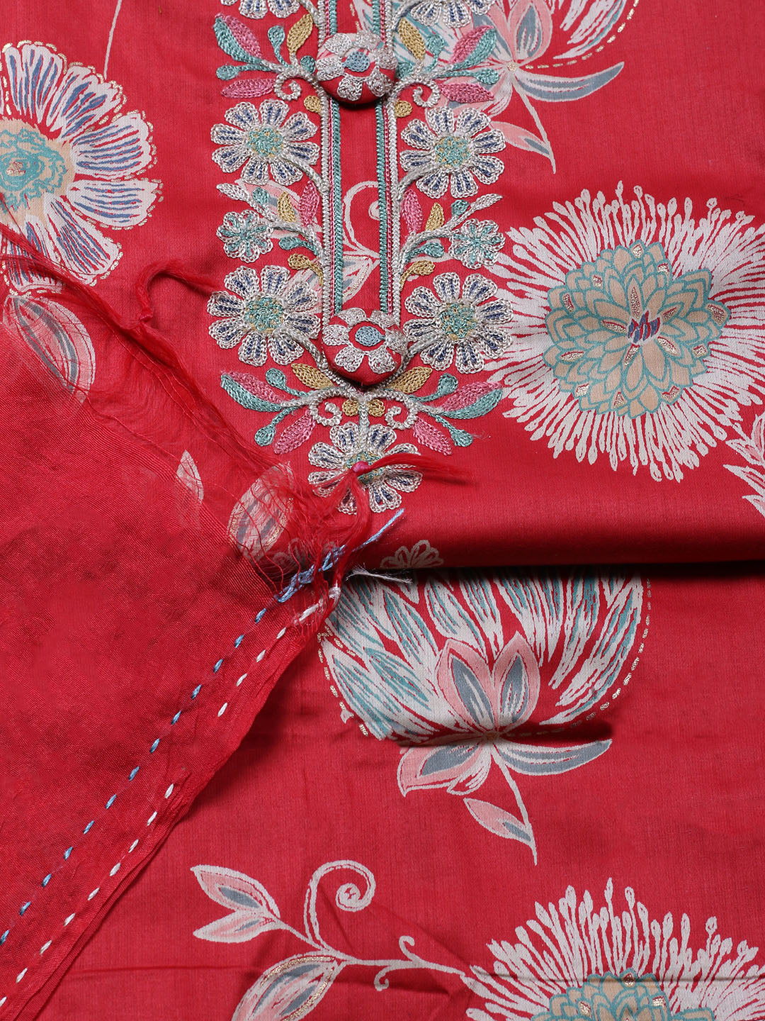 Embroidered Cotton Blend Unstitched Suit With Pant & Dupatta