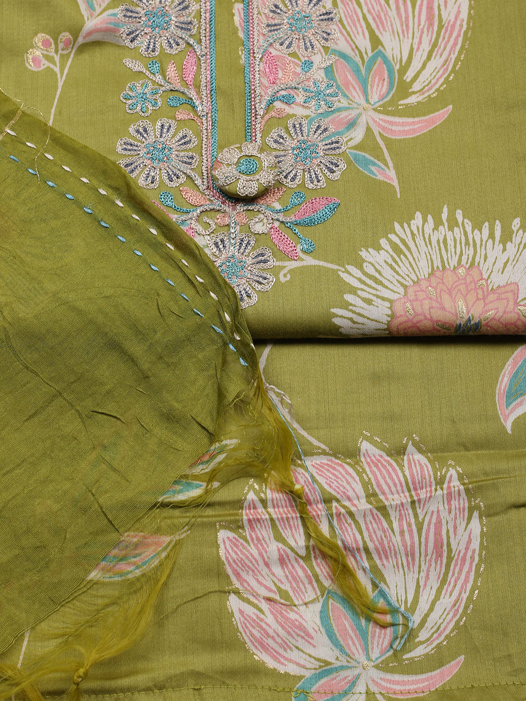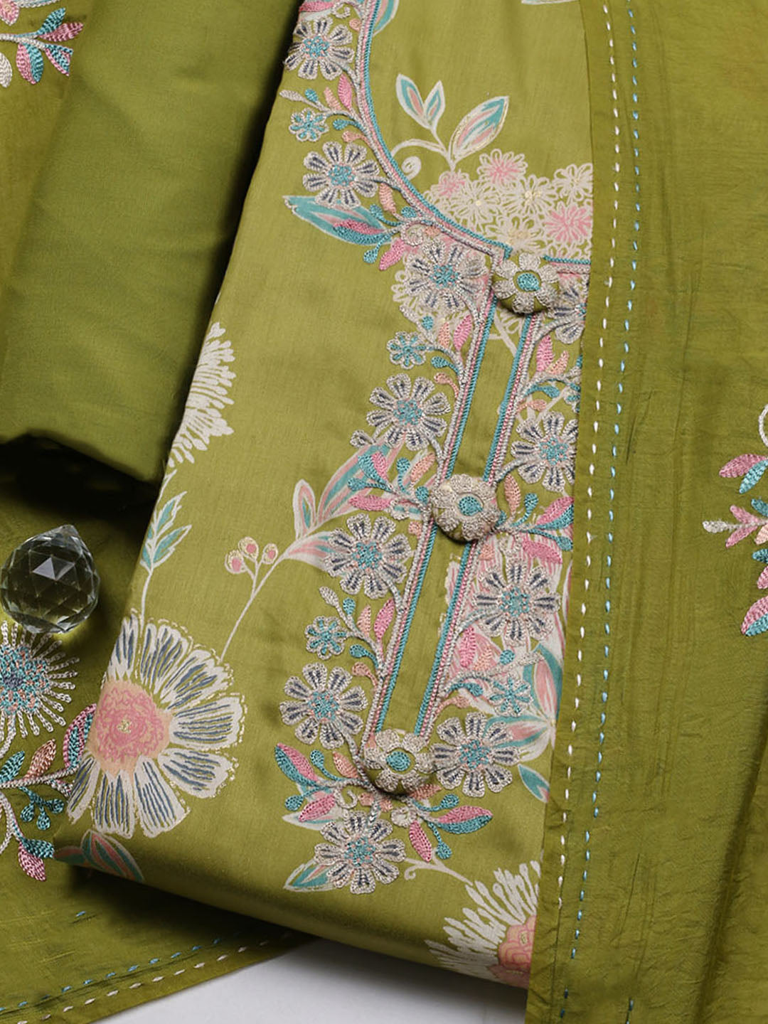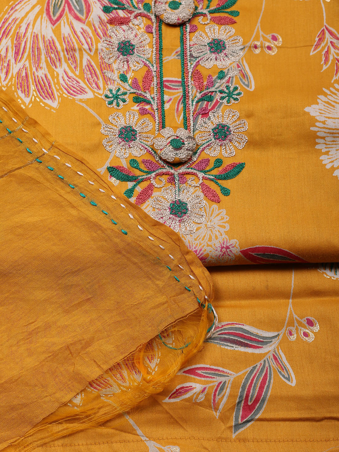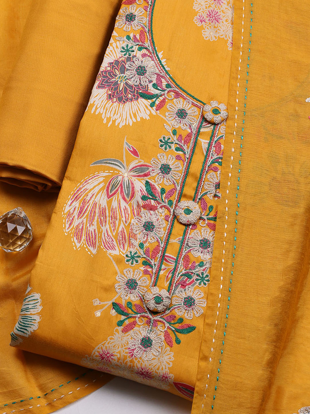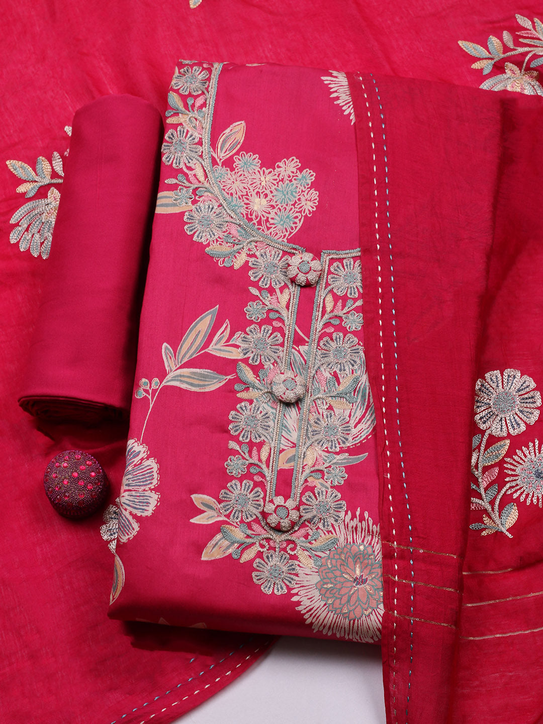 Embroidered Cotton Blend Unstitched Suit With Pant & Dupatta