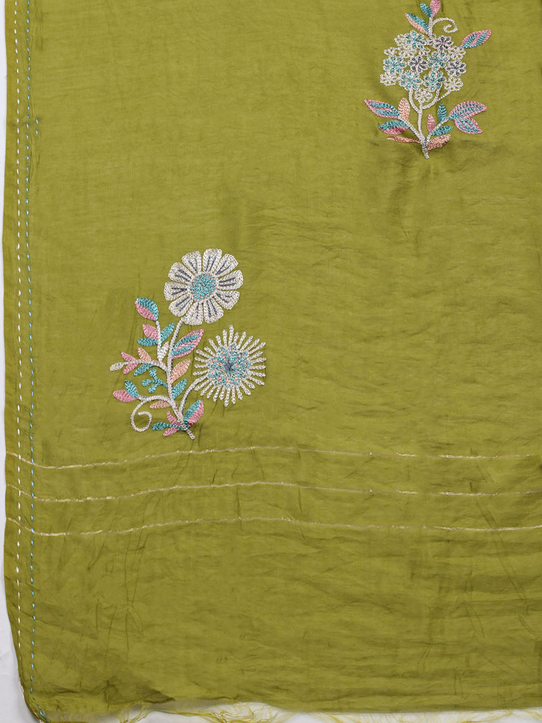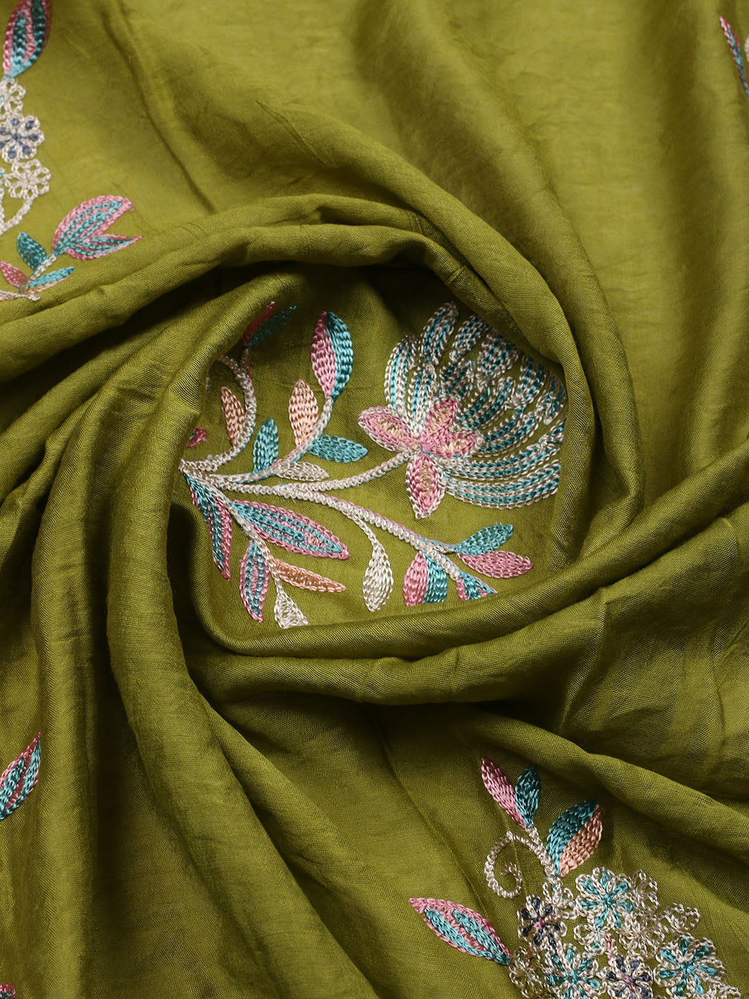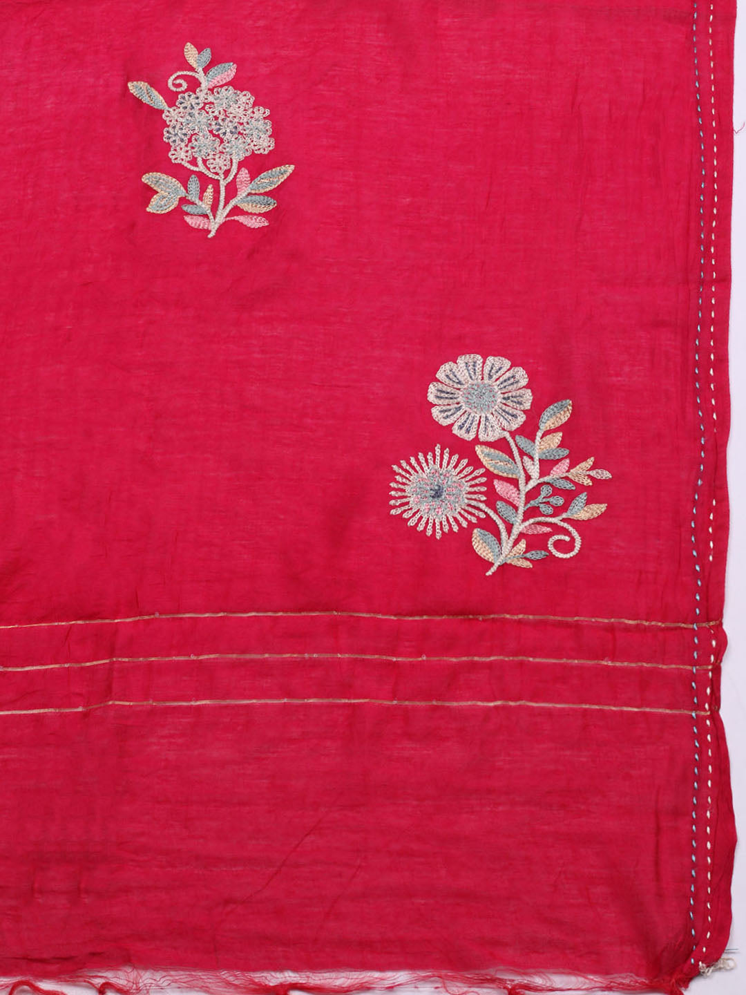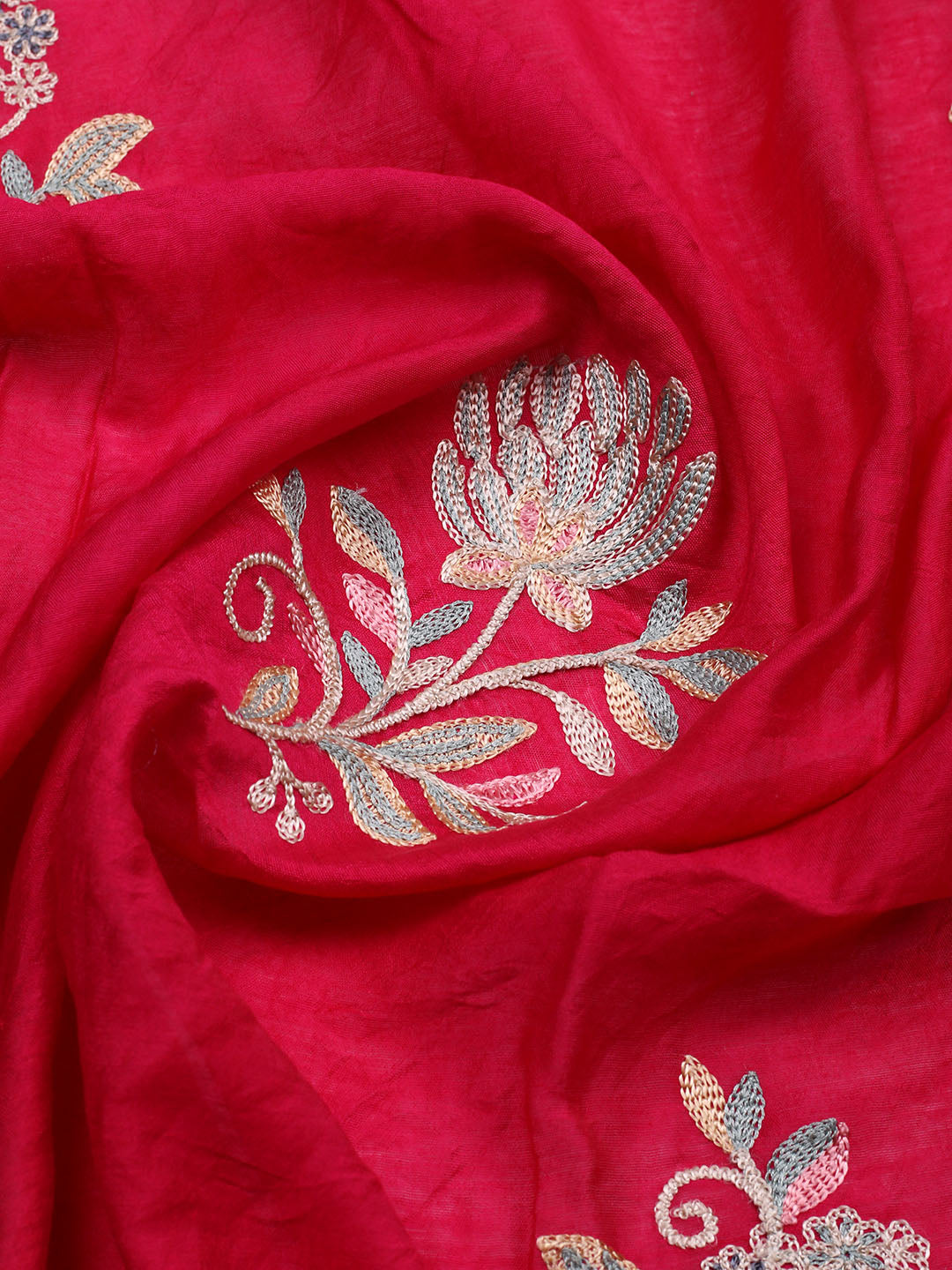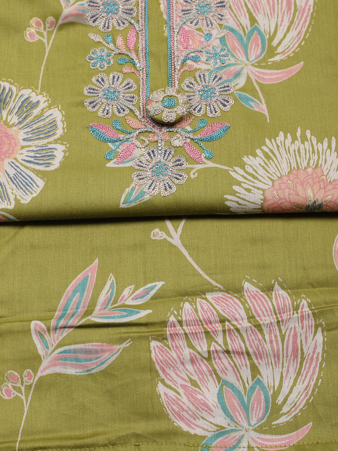 Embroidered Cotton Blend Unstitched Suit With Pant & Dupatta