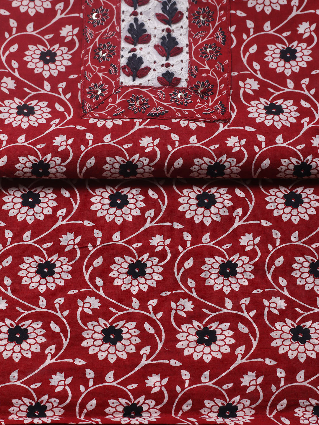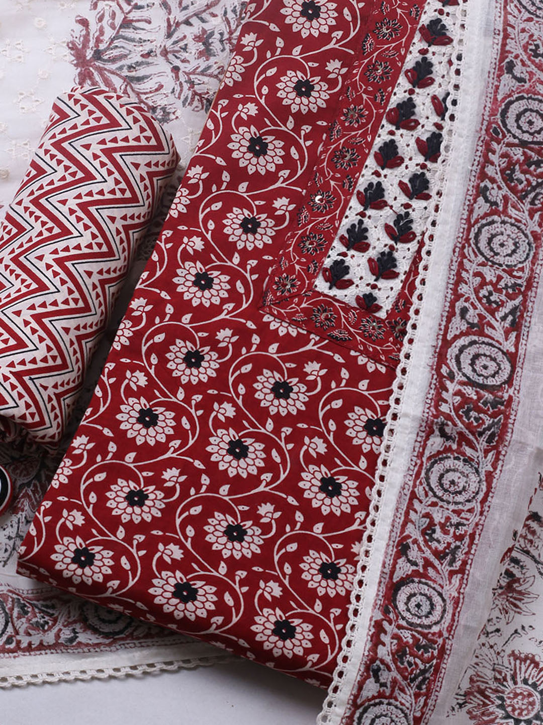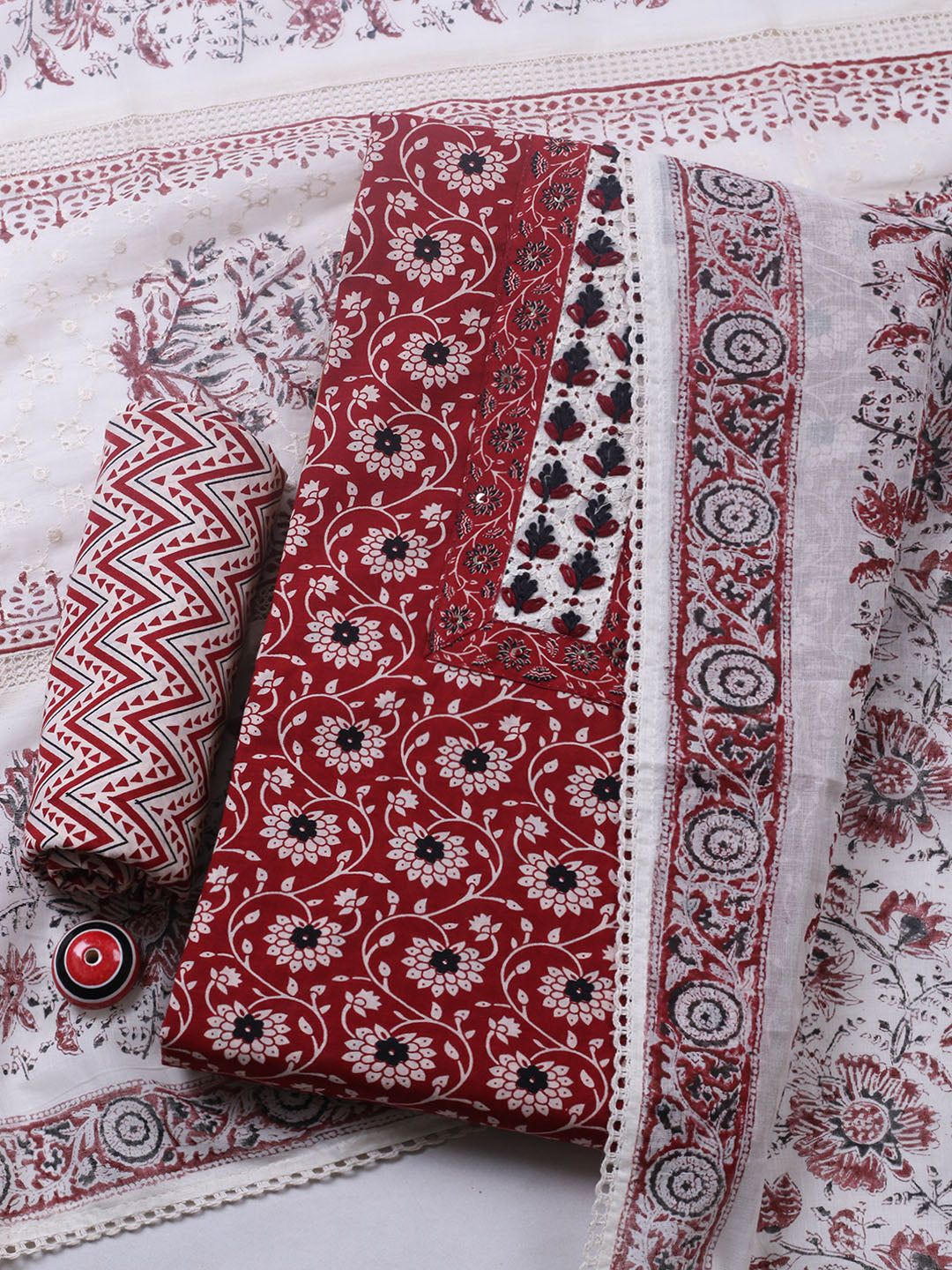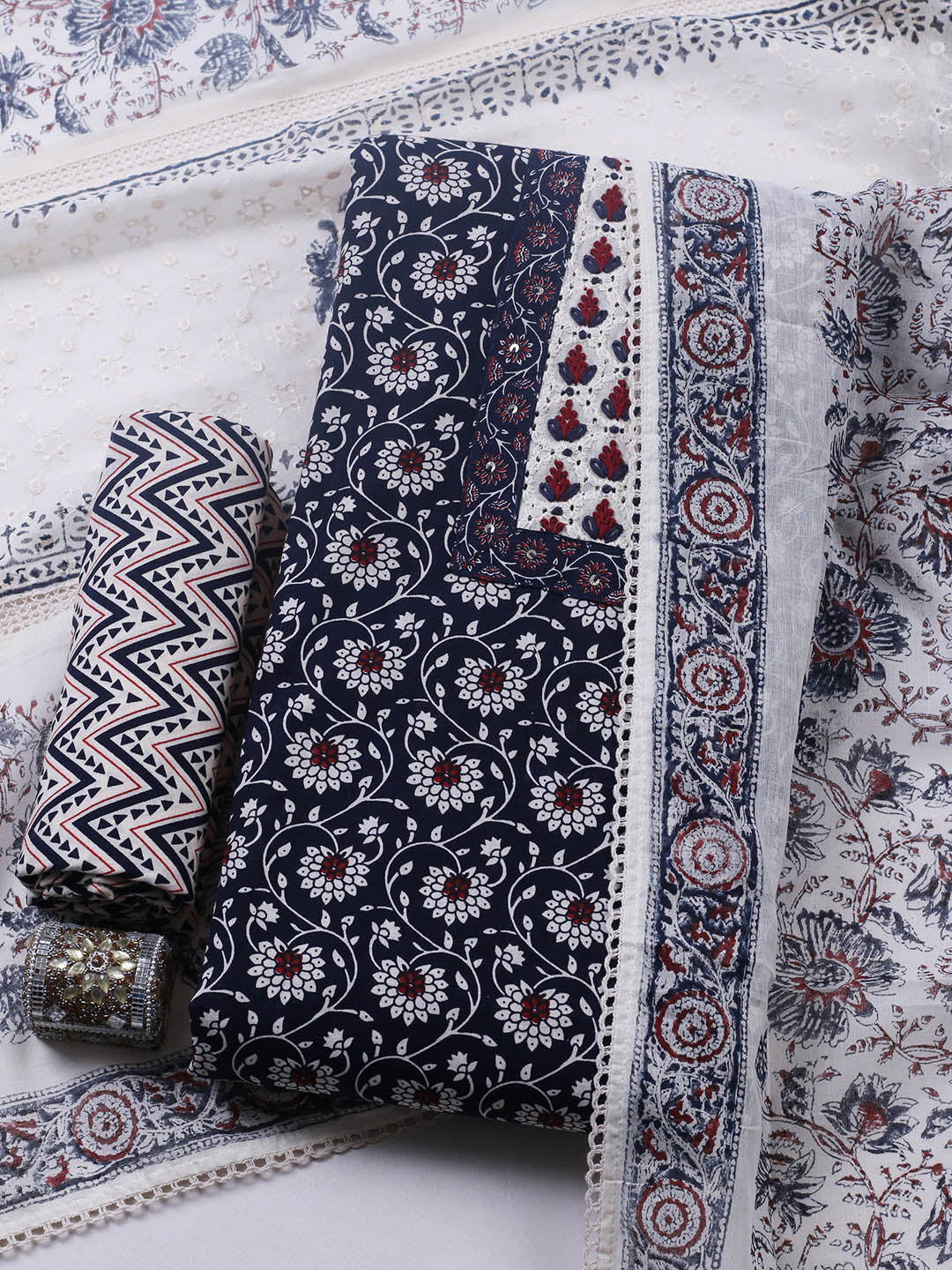 Embroidered Cotton Blend Ustitched Suit With Pant & Dupatta