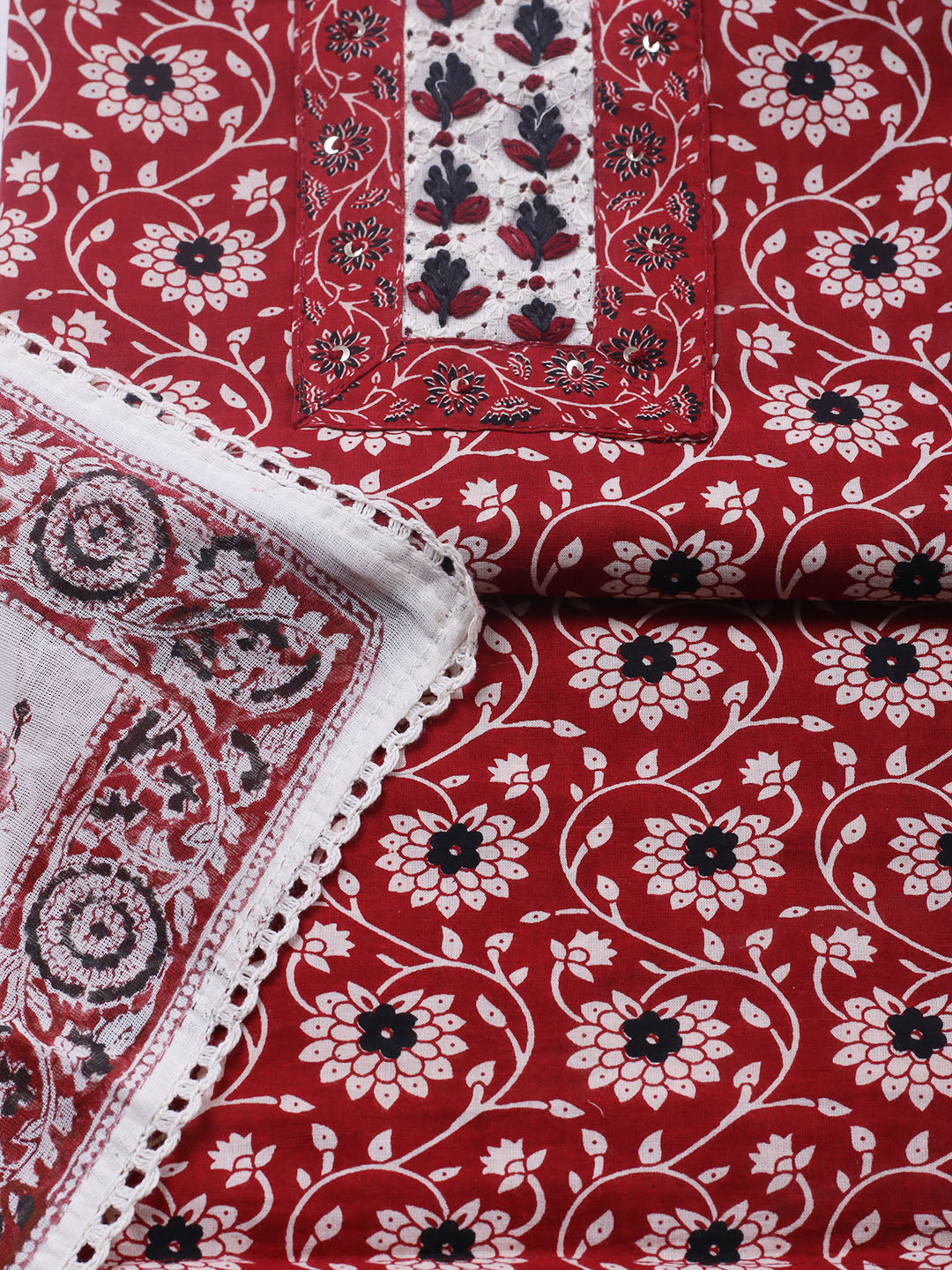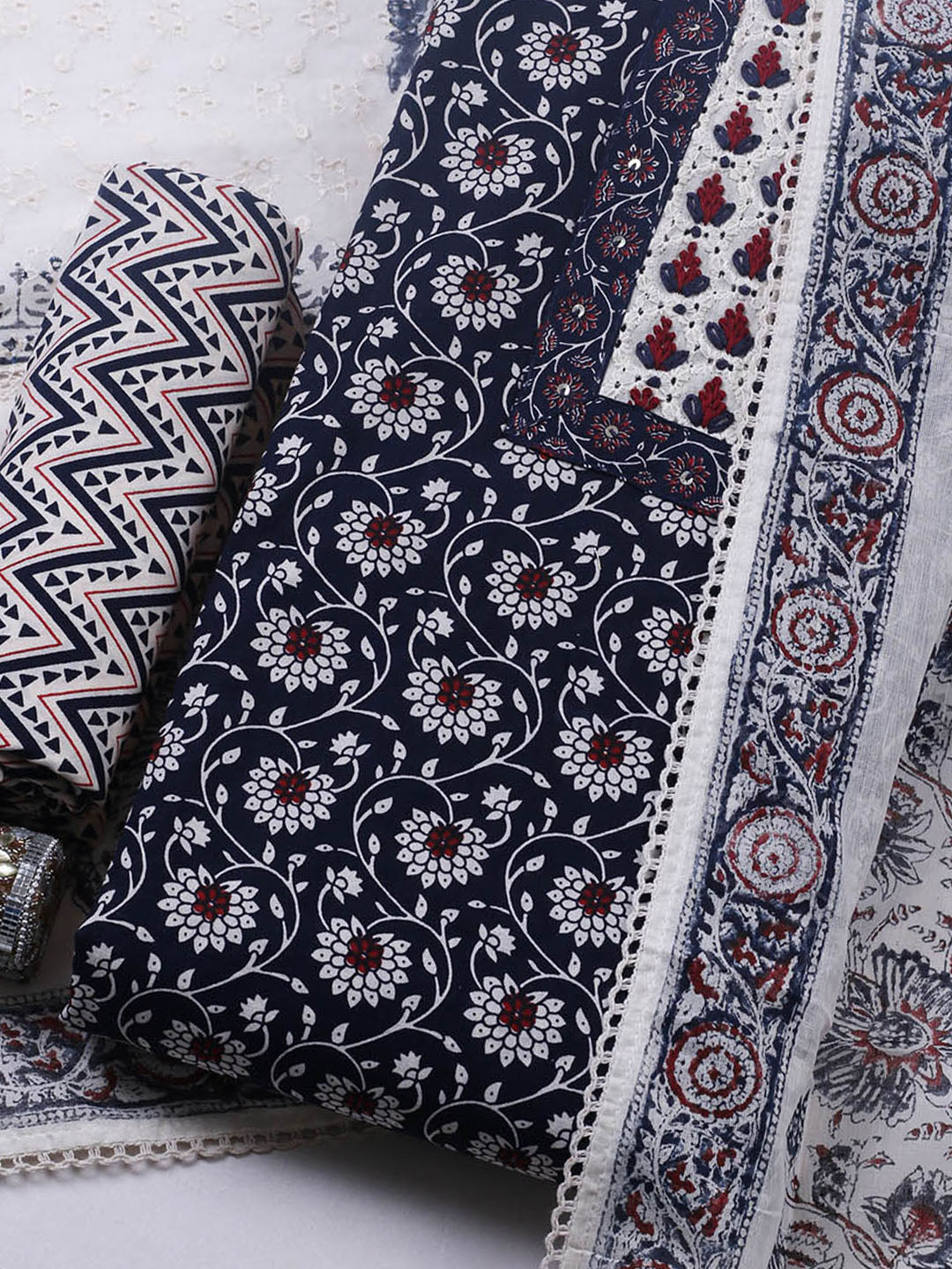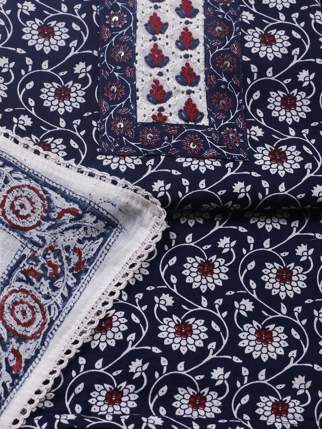 Embroidered Cotton Blend Ustitched Suit With Pant & Dupatta