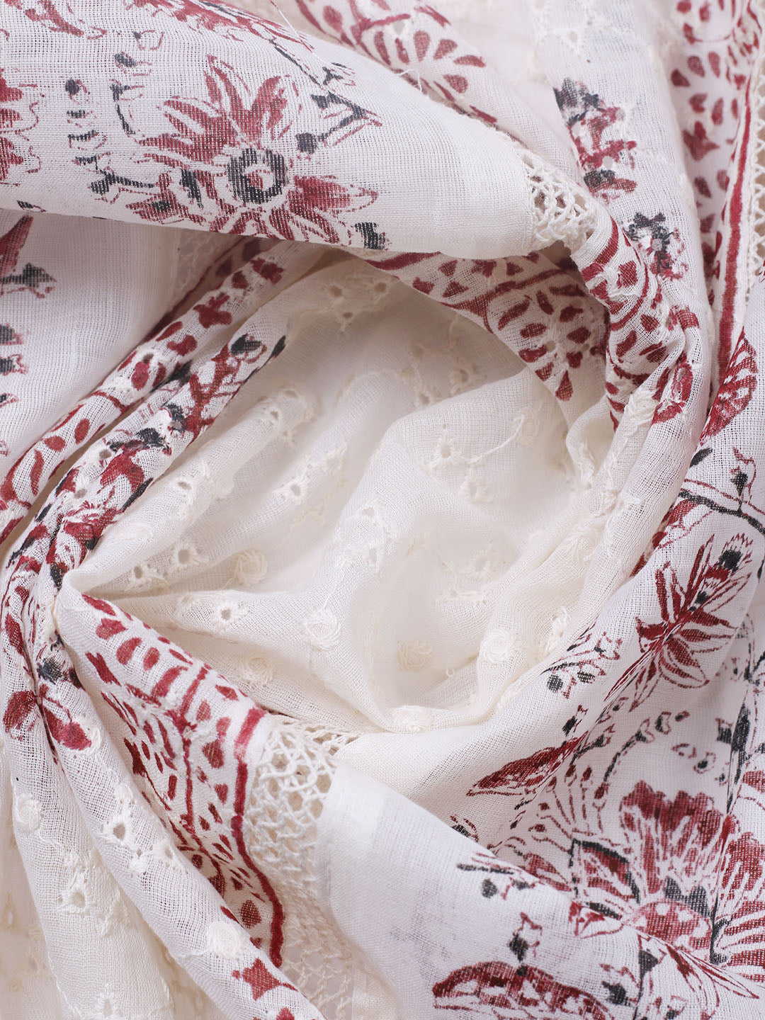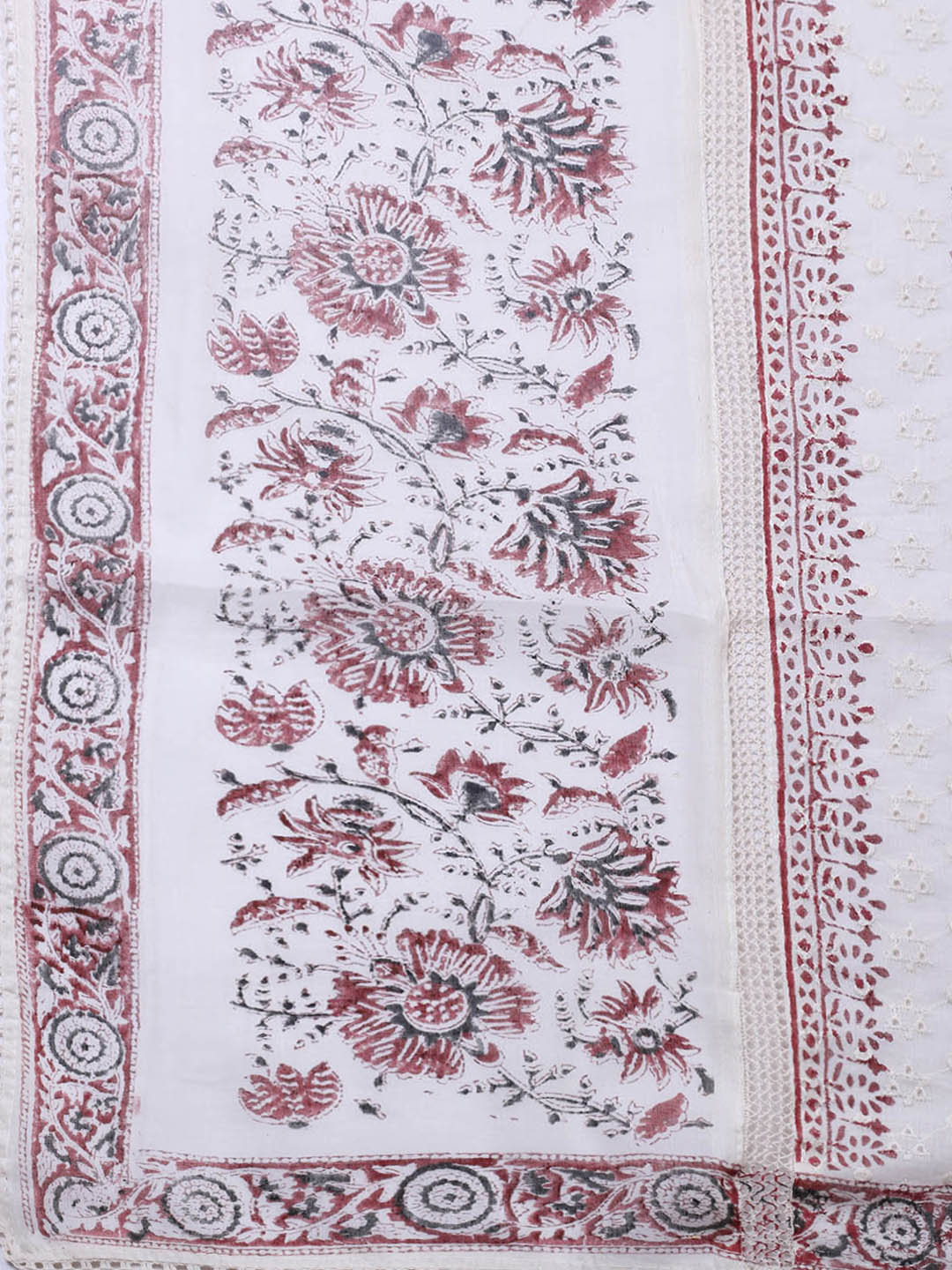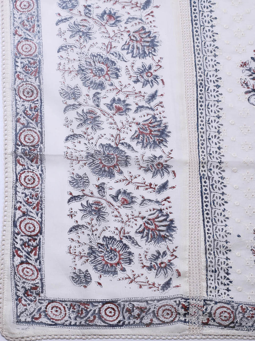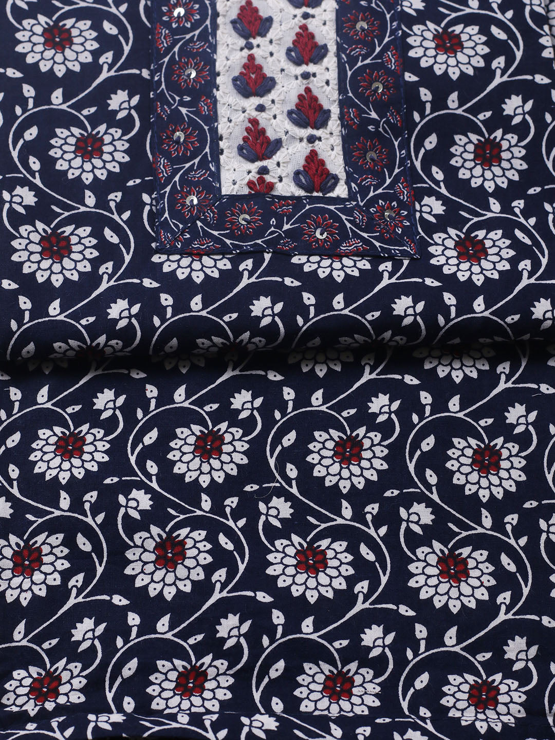 Embroidered Cotton Blend Ustitched Suit With Pant & Dupatta