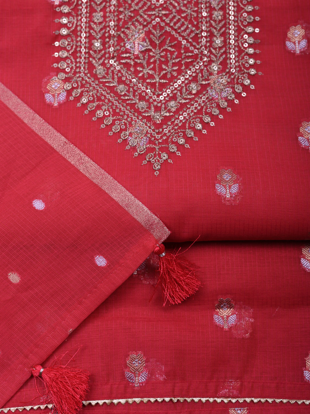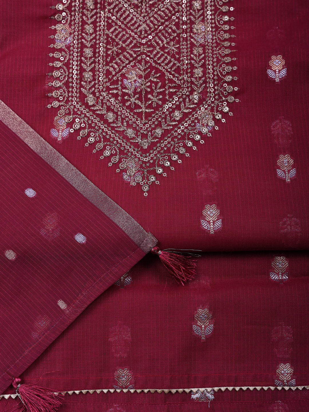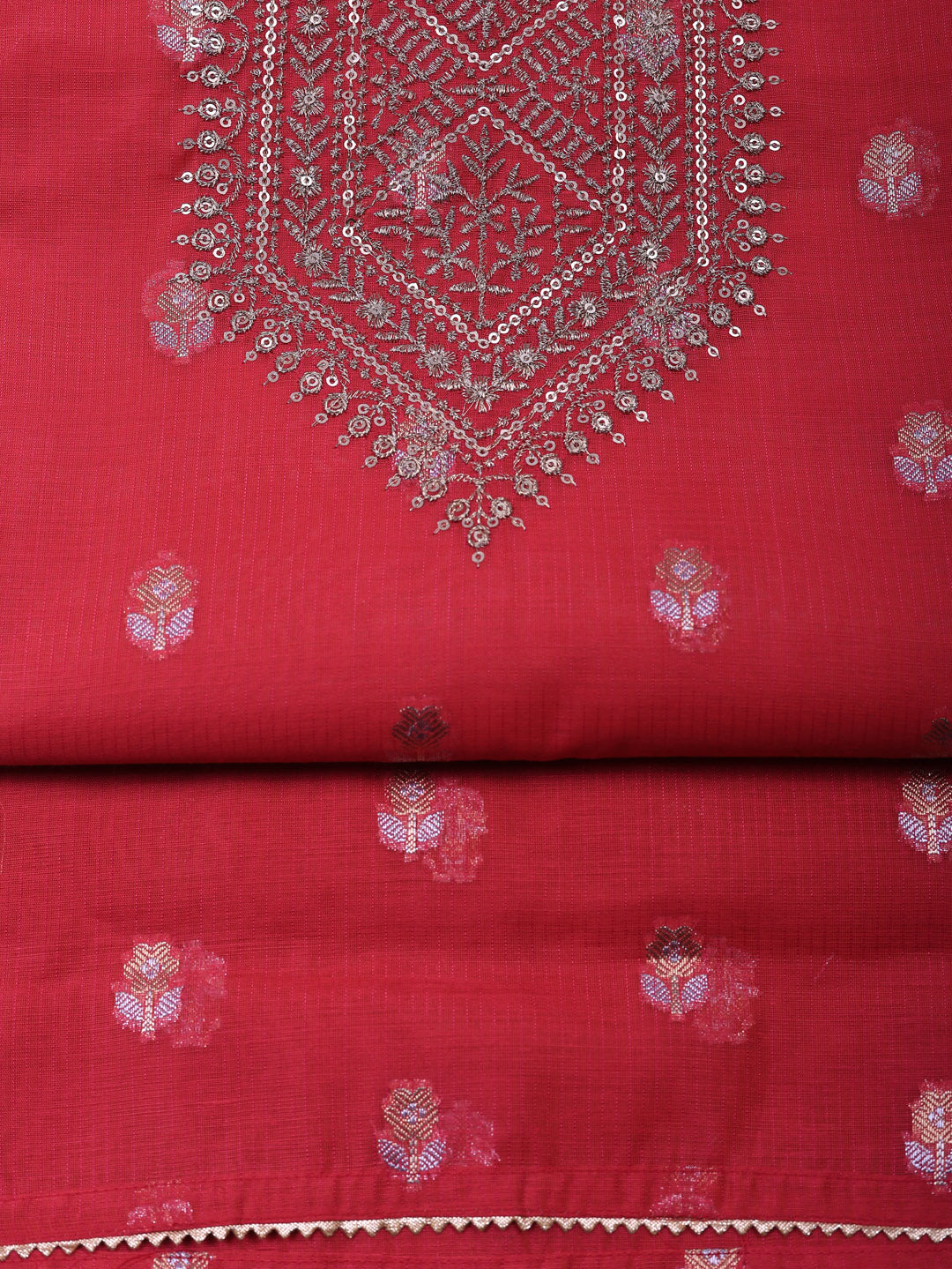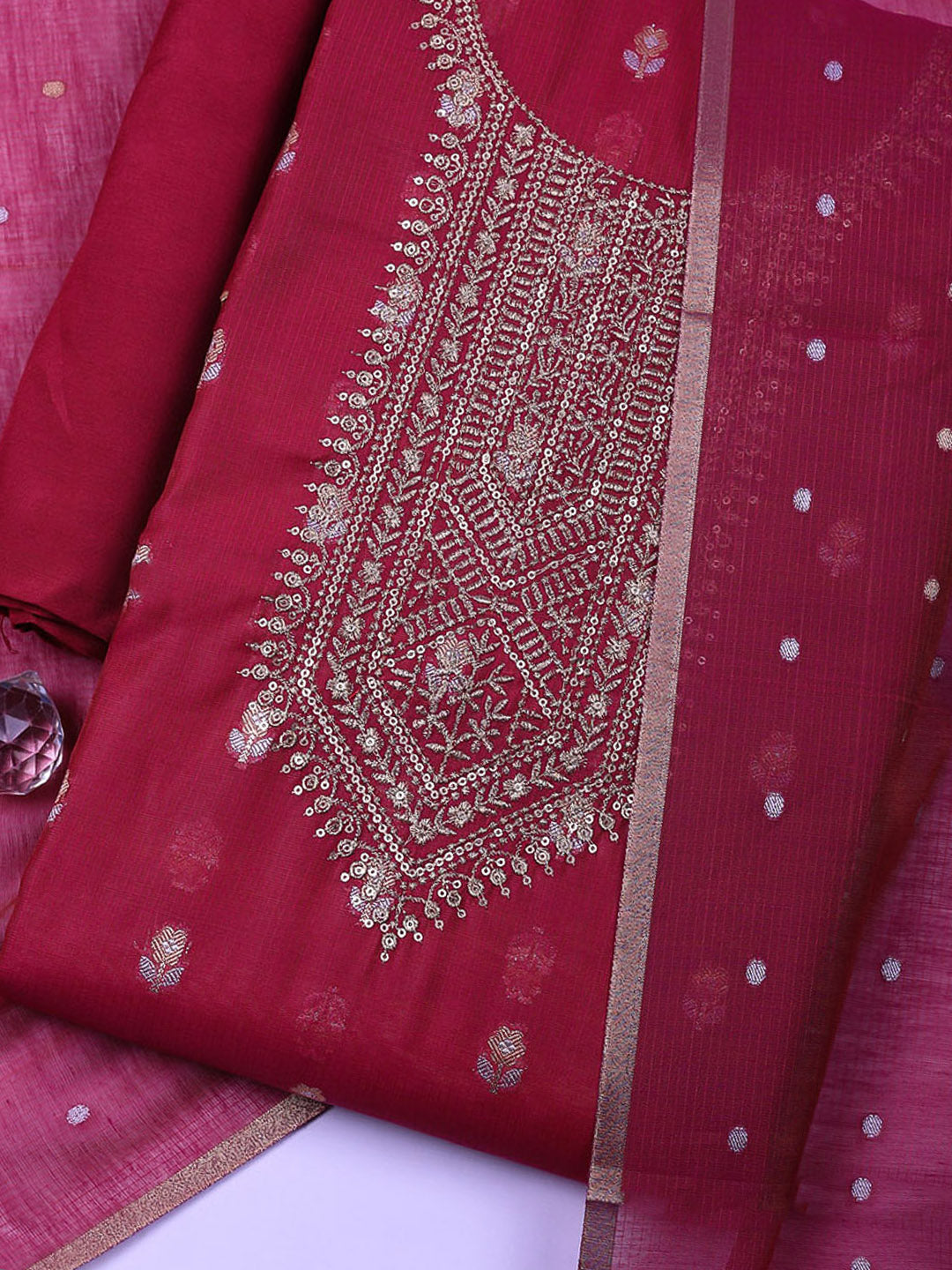 Embroidered Chanderi Unstitched Suit With Pant & Dupatta