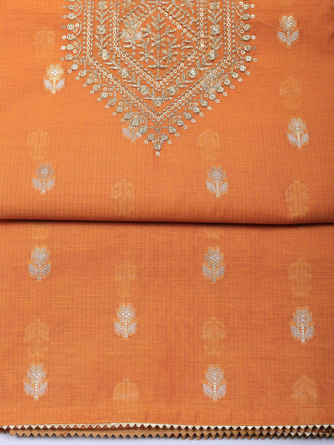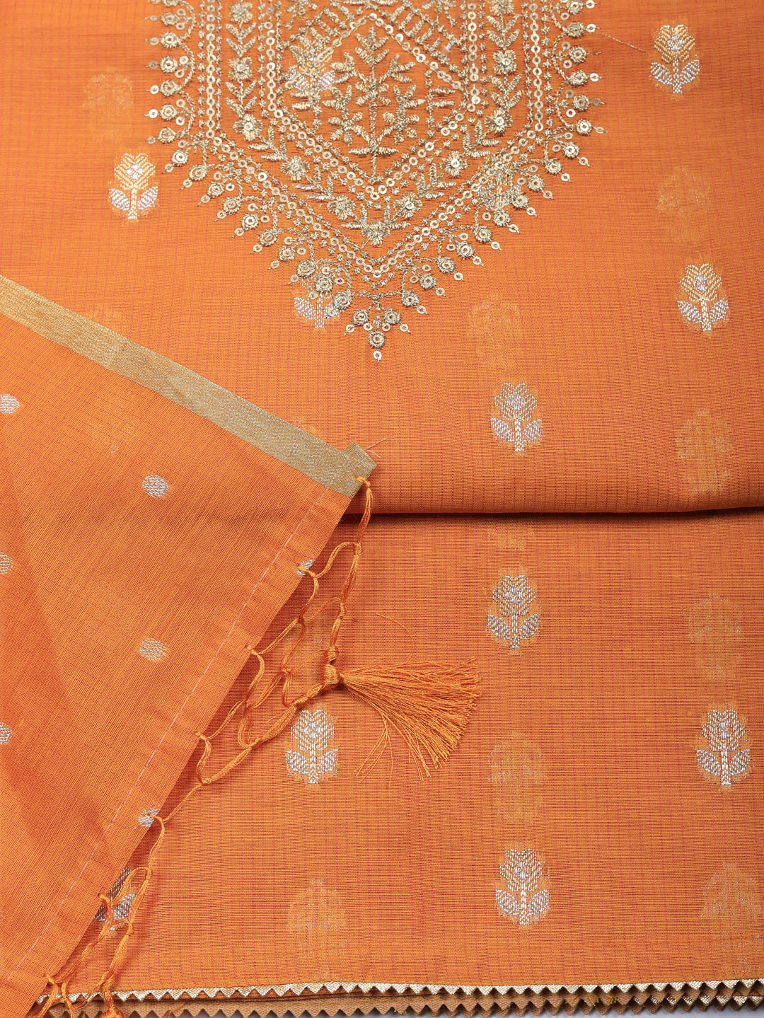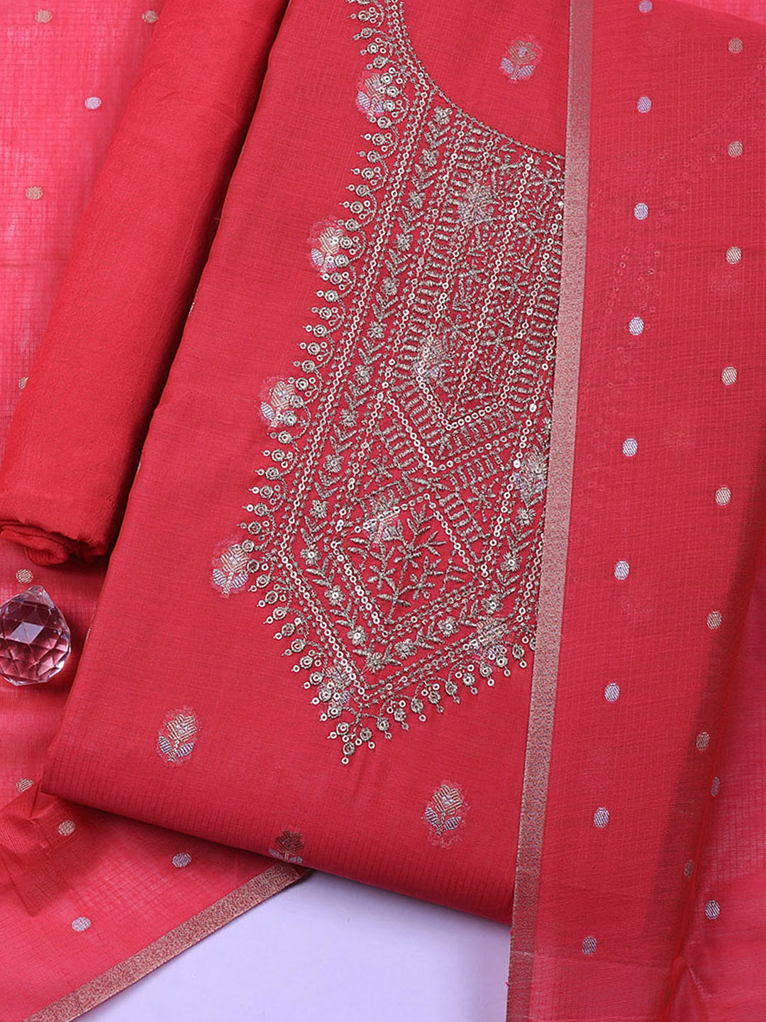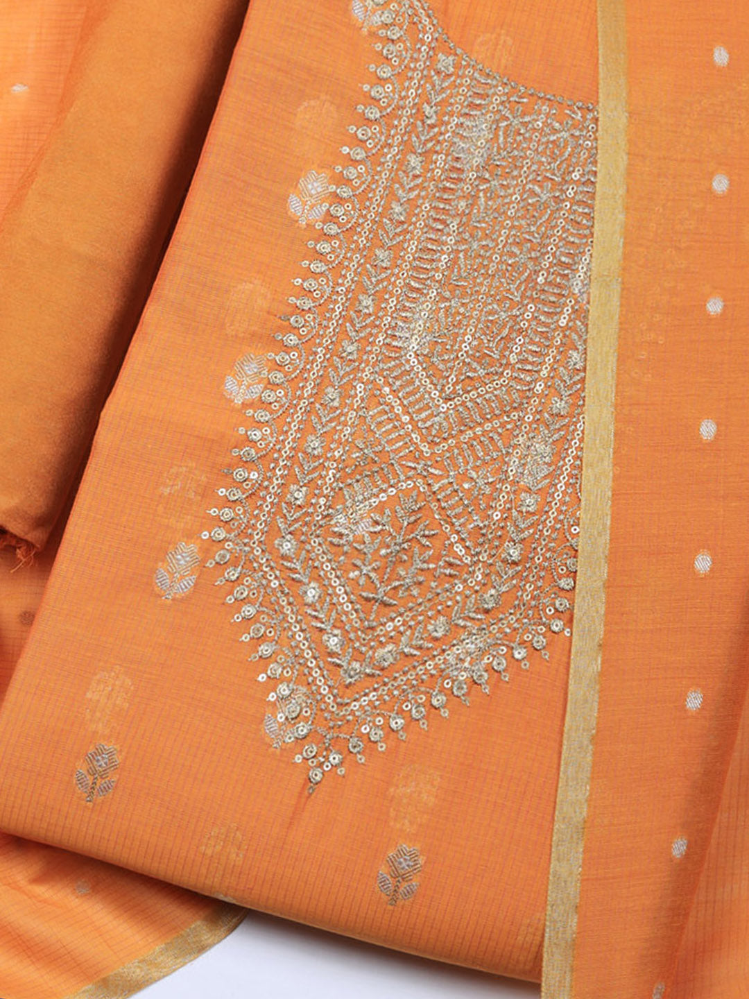 Embroidered Chanderi Unstitched Suit With Pant & Dupatta