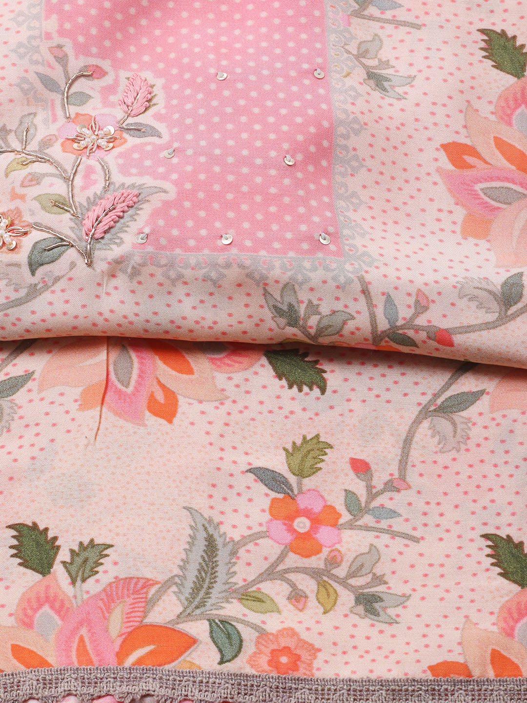 Printed Muslin Unstitched Suit With Pant & Dupatta