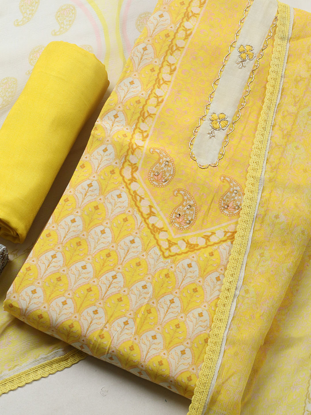 Printed Muslin Unstitched Suit With Pant & Dupatta