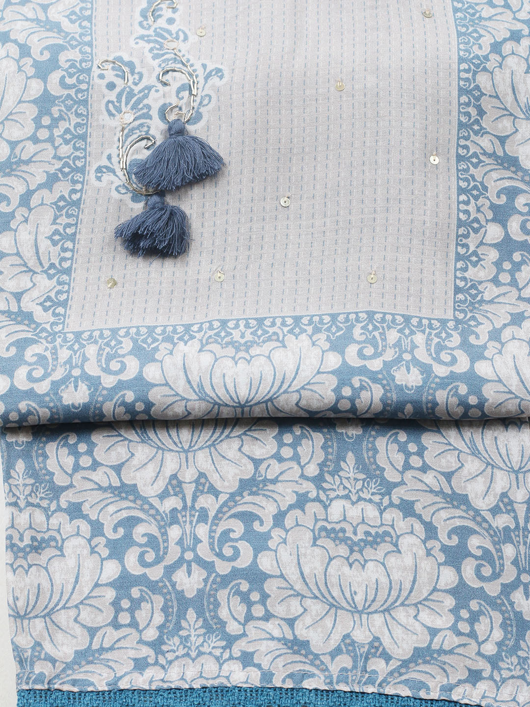 Printed Muslin Unstitched Suit With Pant & Dupatta