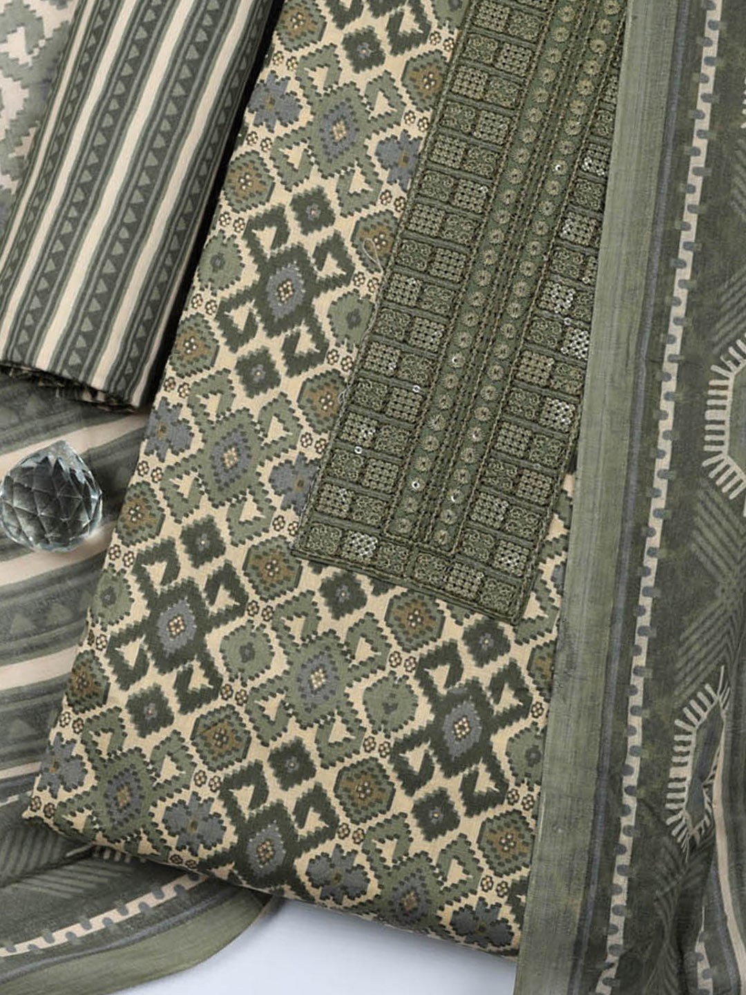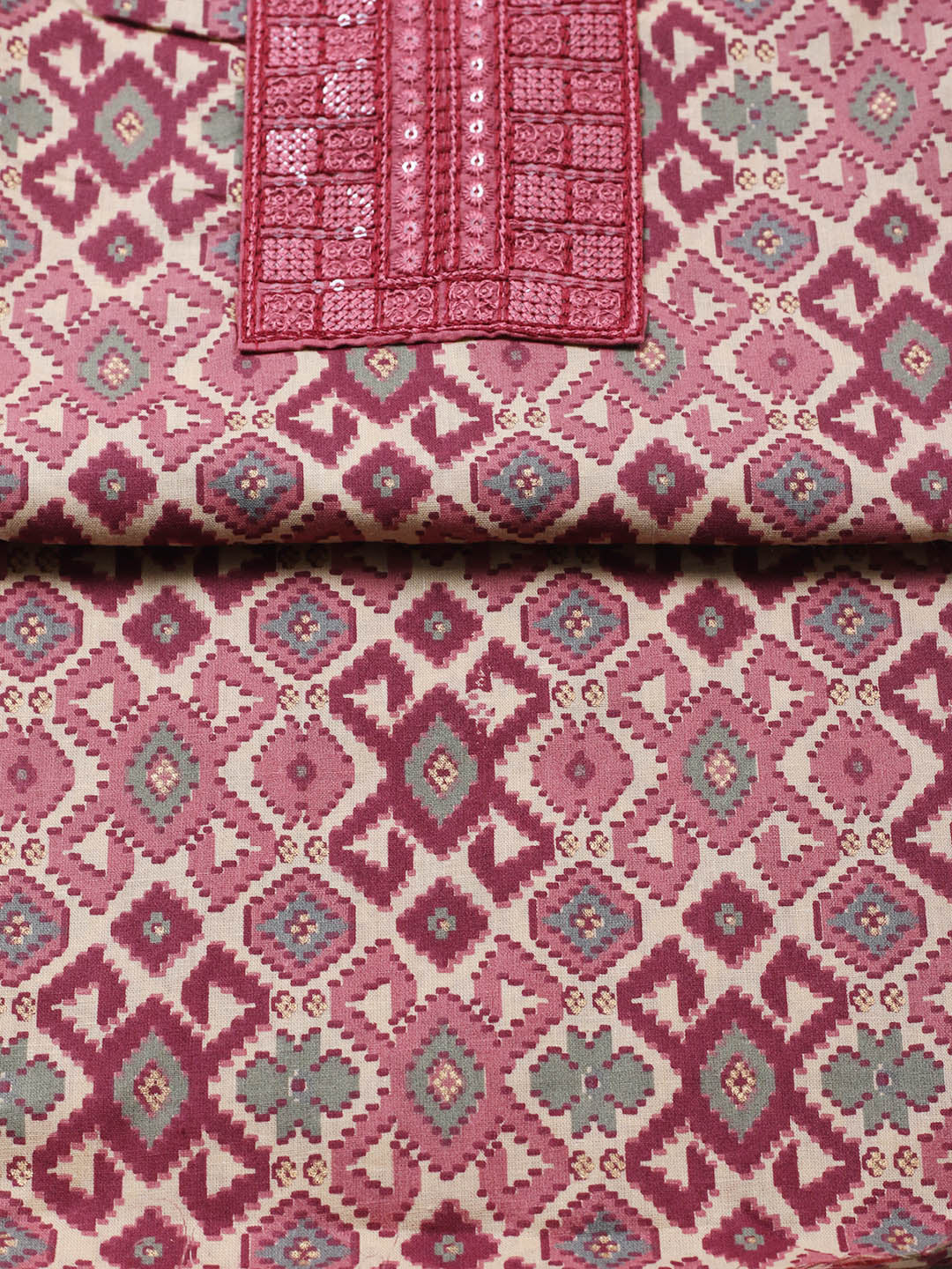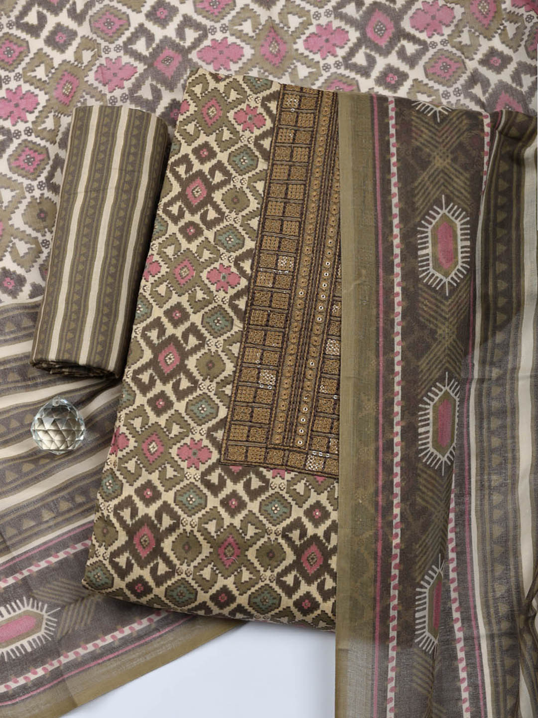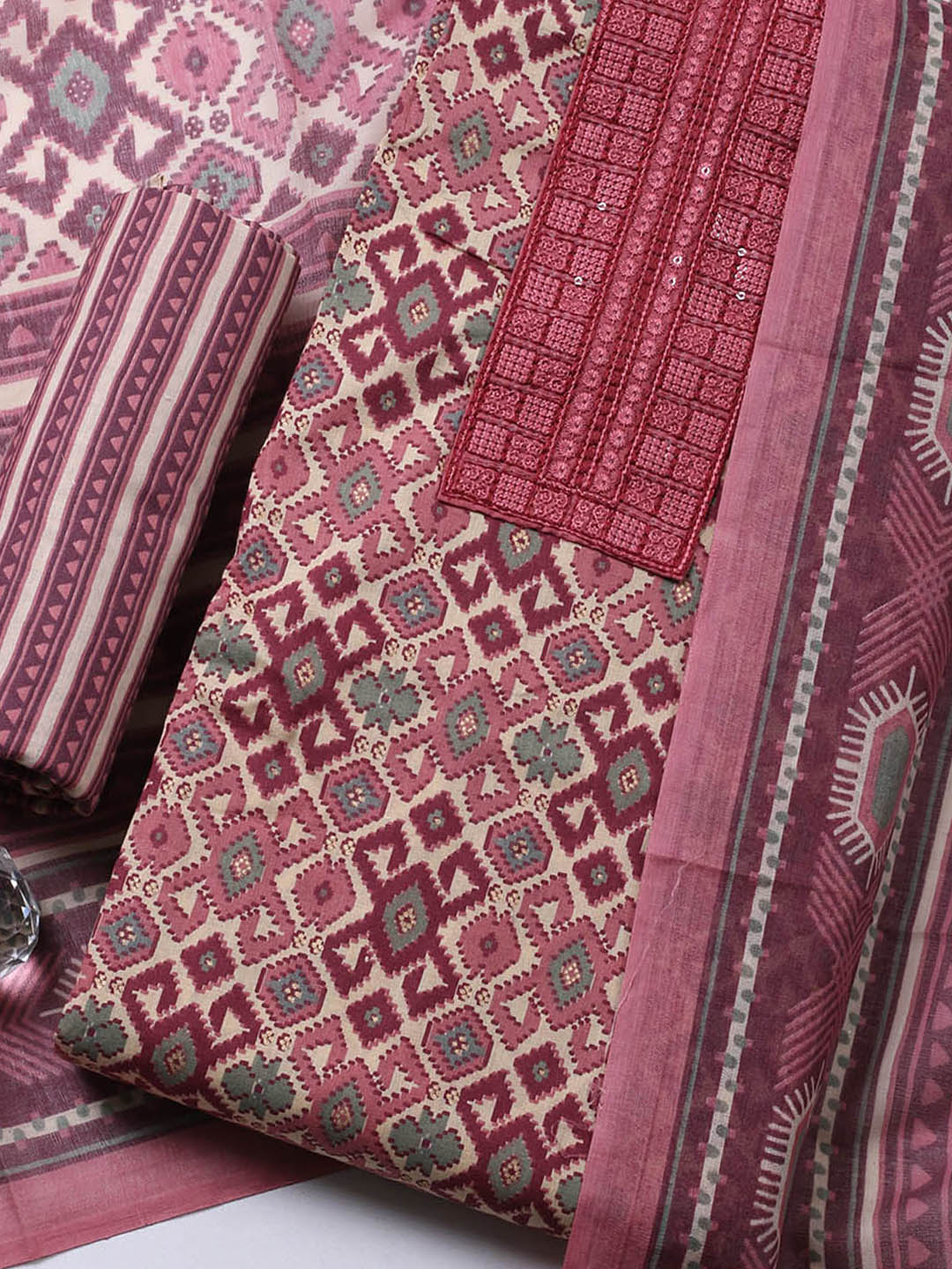 Printed Cotton Blend Unstitched Suit With Pant & Dupatta