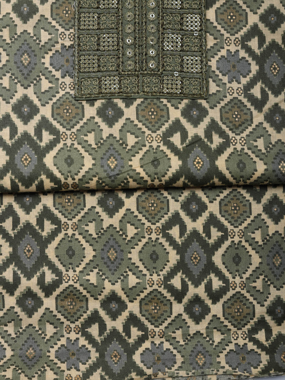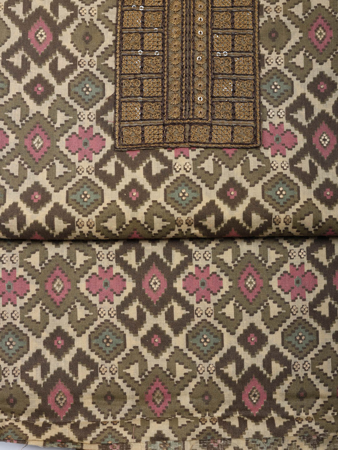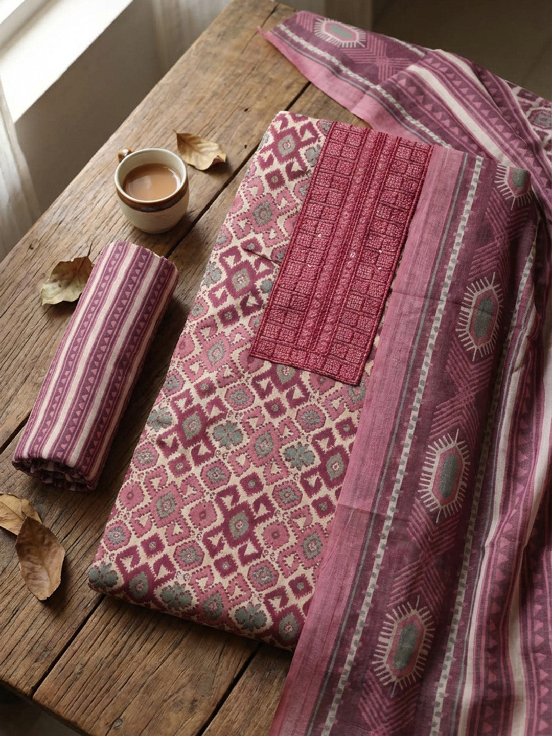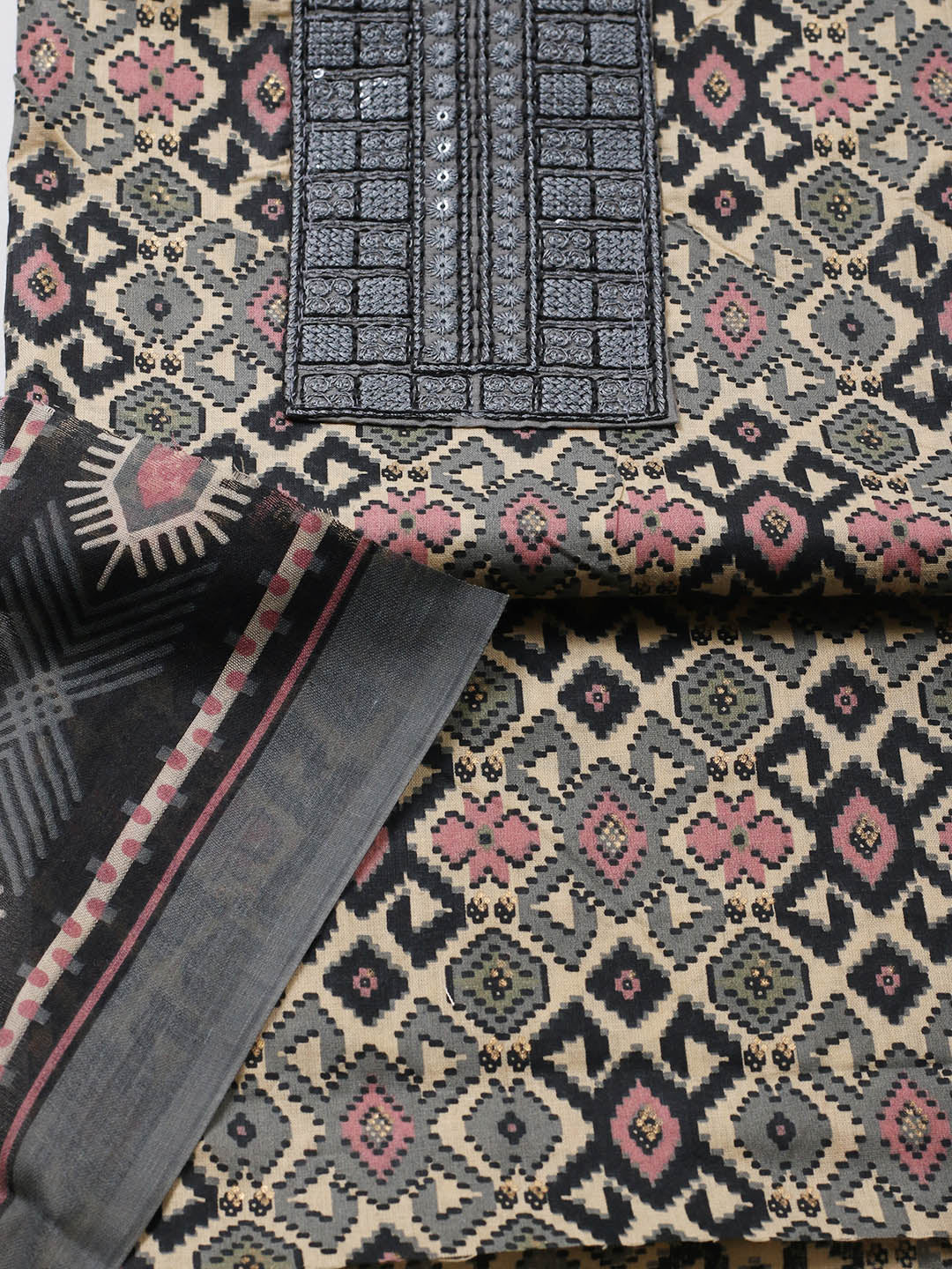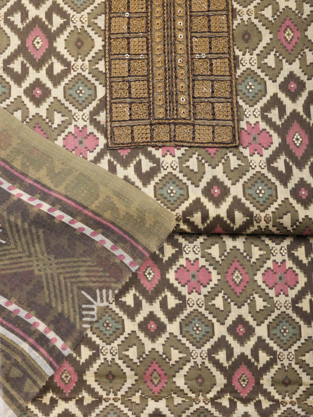 Printed Cotton Blend Unstitched Suit With Pant & Dupatta