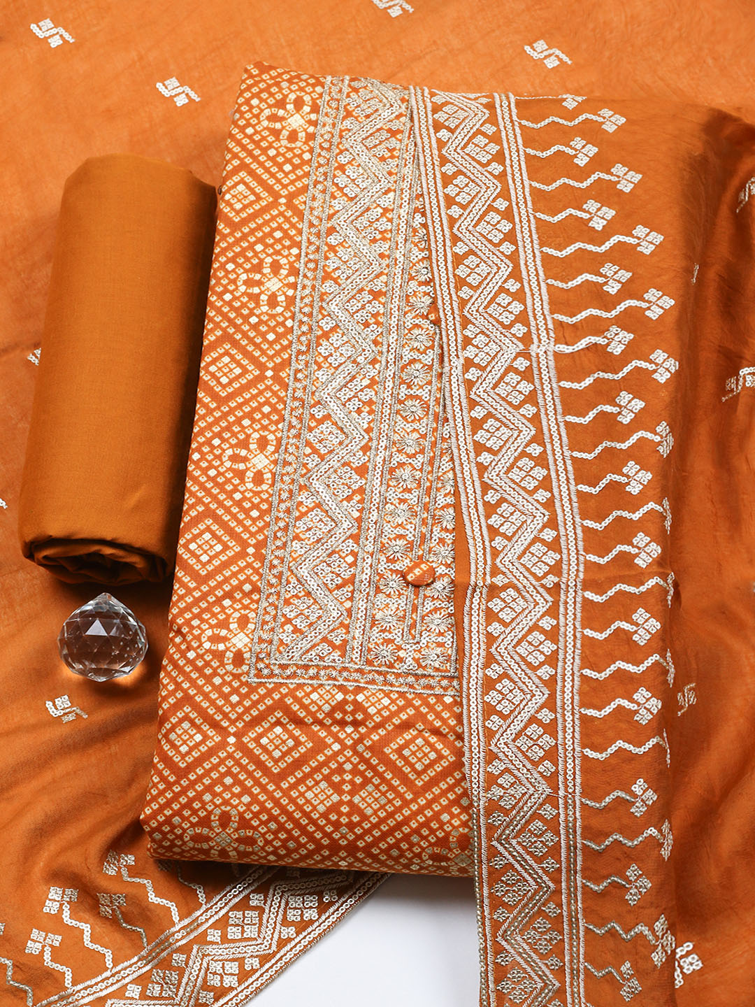 Embroidered Cotton Unstitched Suit With Pant & Dupatta