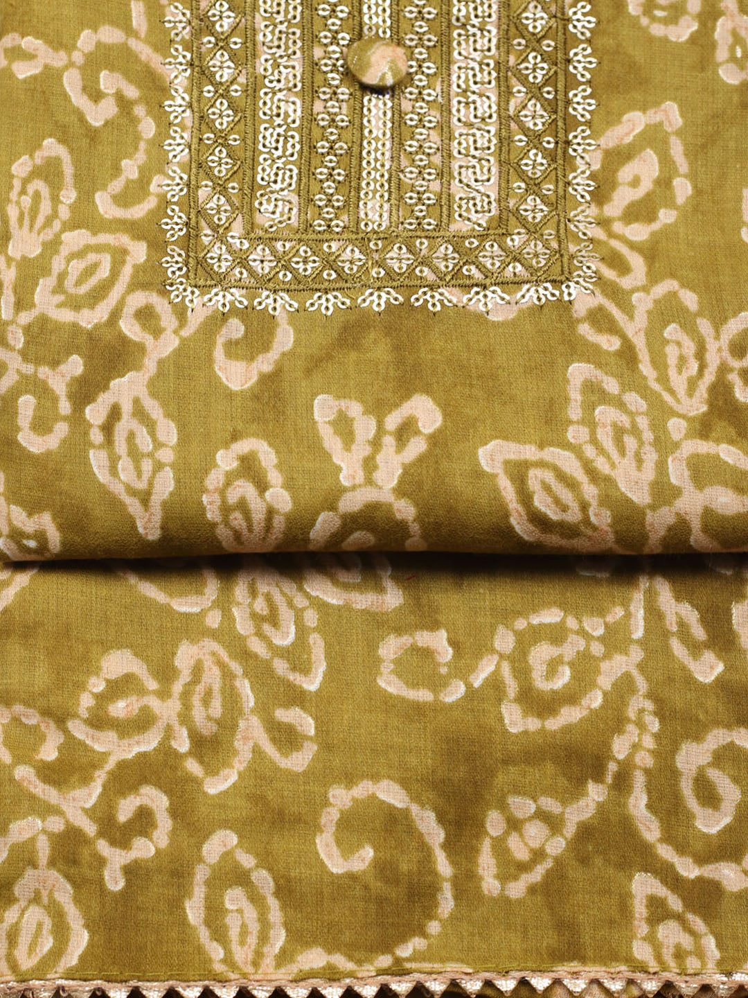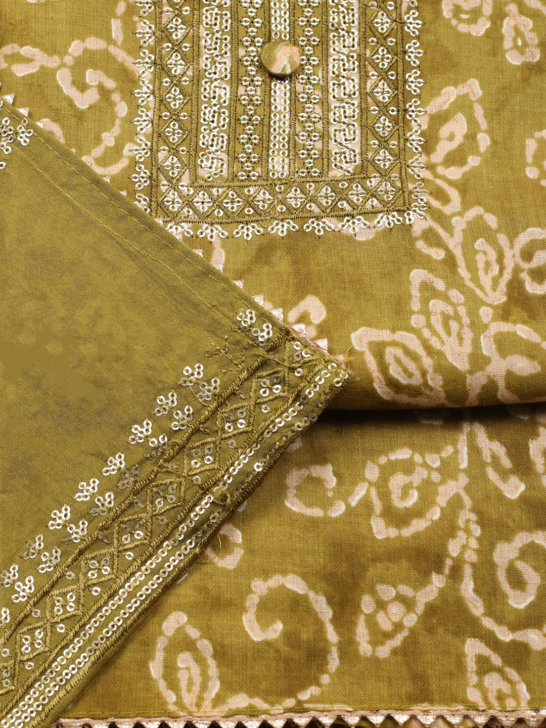 Embroidered Cotton Unstitched Suit With Pant & Dupatta
