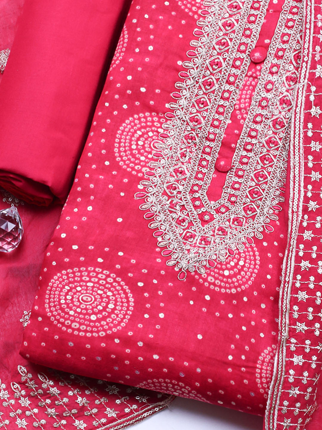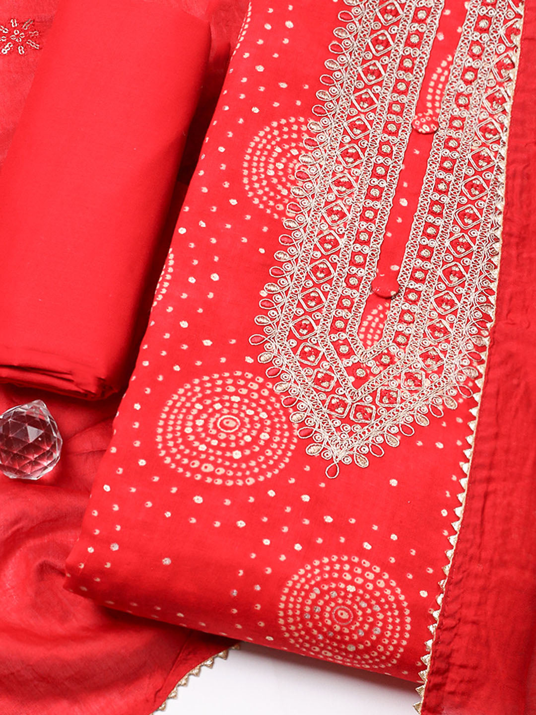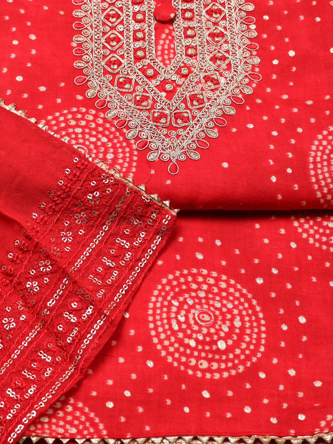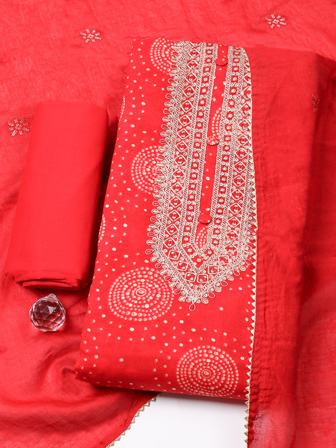 Embroidered Cotton Unstitched Suit With Pant & Dupatta
