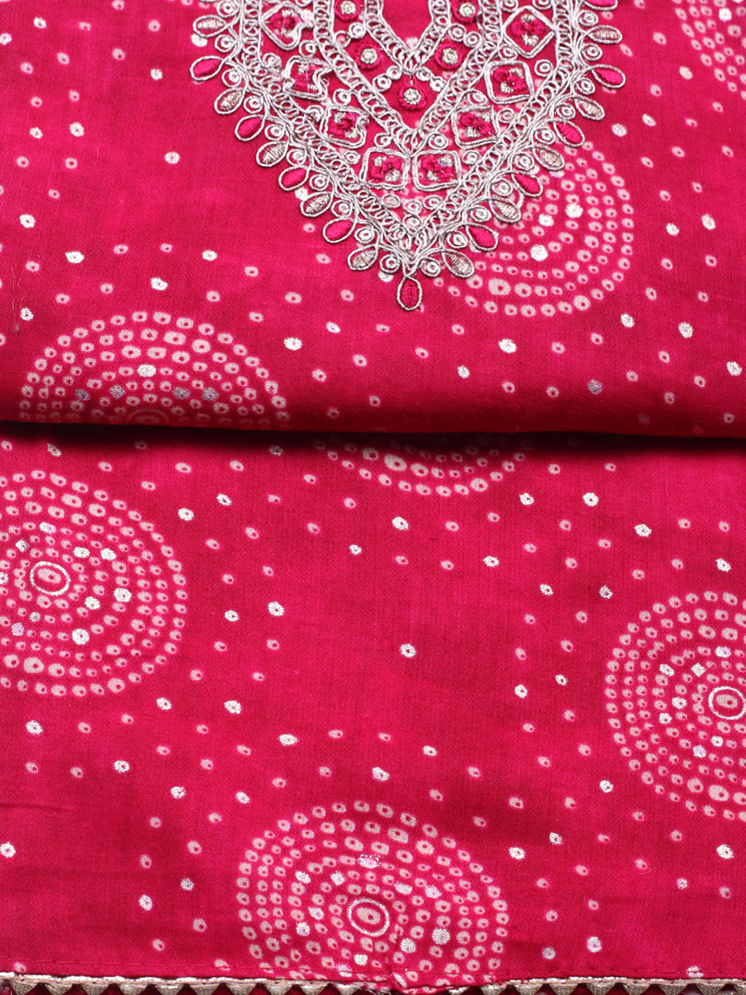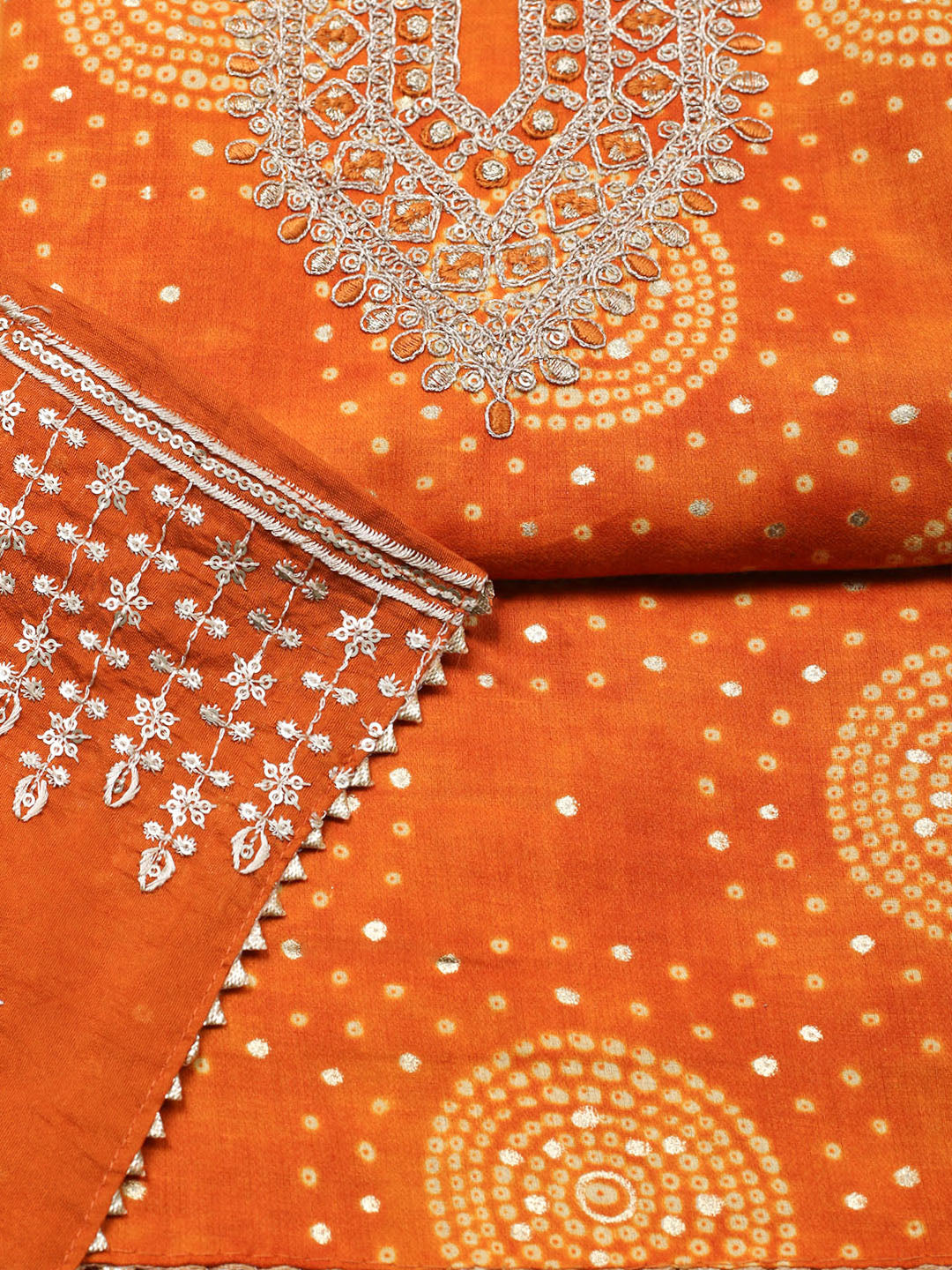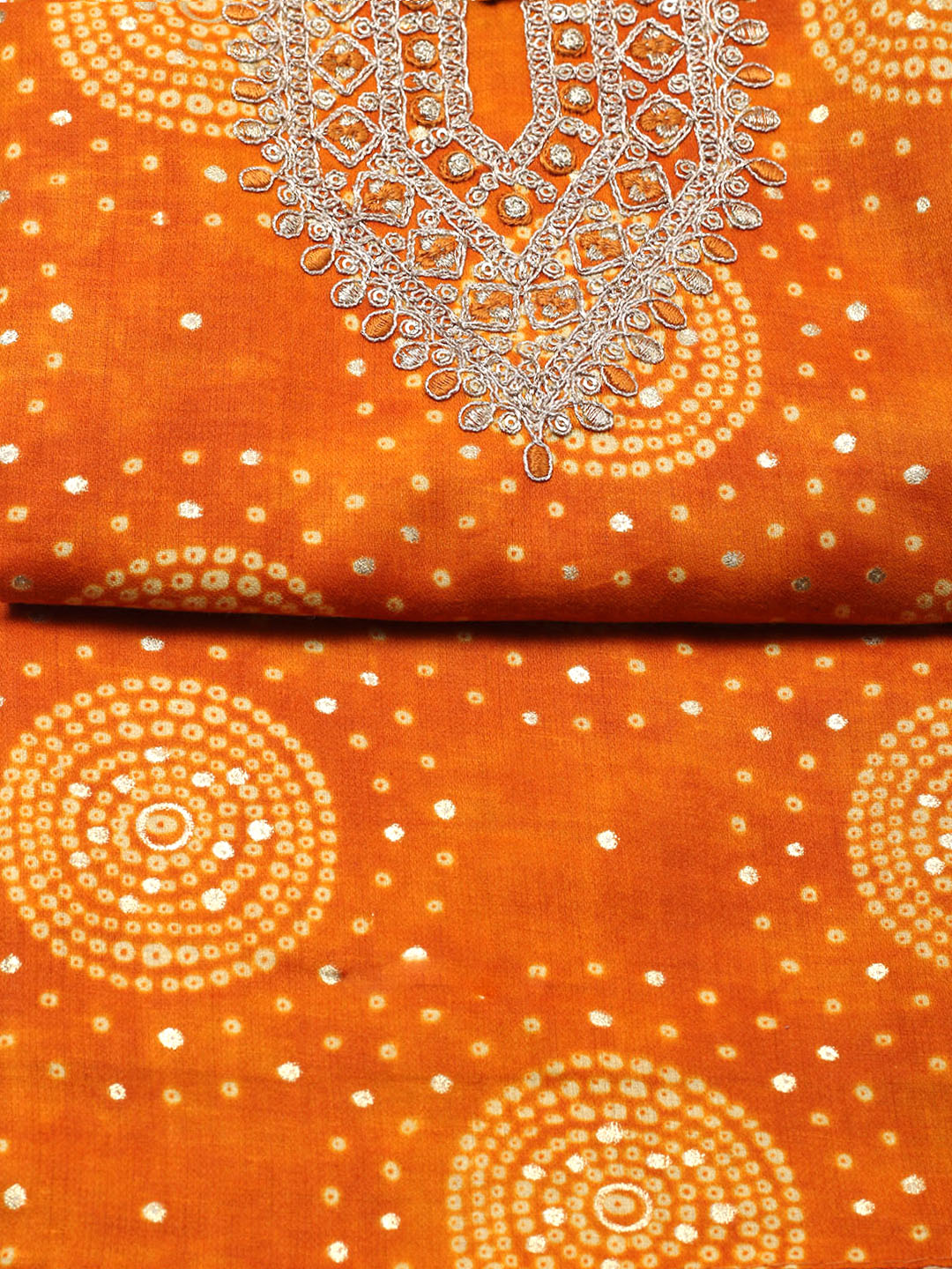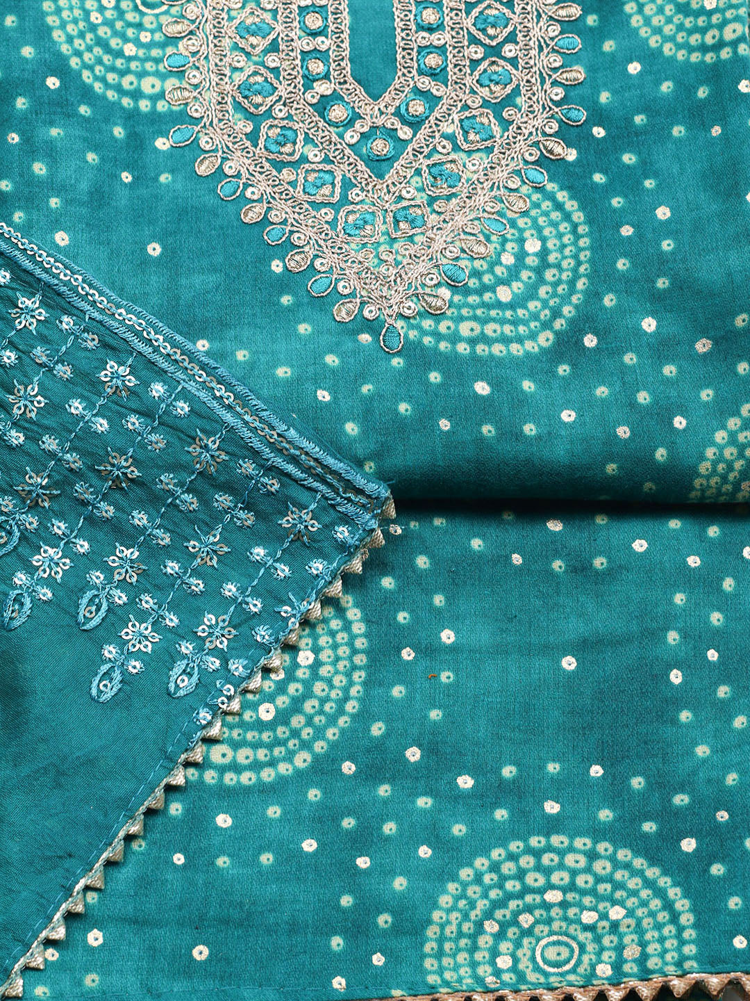Embroidered Cotton Unstitched Suit With Pant & Dupatta