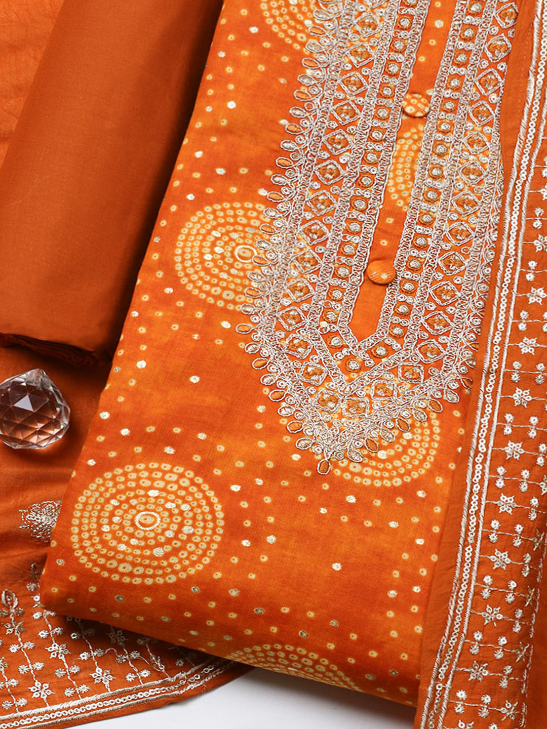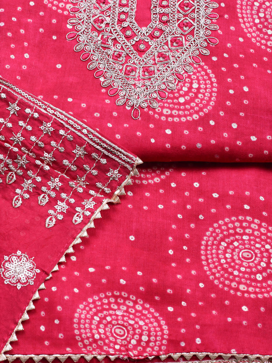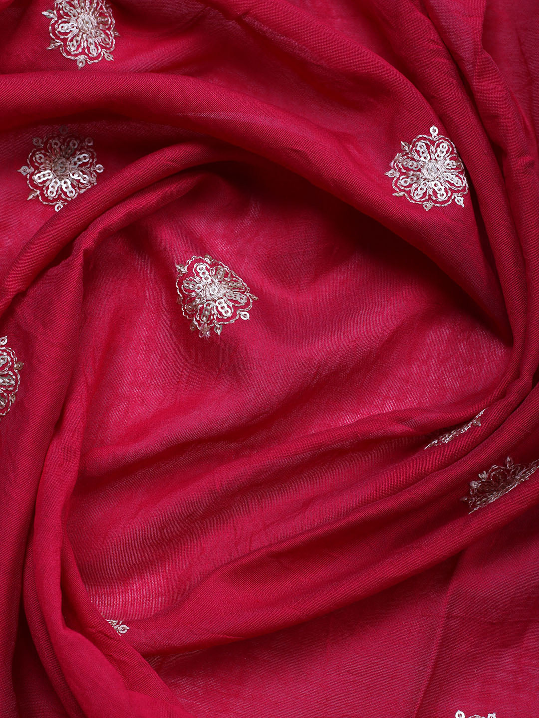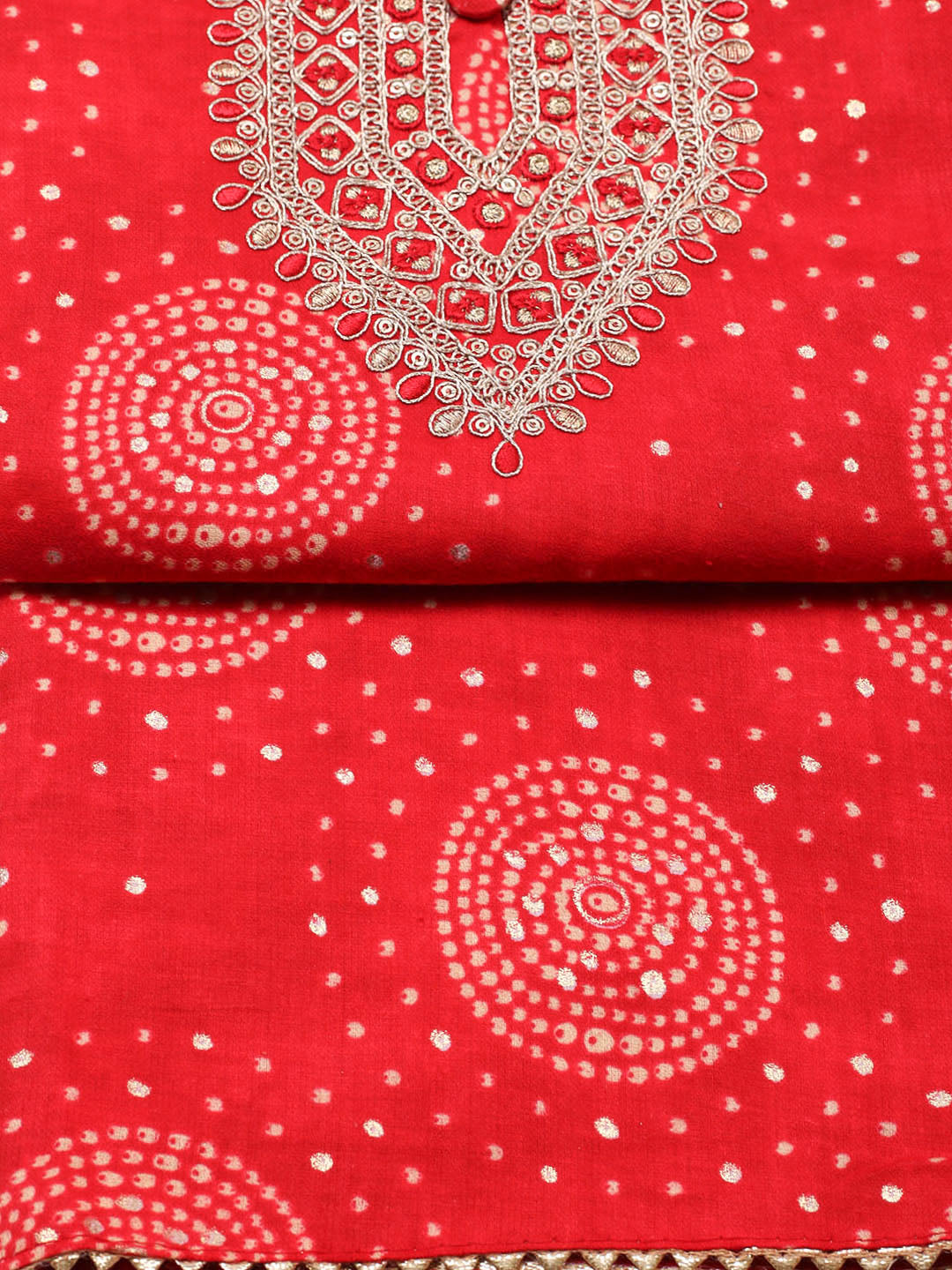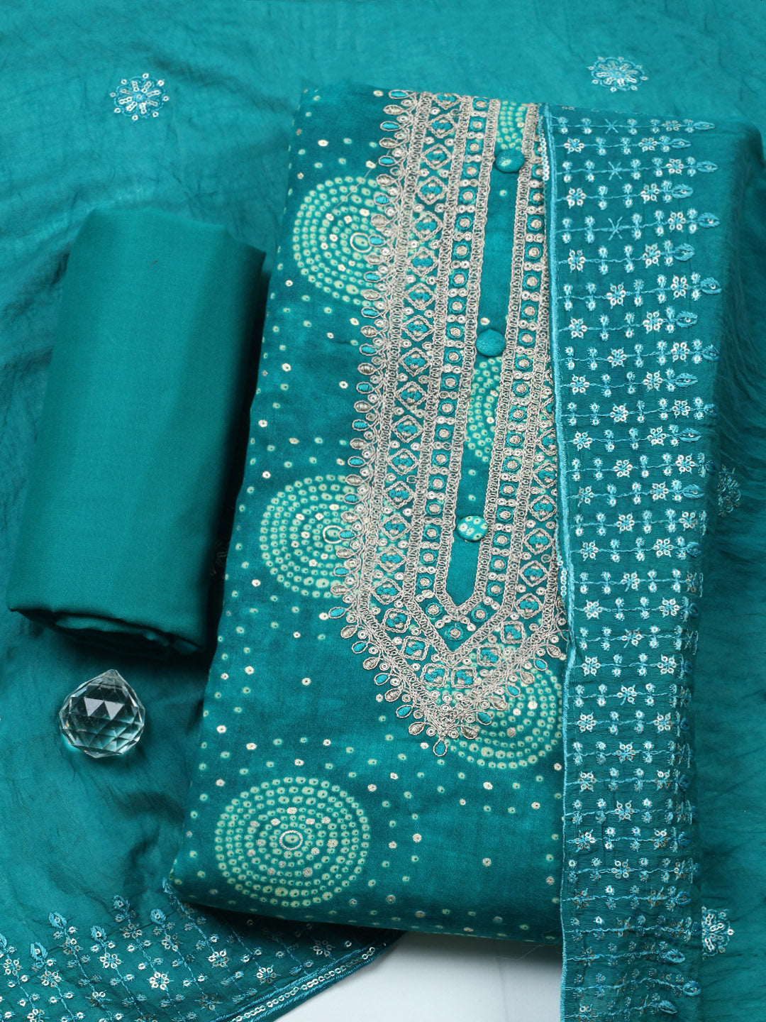 Embroidered Cotton Unstitched Suit With Pant & Dupatta