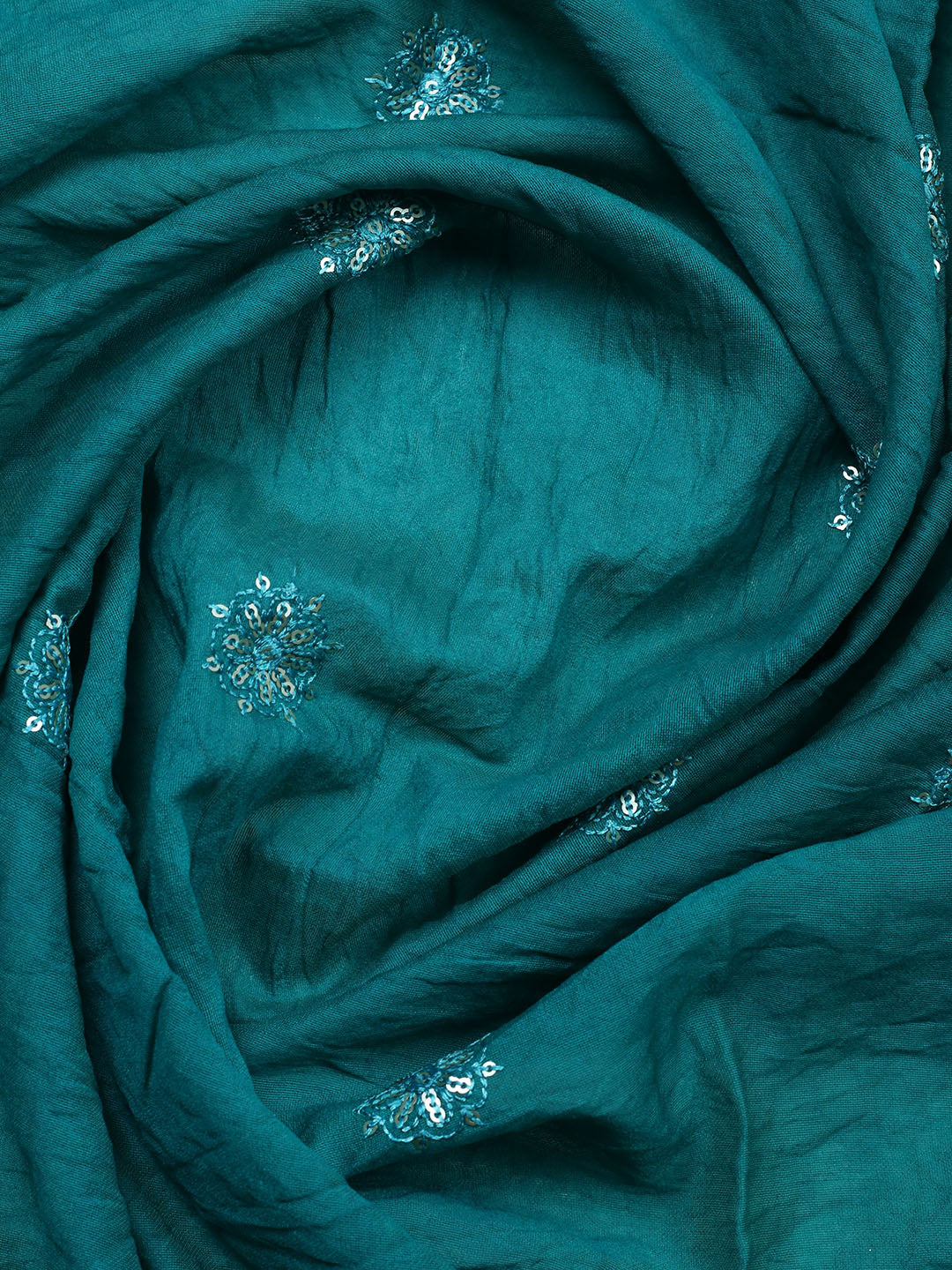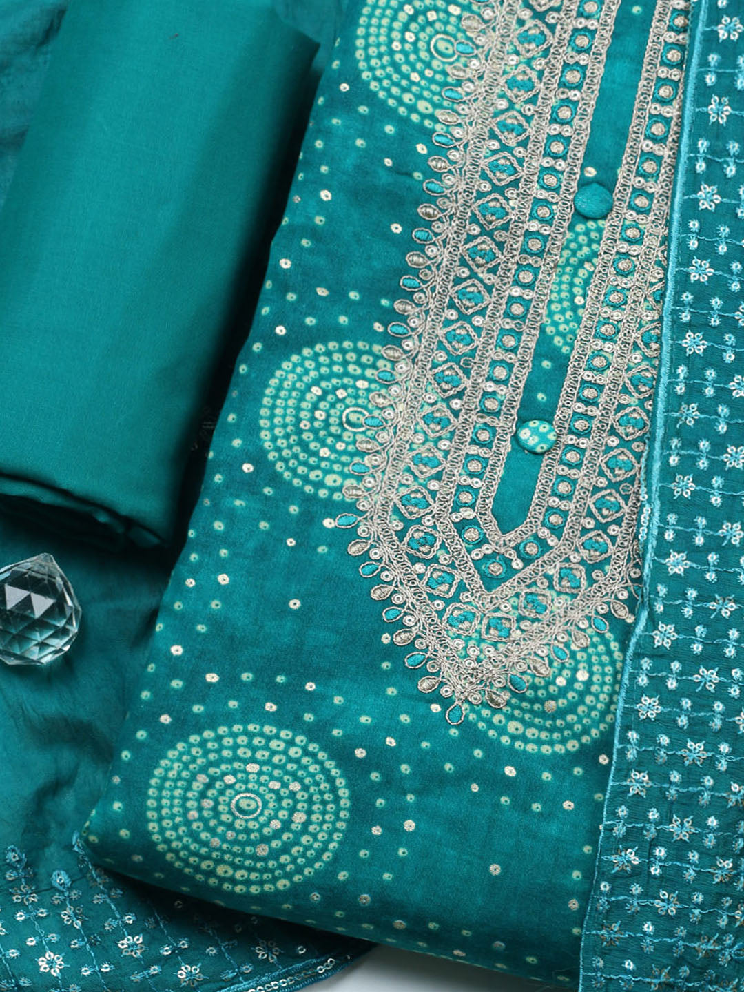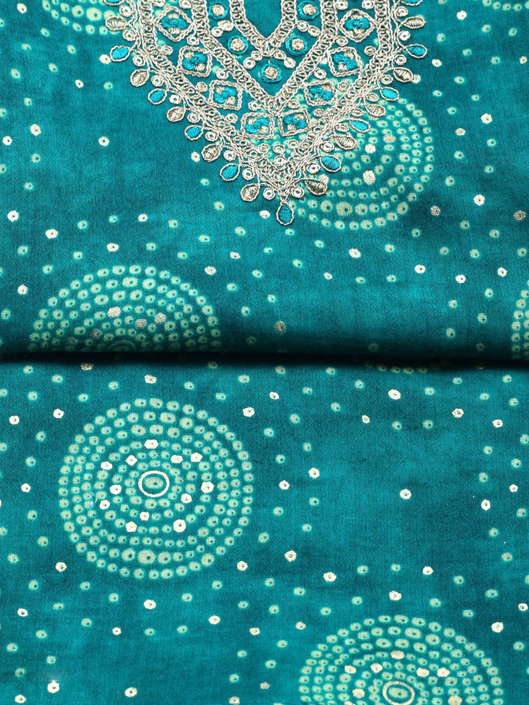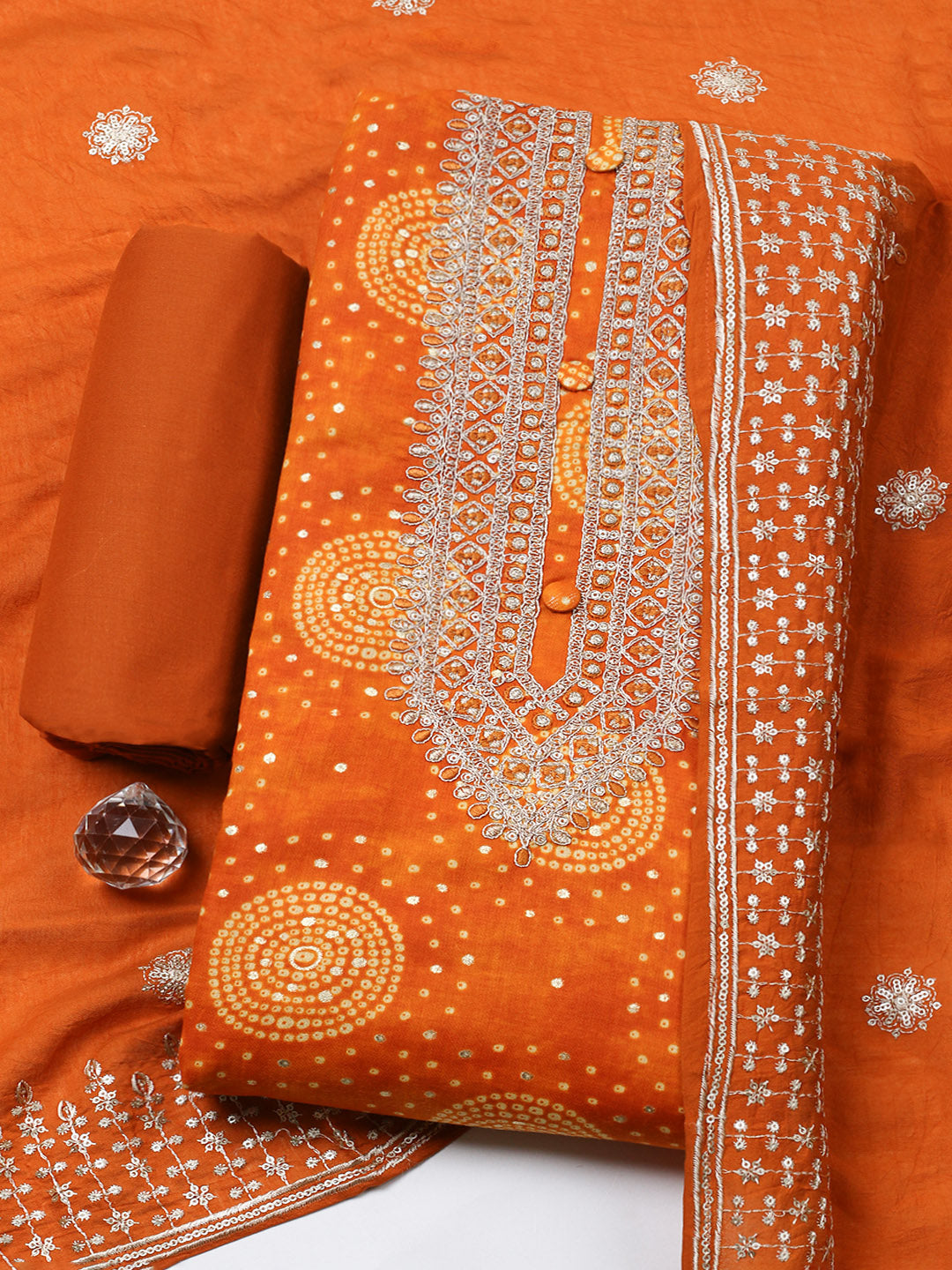 Embroidered Cotton Unstitched Suit With Pant & Dupatta