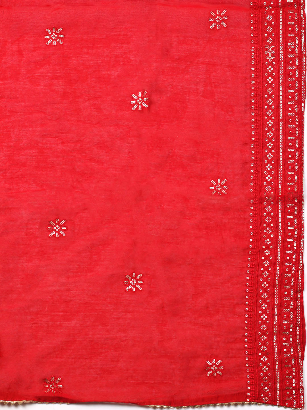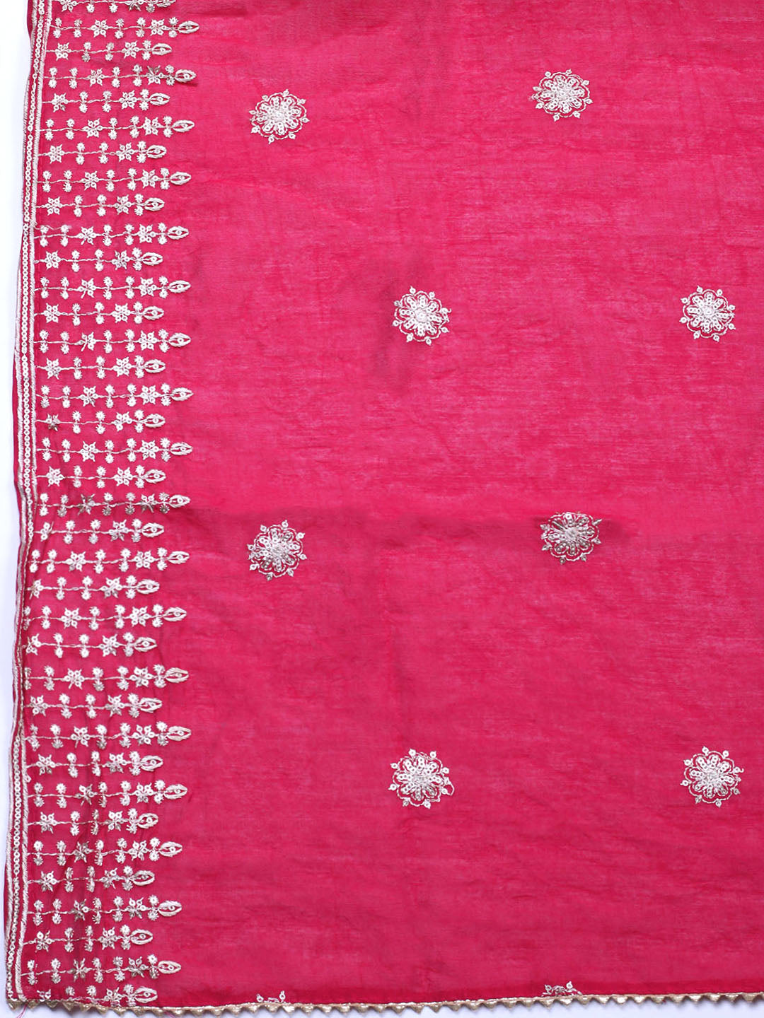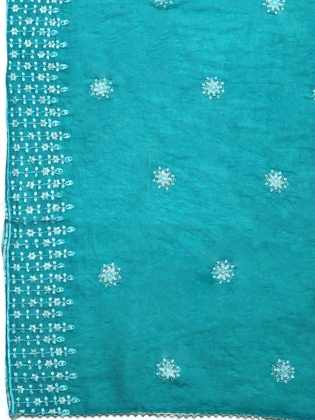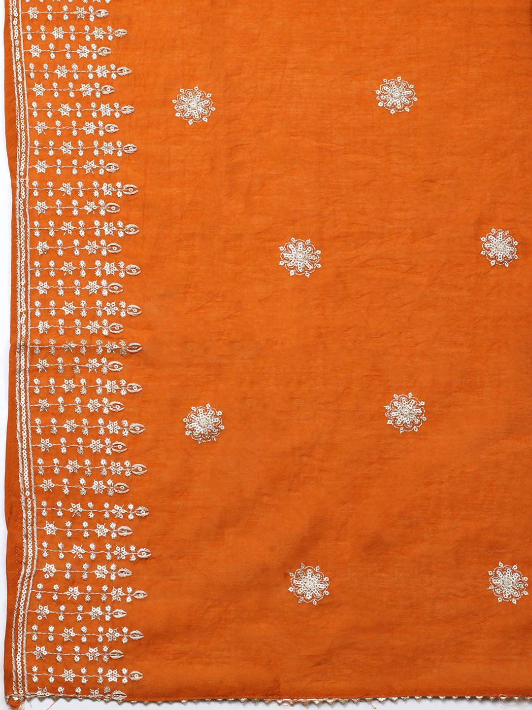 Embroidered Cotton Unstitched Suit With Pant & Dupatta