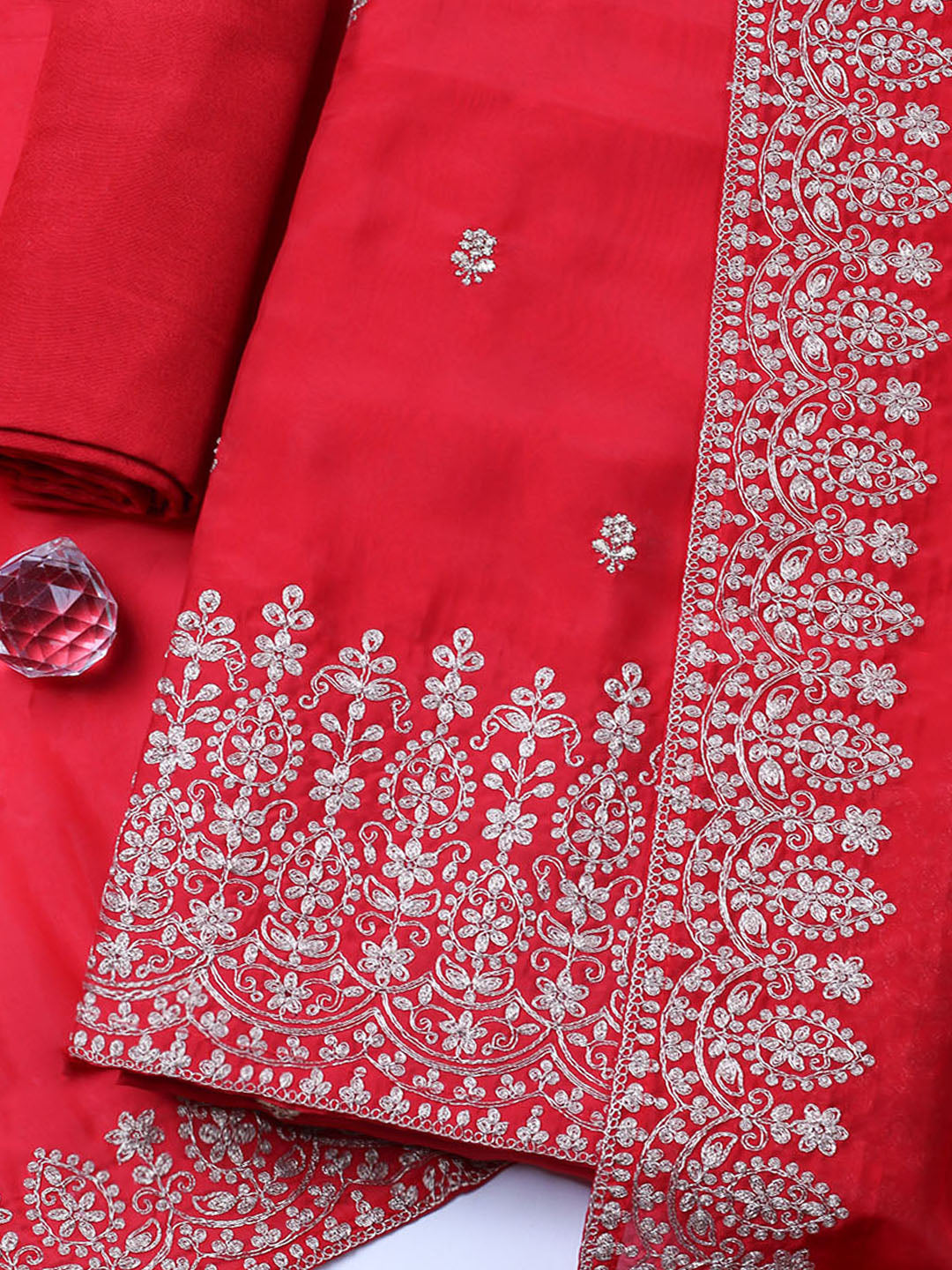 Woven Design Chanderi Unstitched Suit With Pant & Dupatta