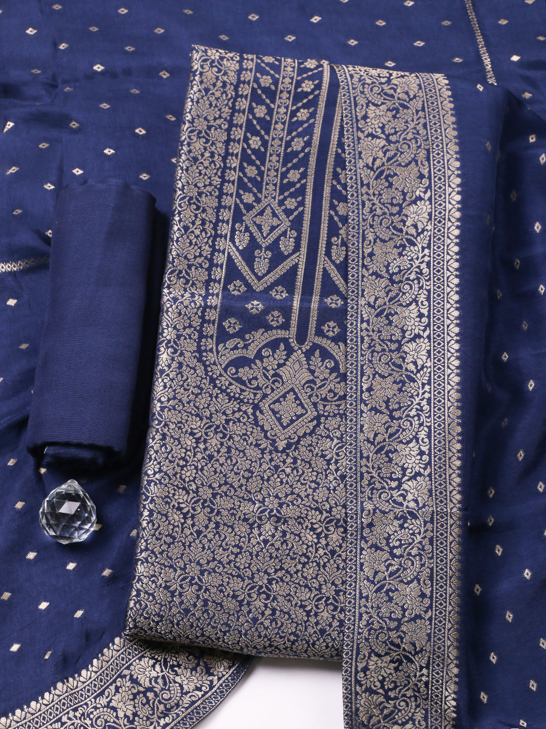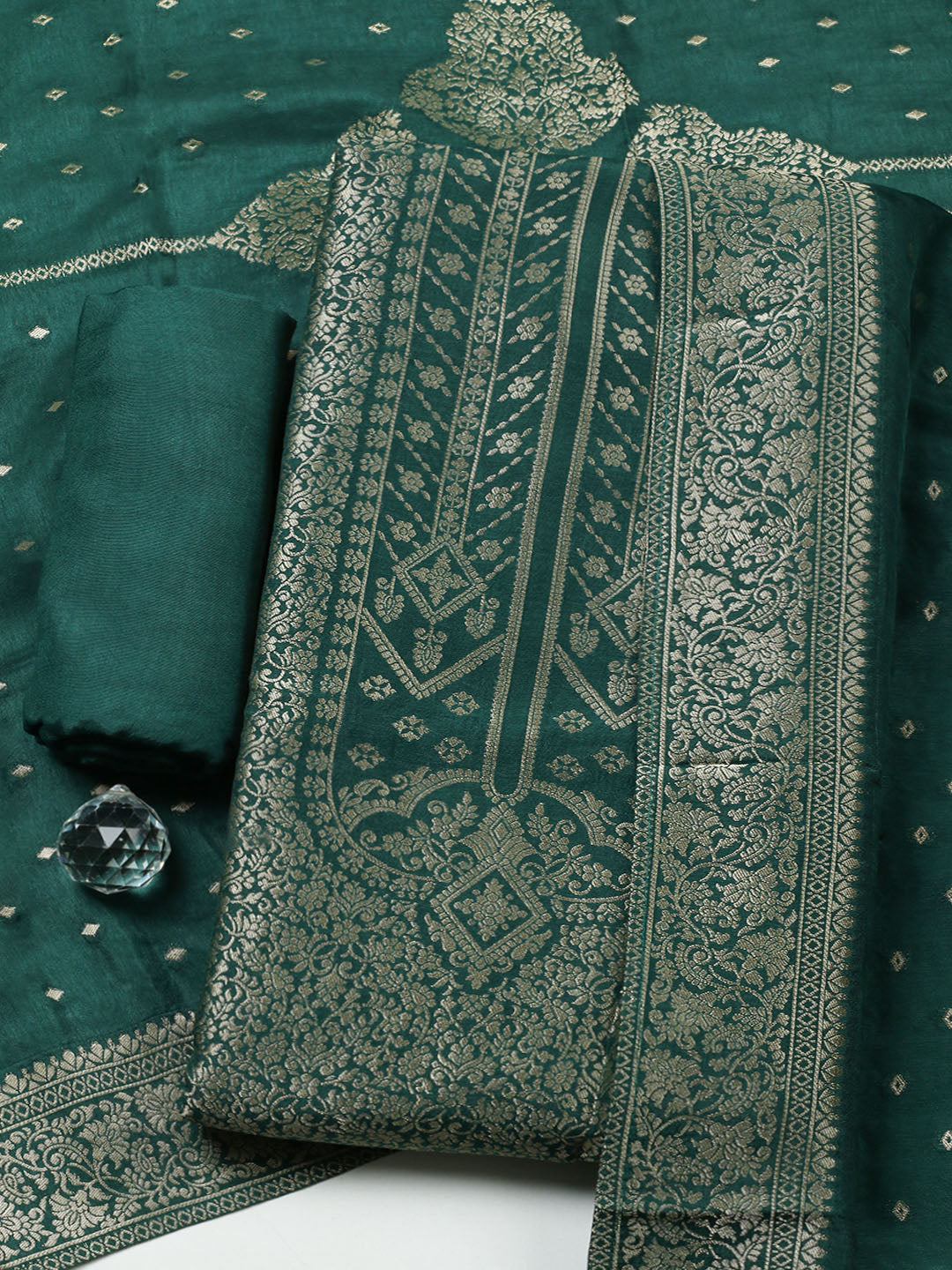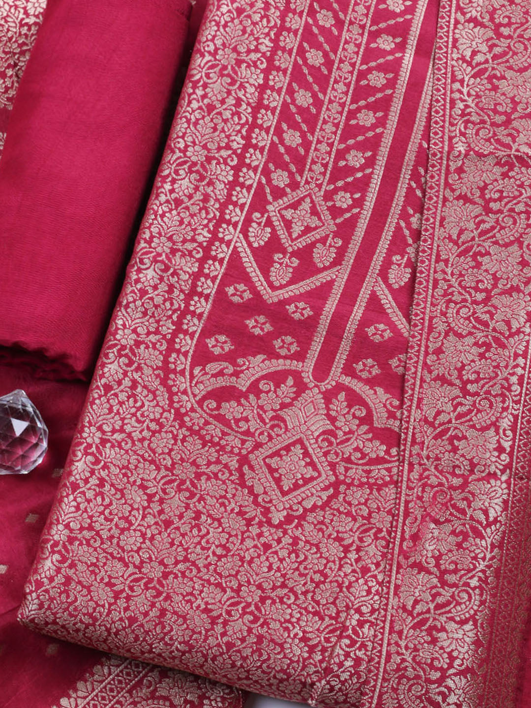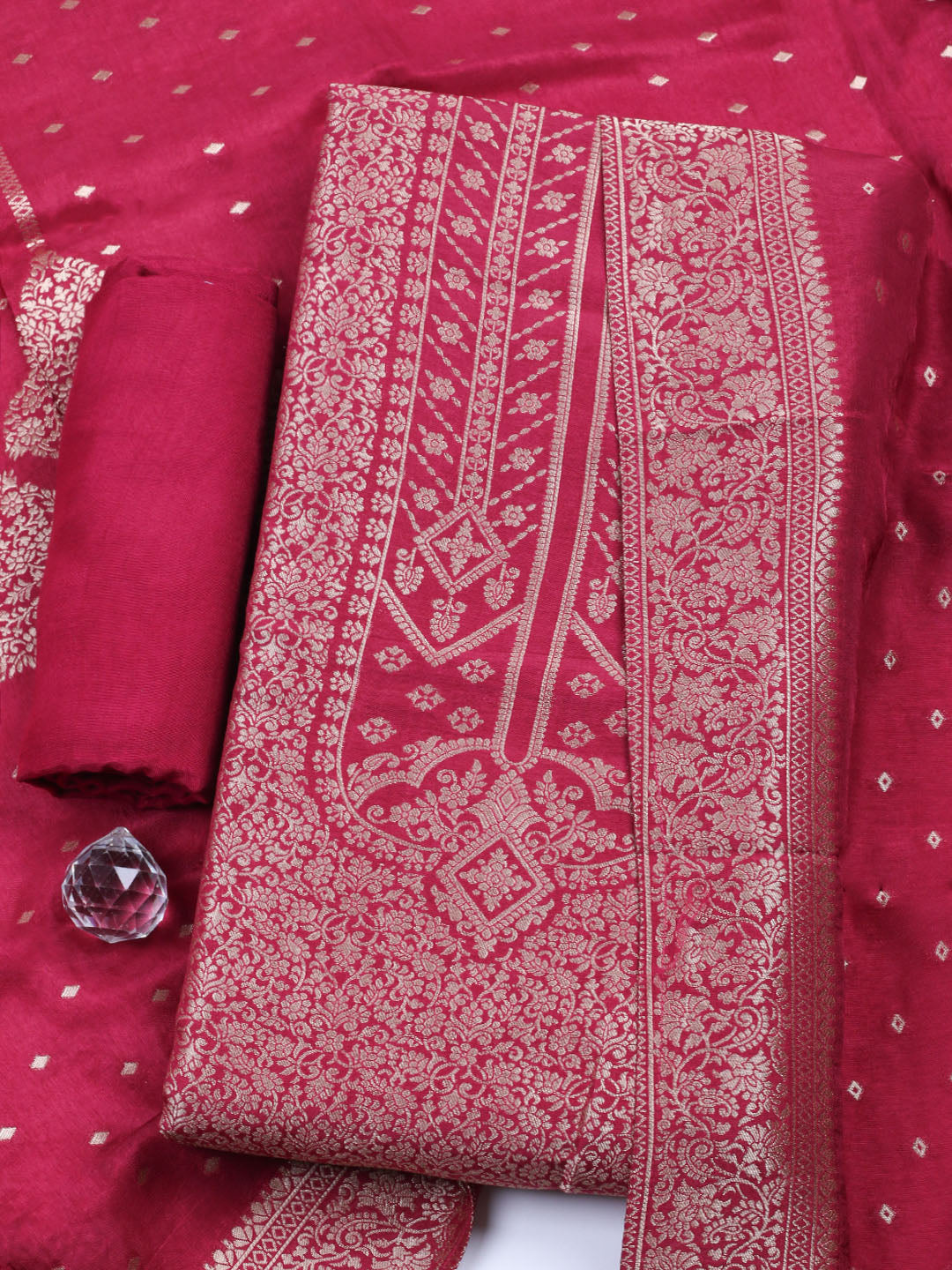 Woven Design Chanderi Unstitched Suit With Pant & Dupatta