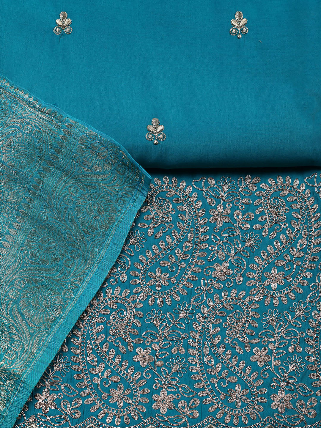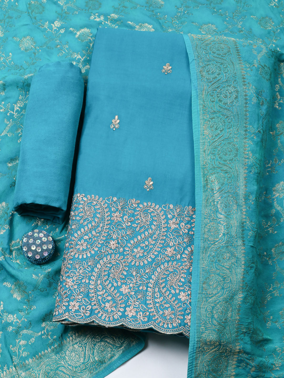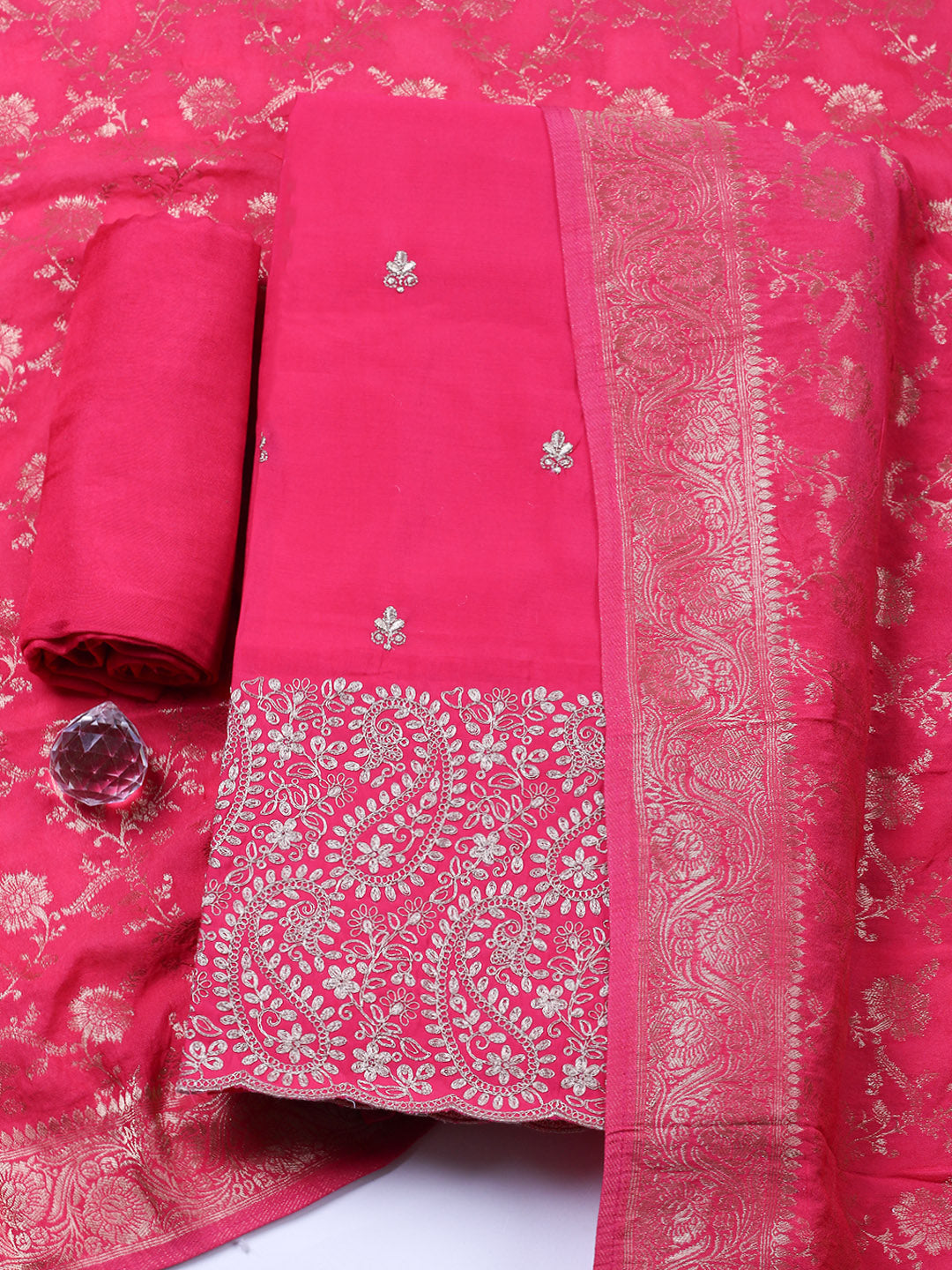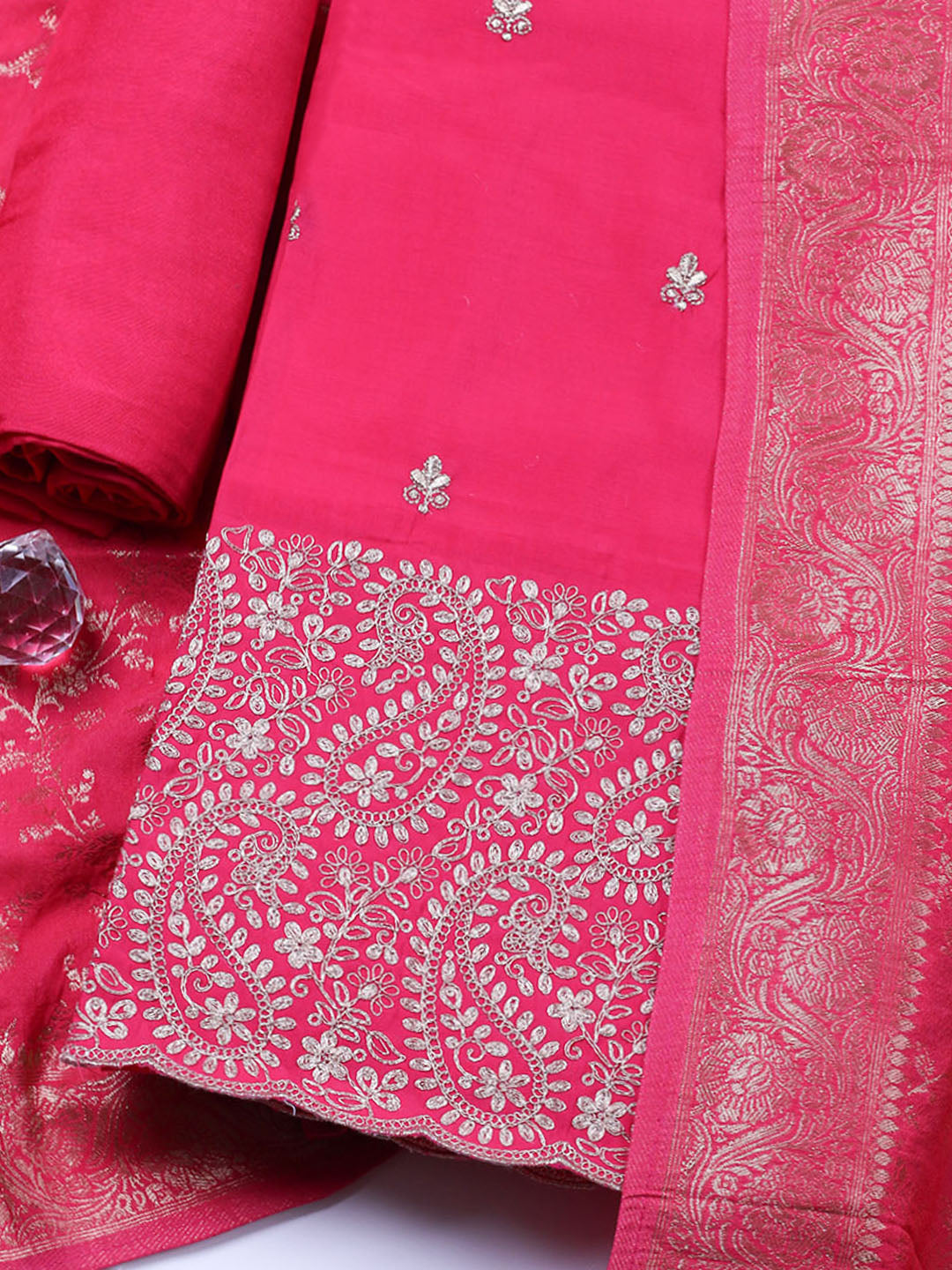 Woven Design Chanderi Unstitched Suit With Pant & Dupatta