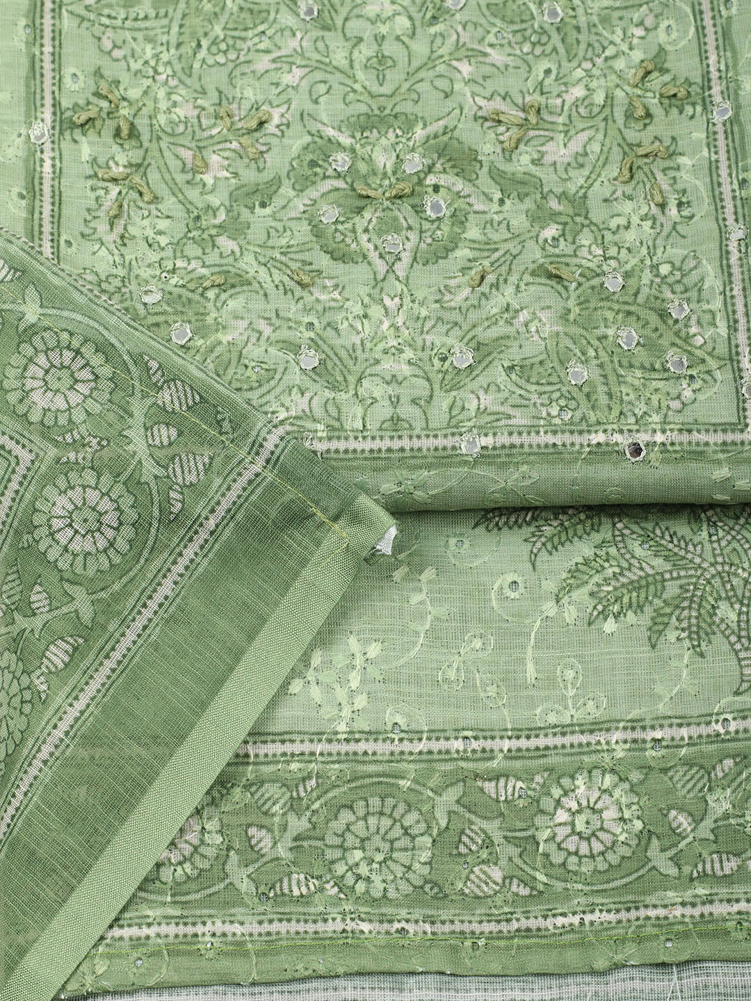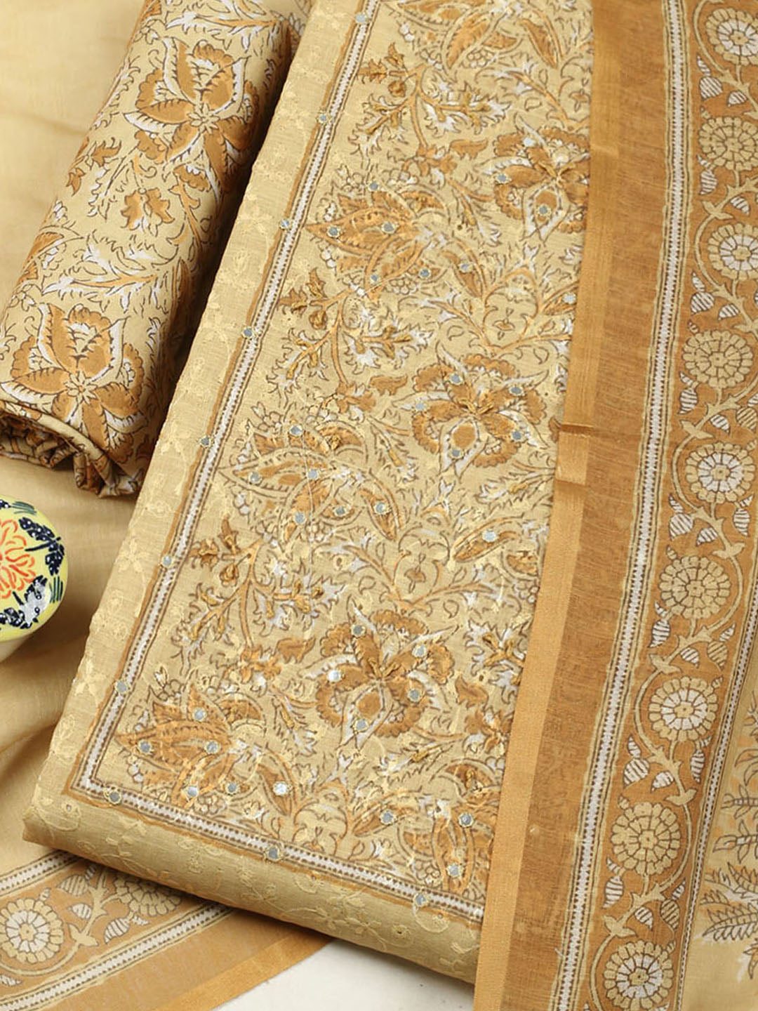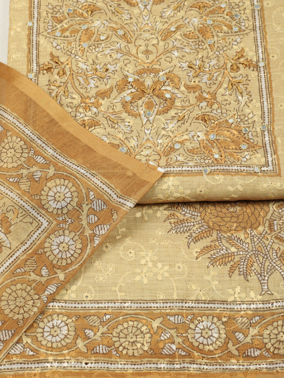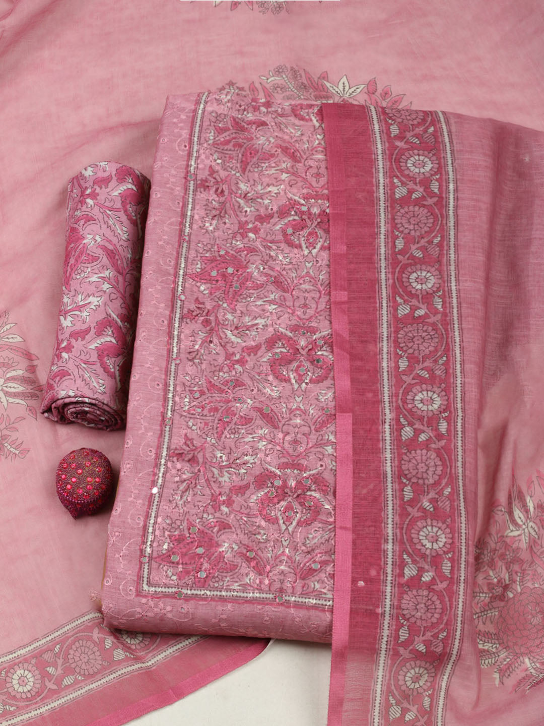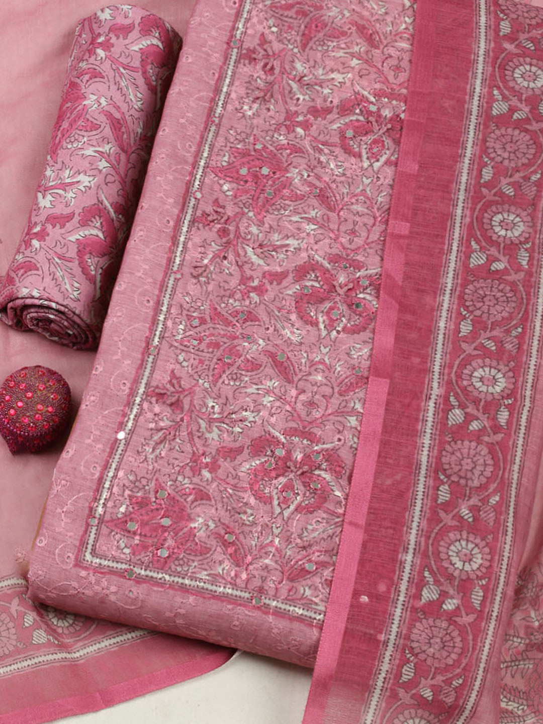 Embroidered Chanderi Unstitched Suit With Pant & Dupatta