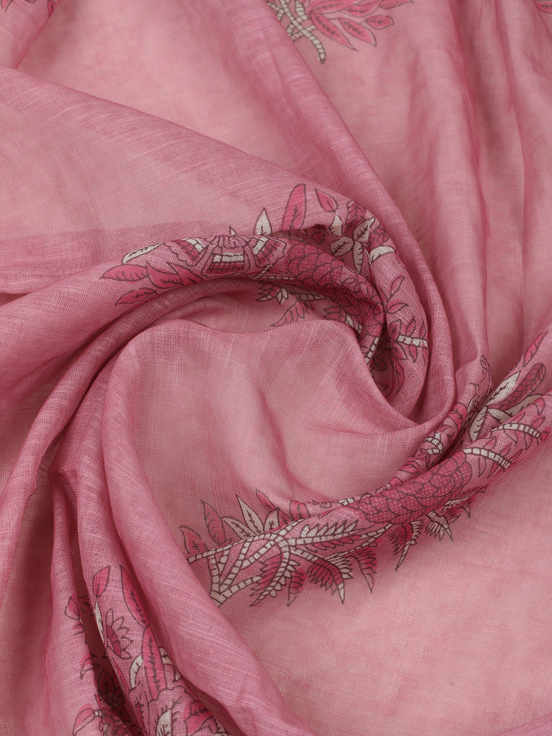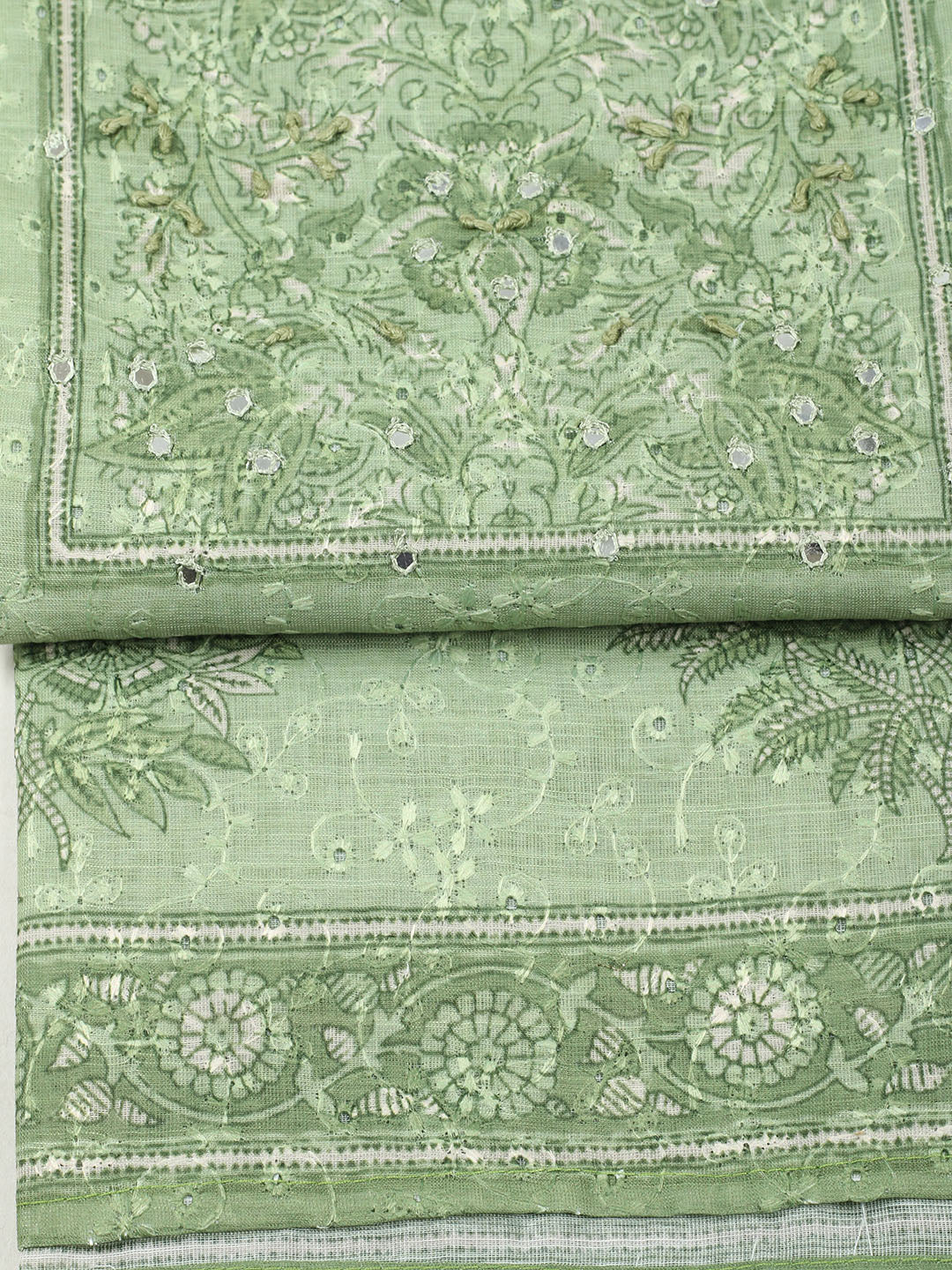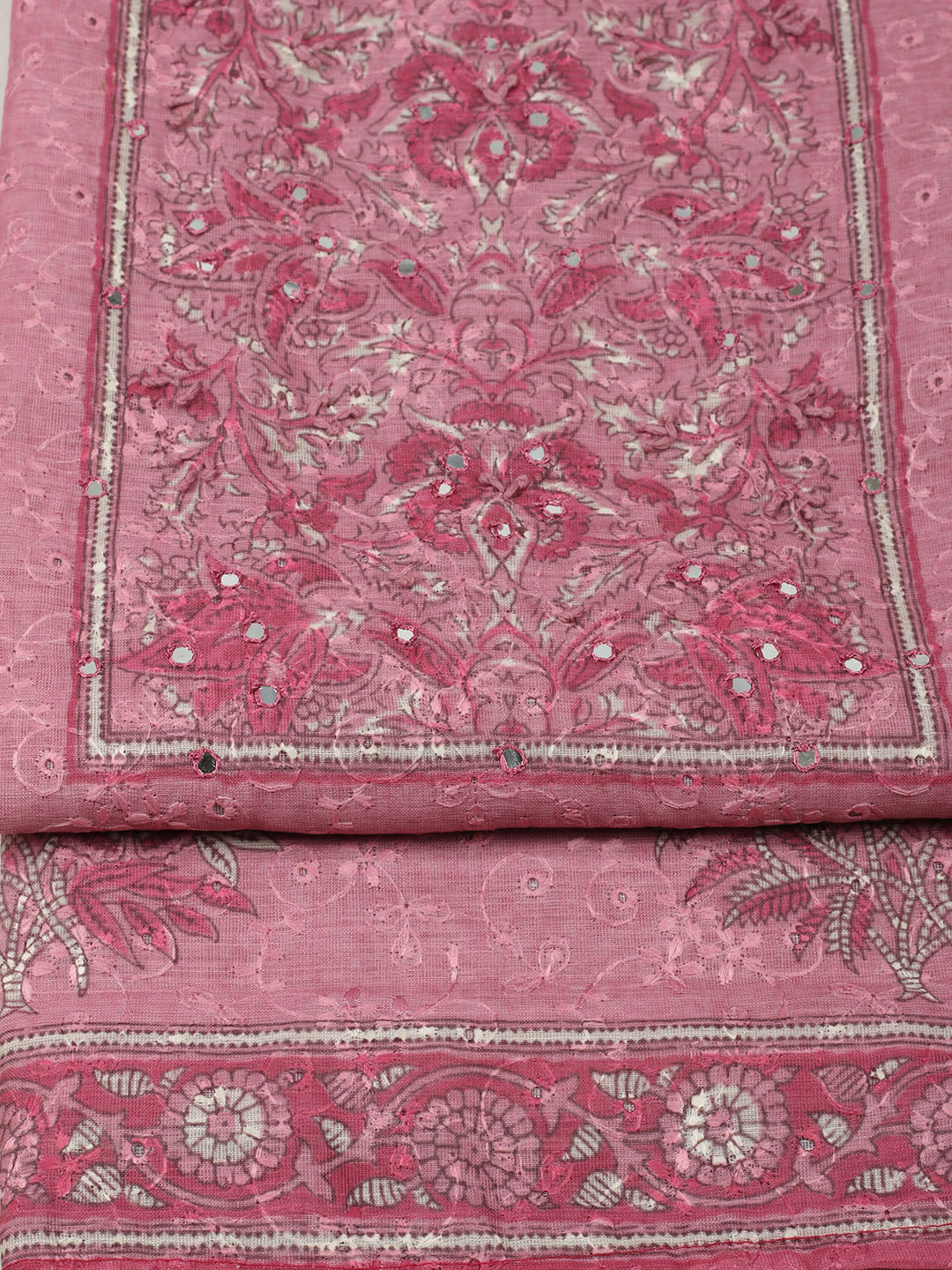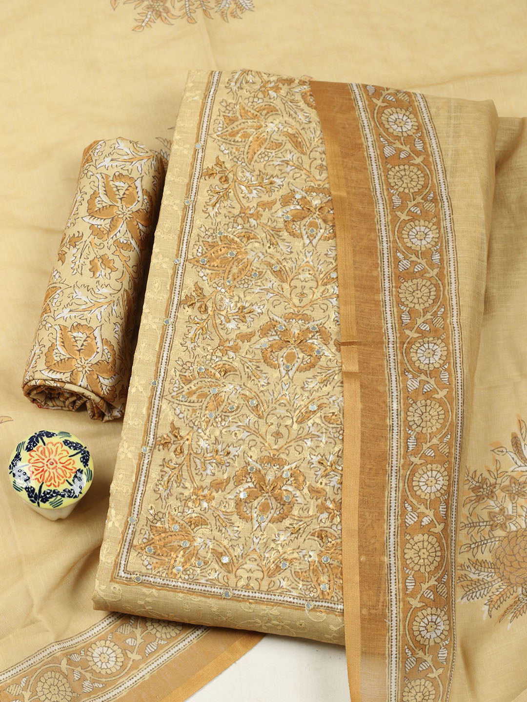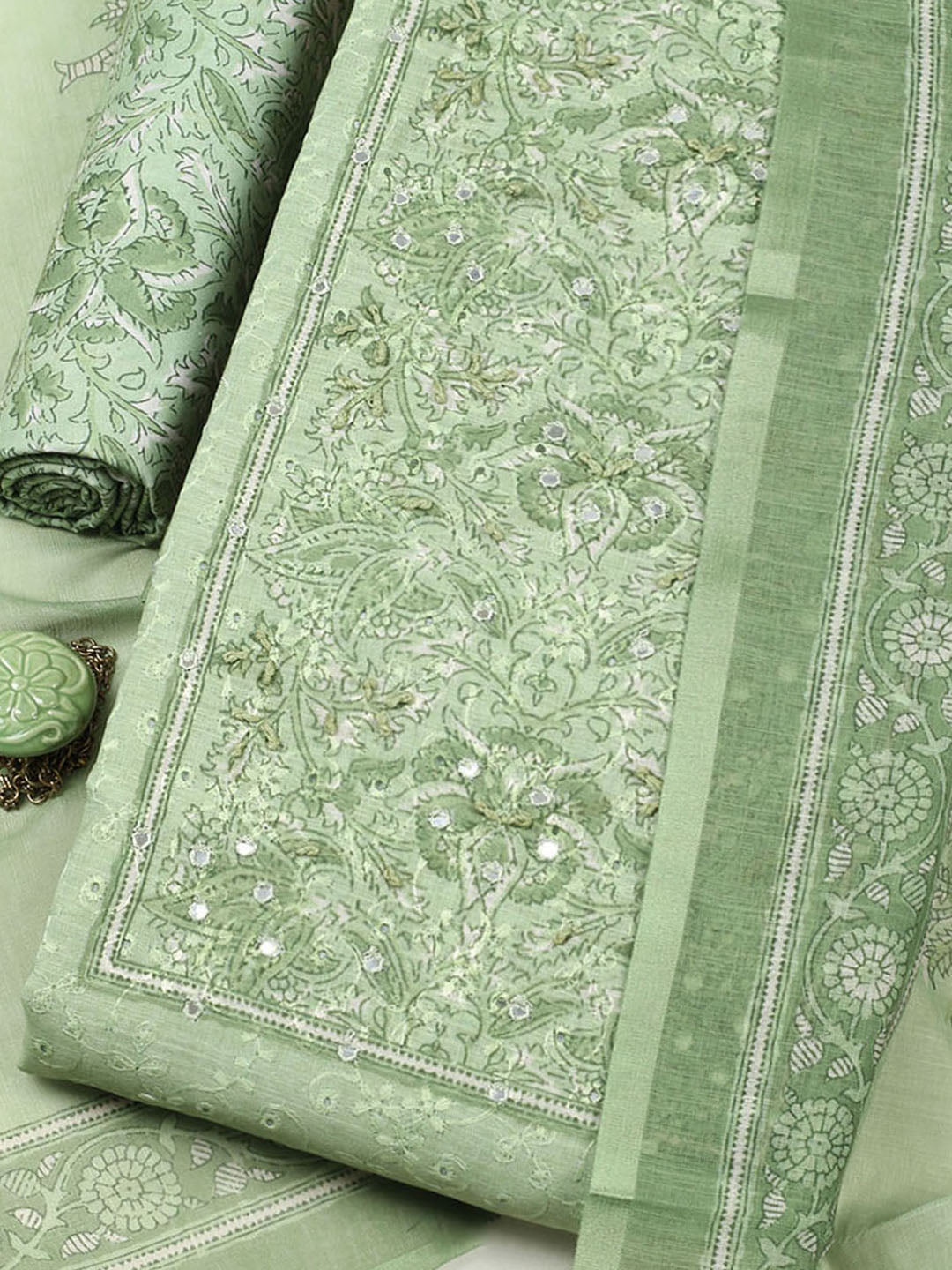 Embroidered Chanderi Unstitched Suit With Pant & Dupatta