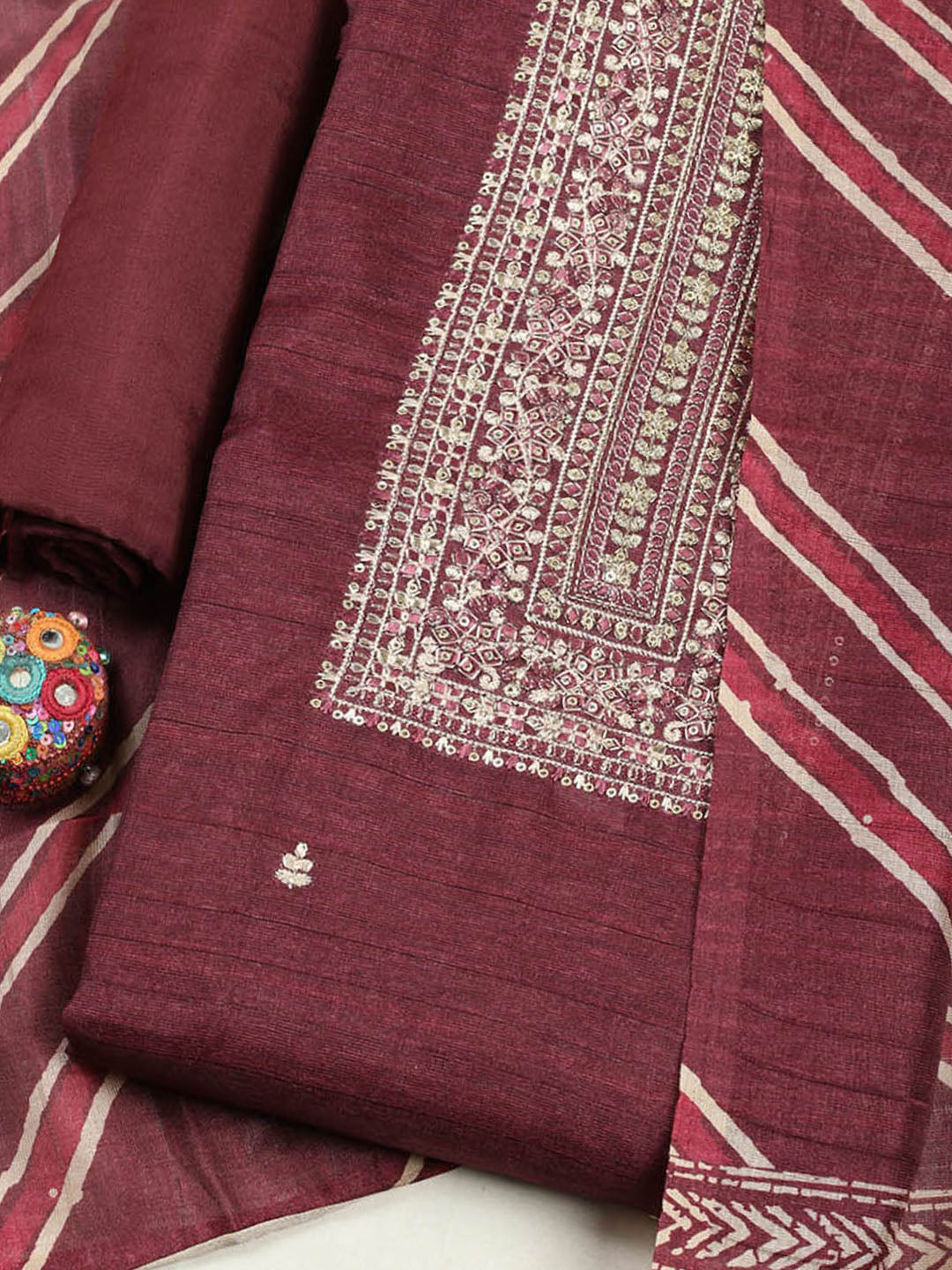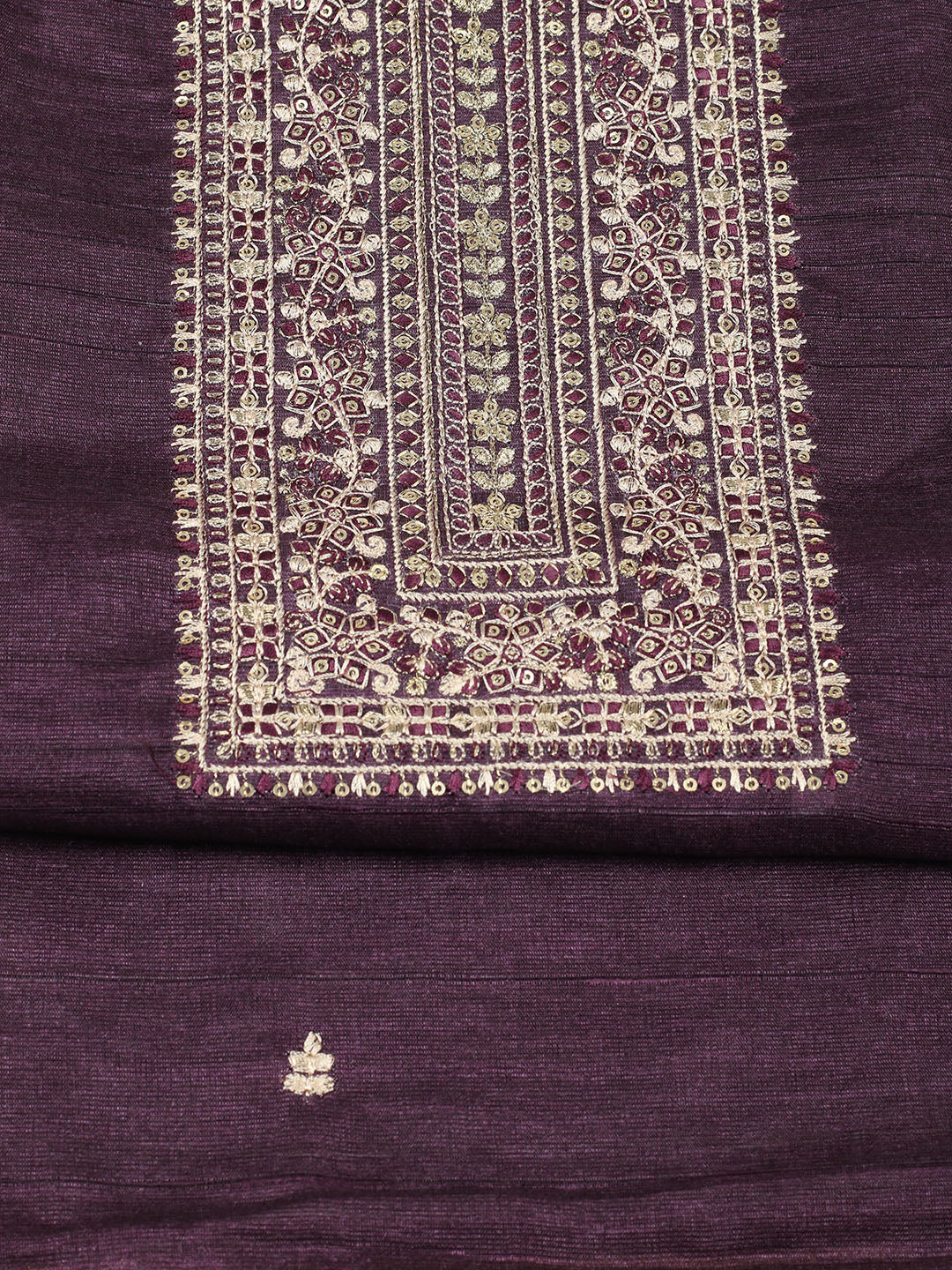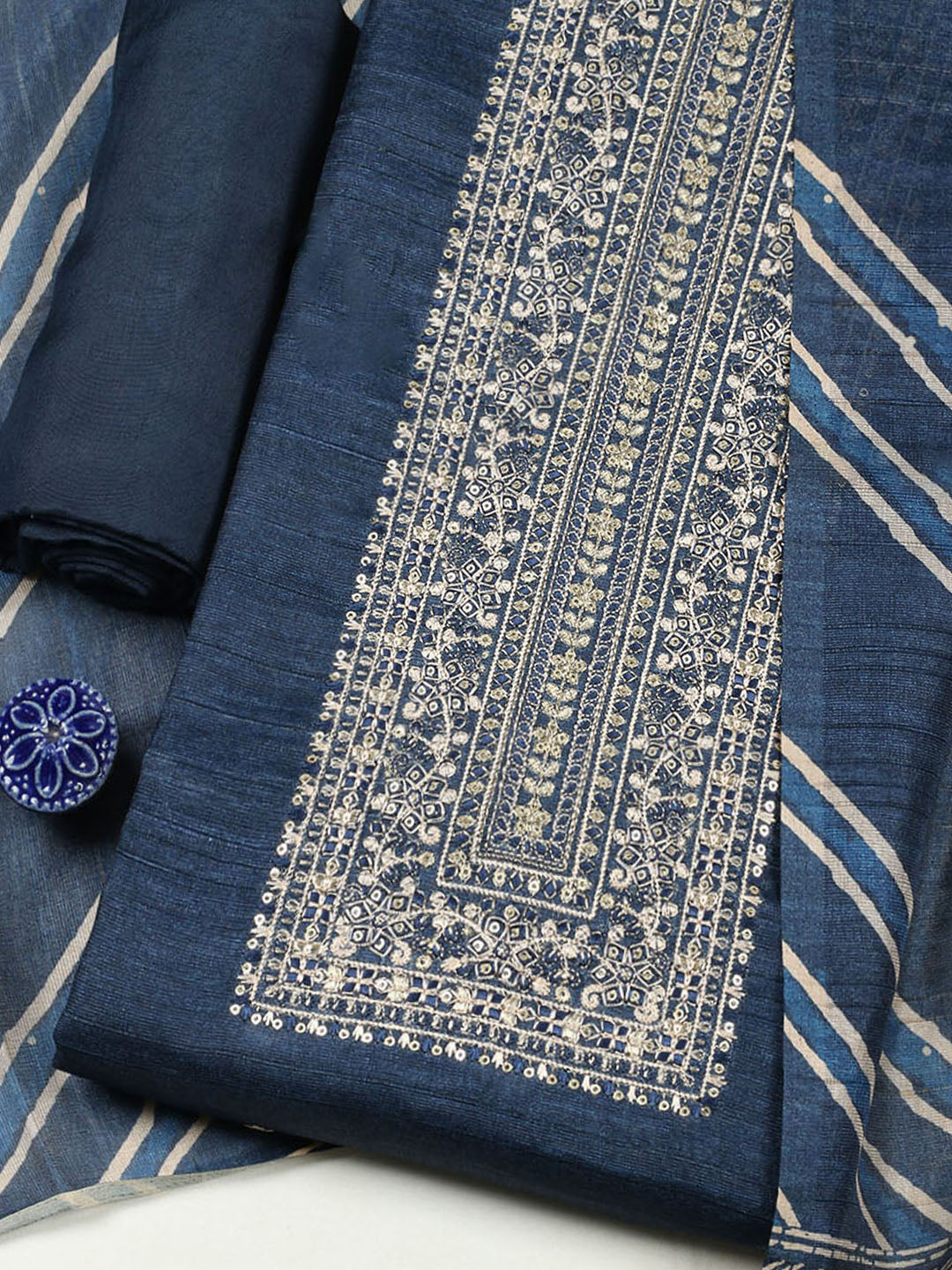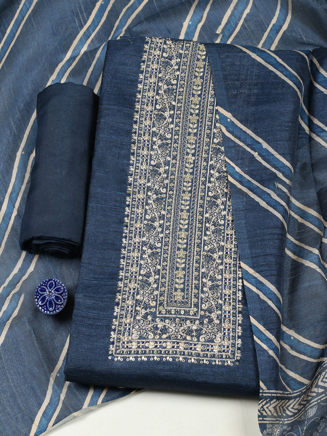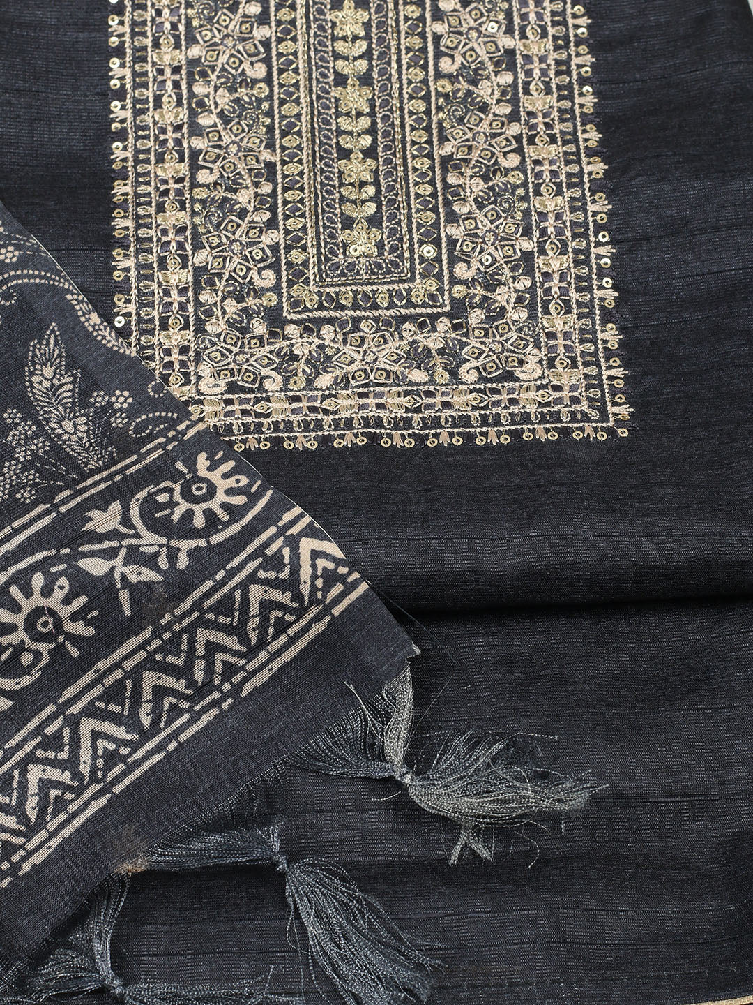 Embroidered Chanderi Unstitched Suit With Pant & Dupatta