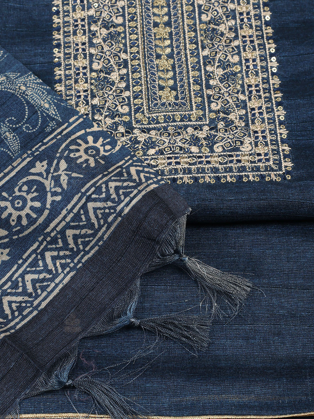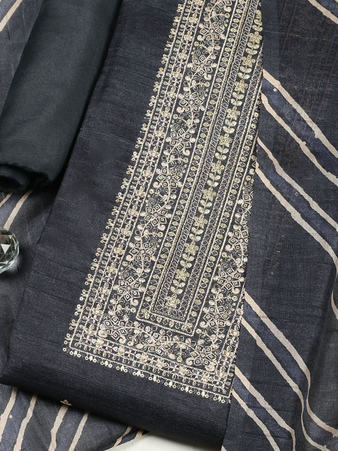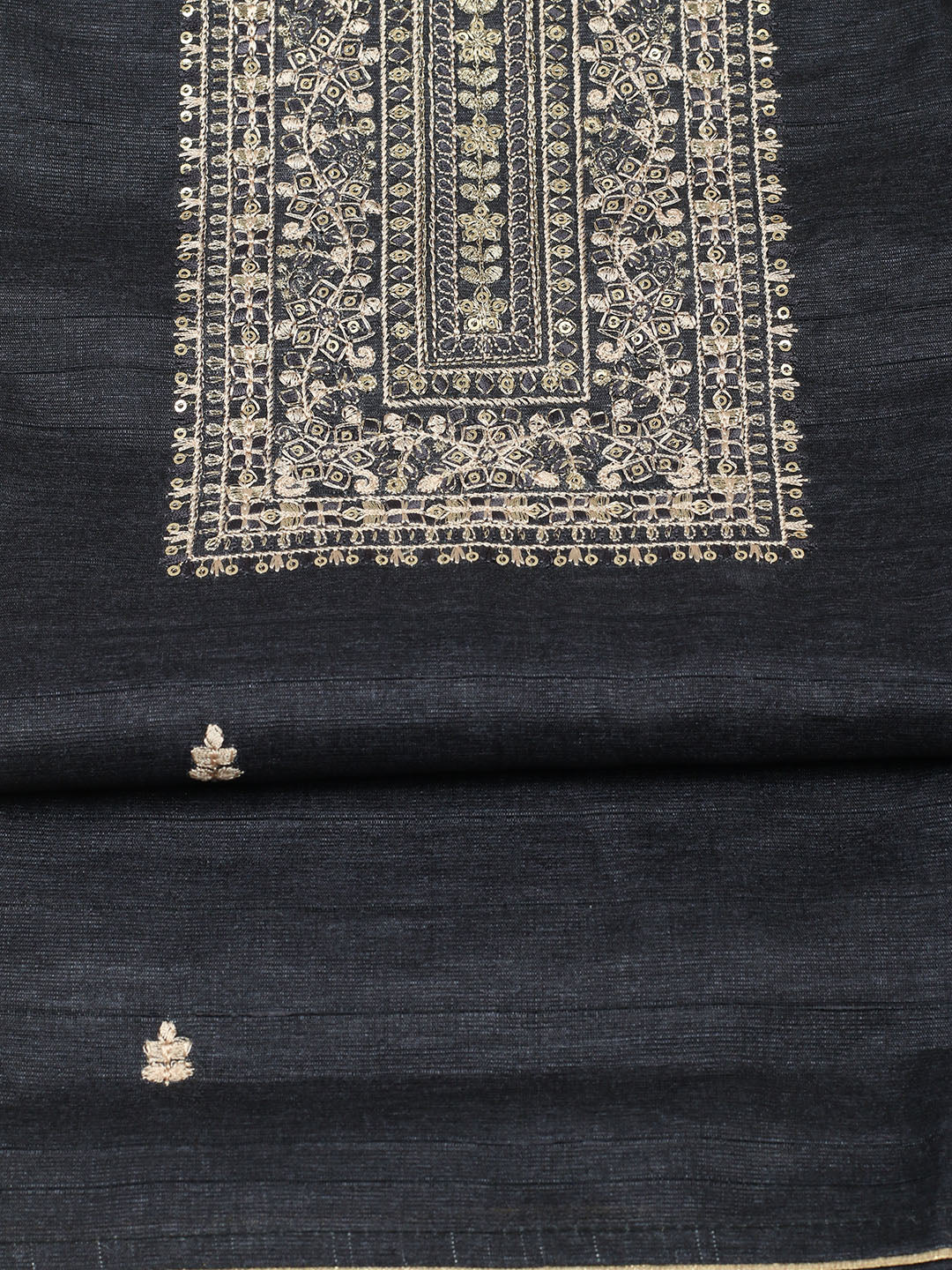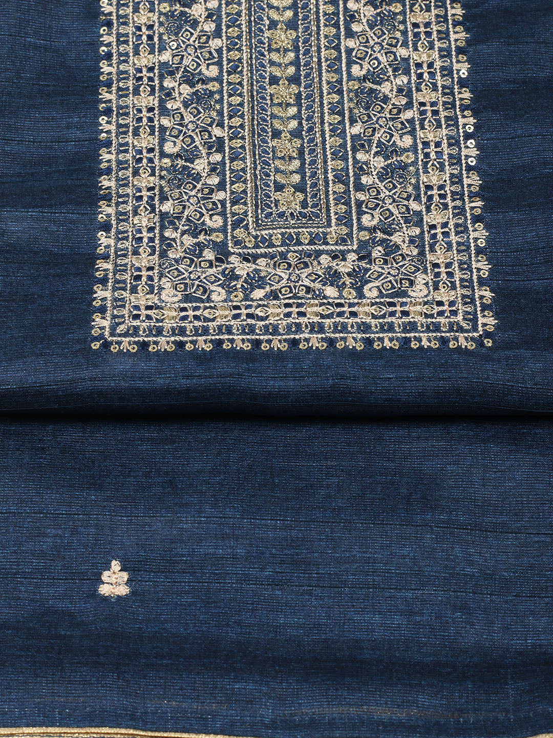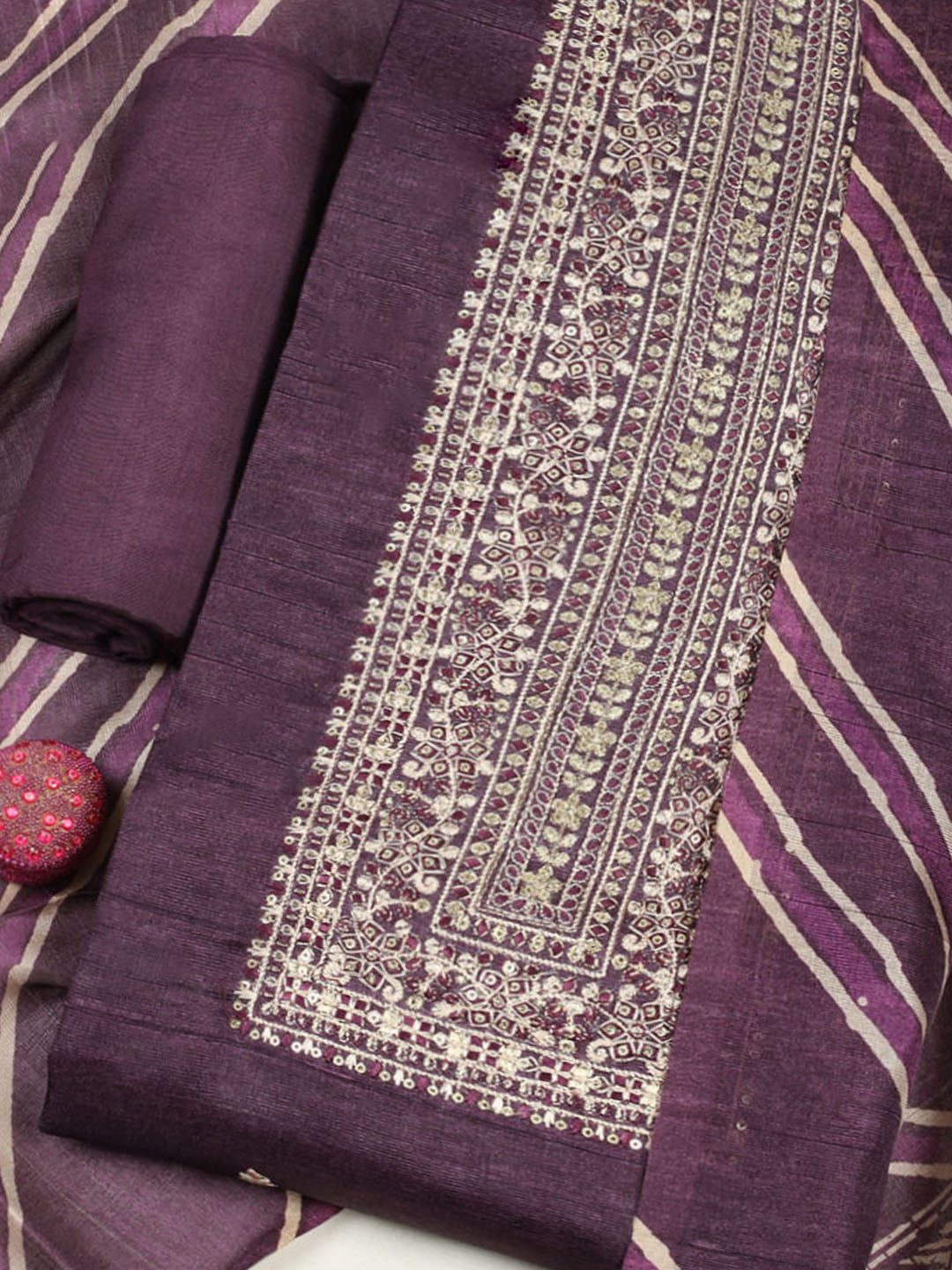 Embroidered Chanderi Unstitched Suit With Pant & Dupatta