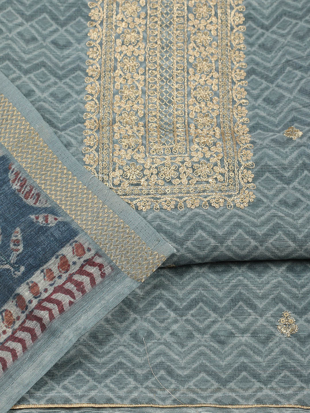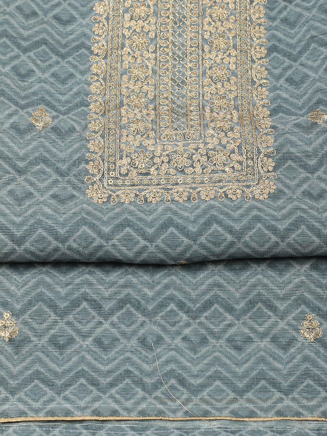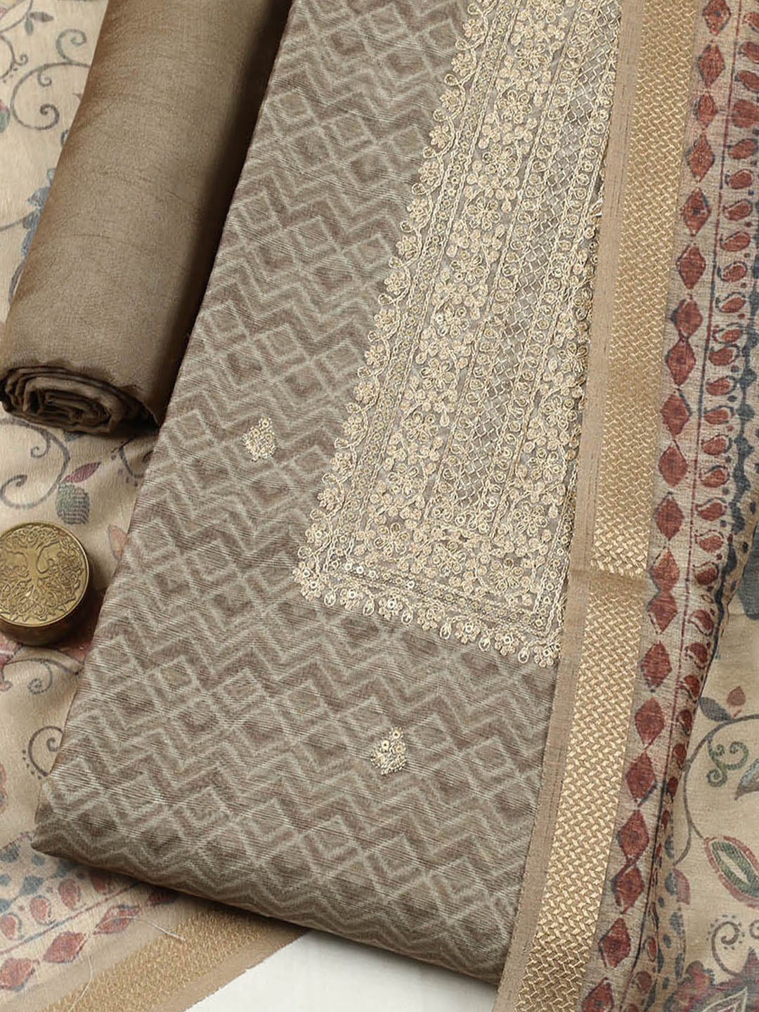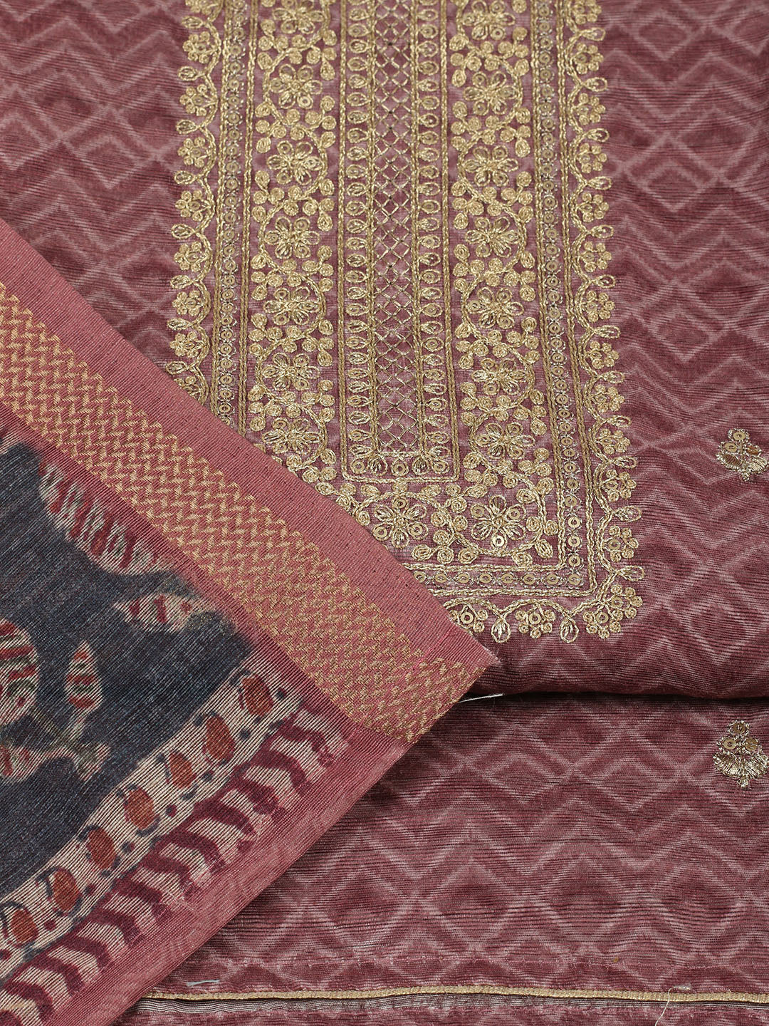 Embroidered Chanderi Unstitched Suit With Pant & Dupatta