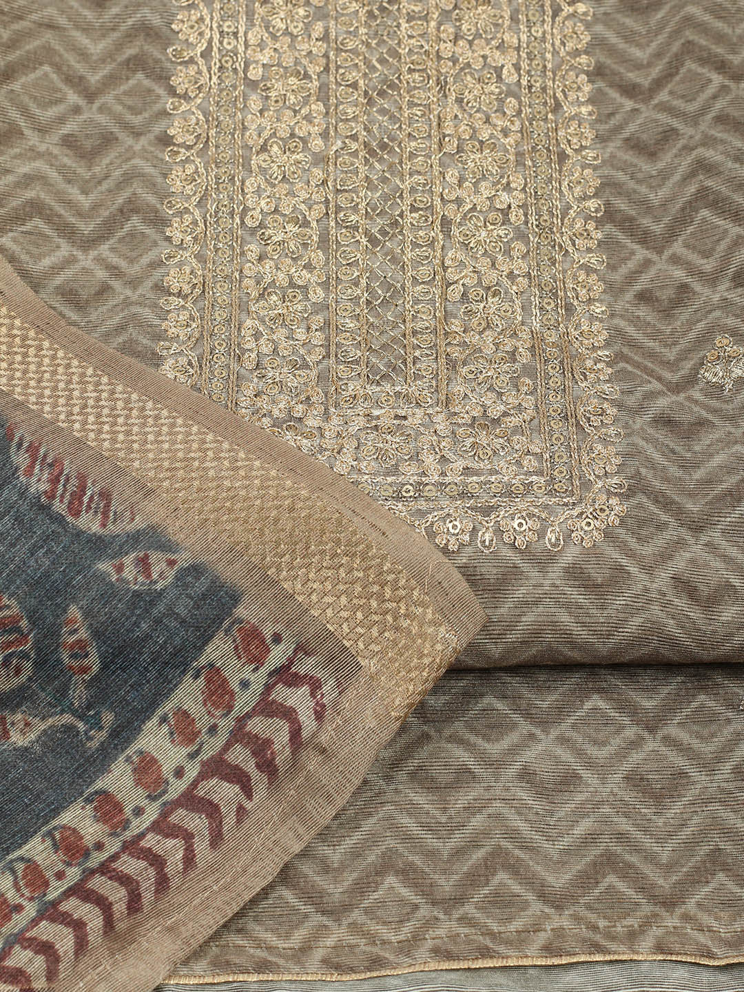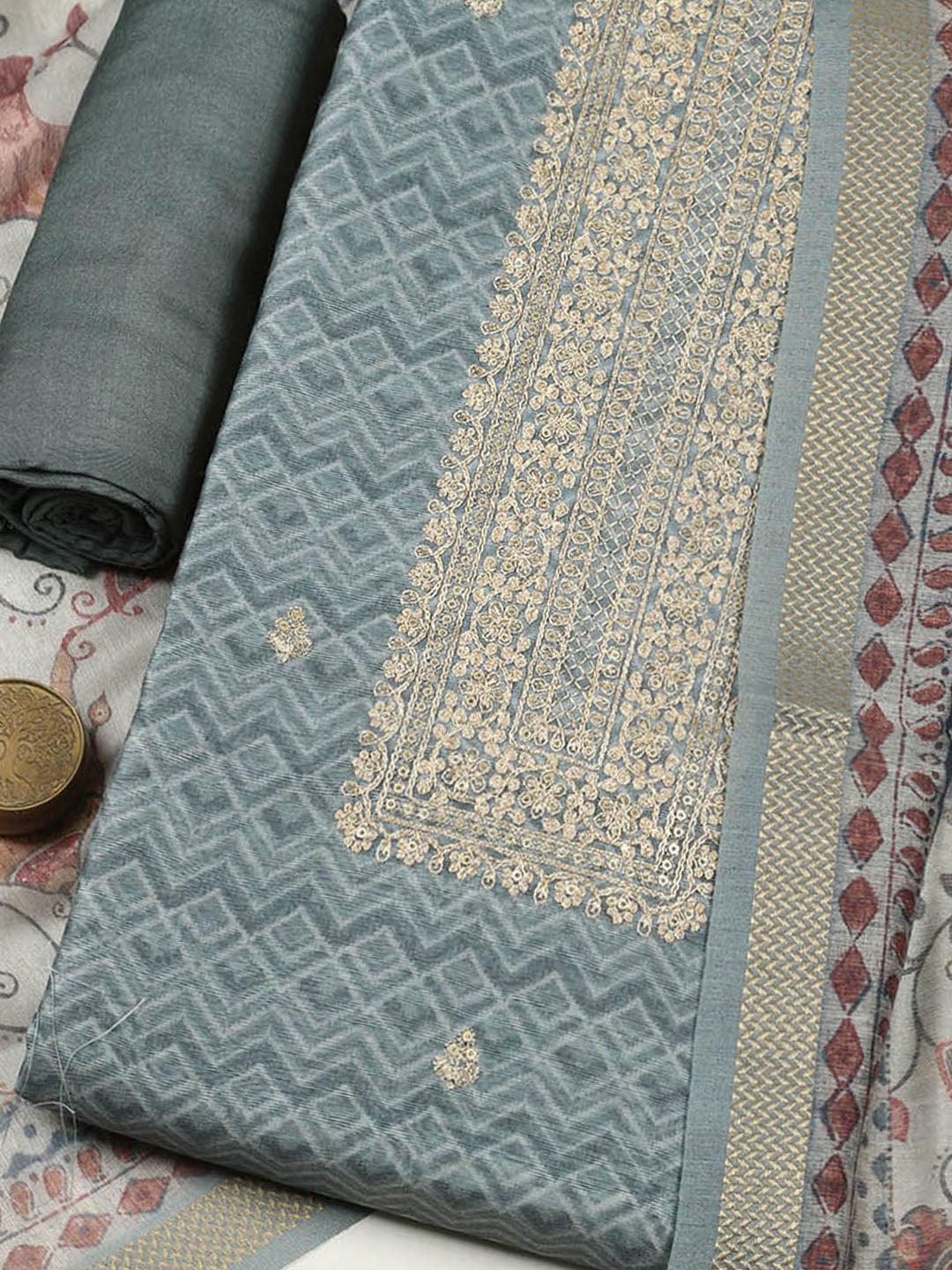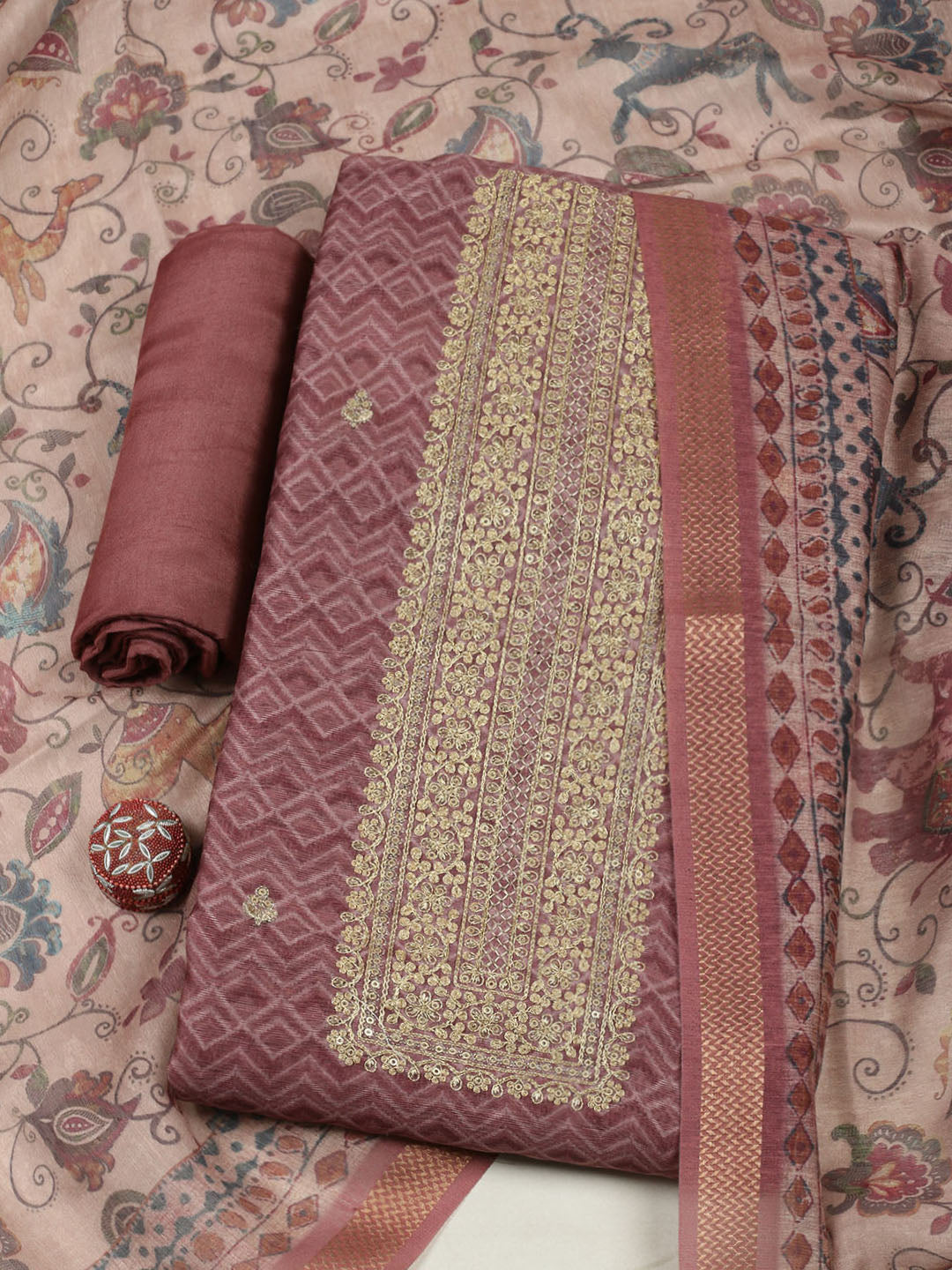 Embroidered Chanderi Unstitched Suit With Pant & Dupatta