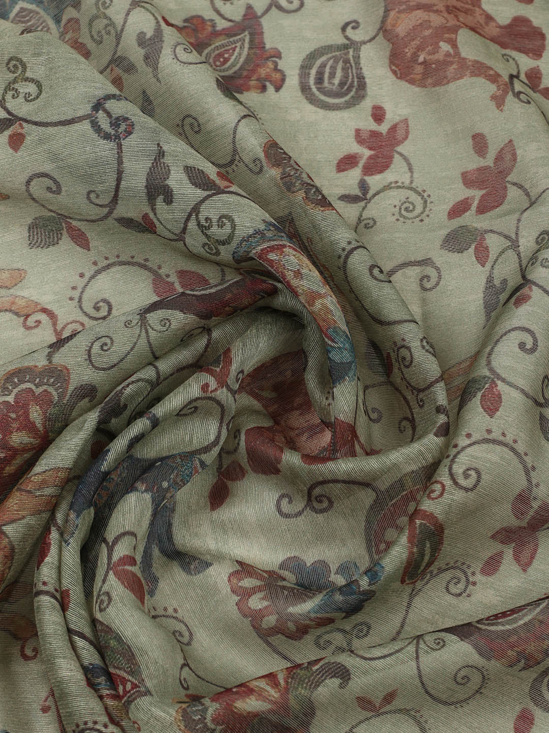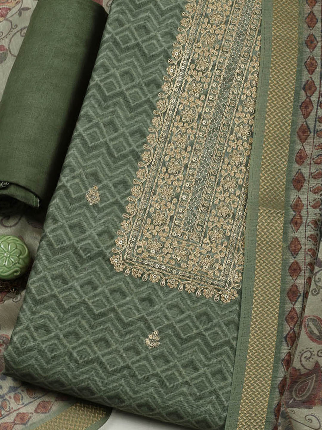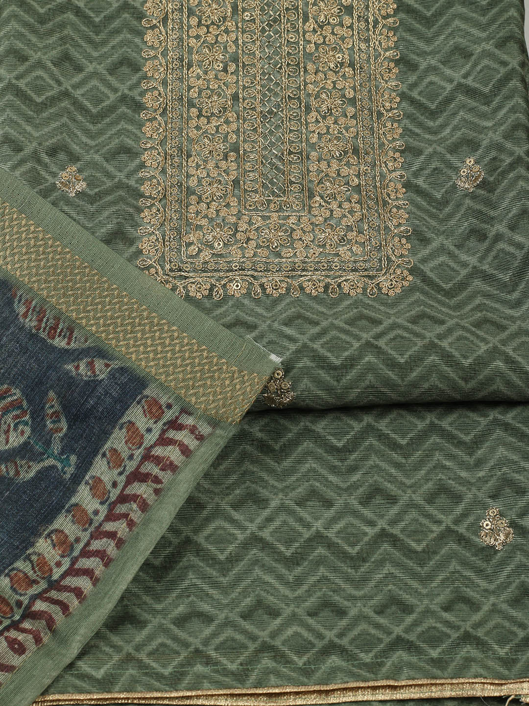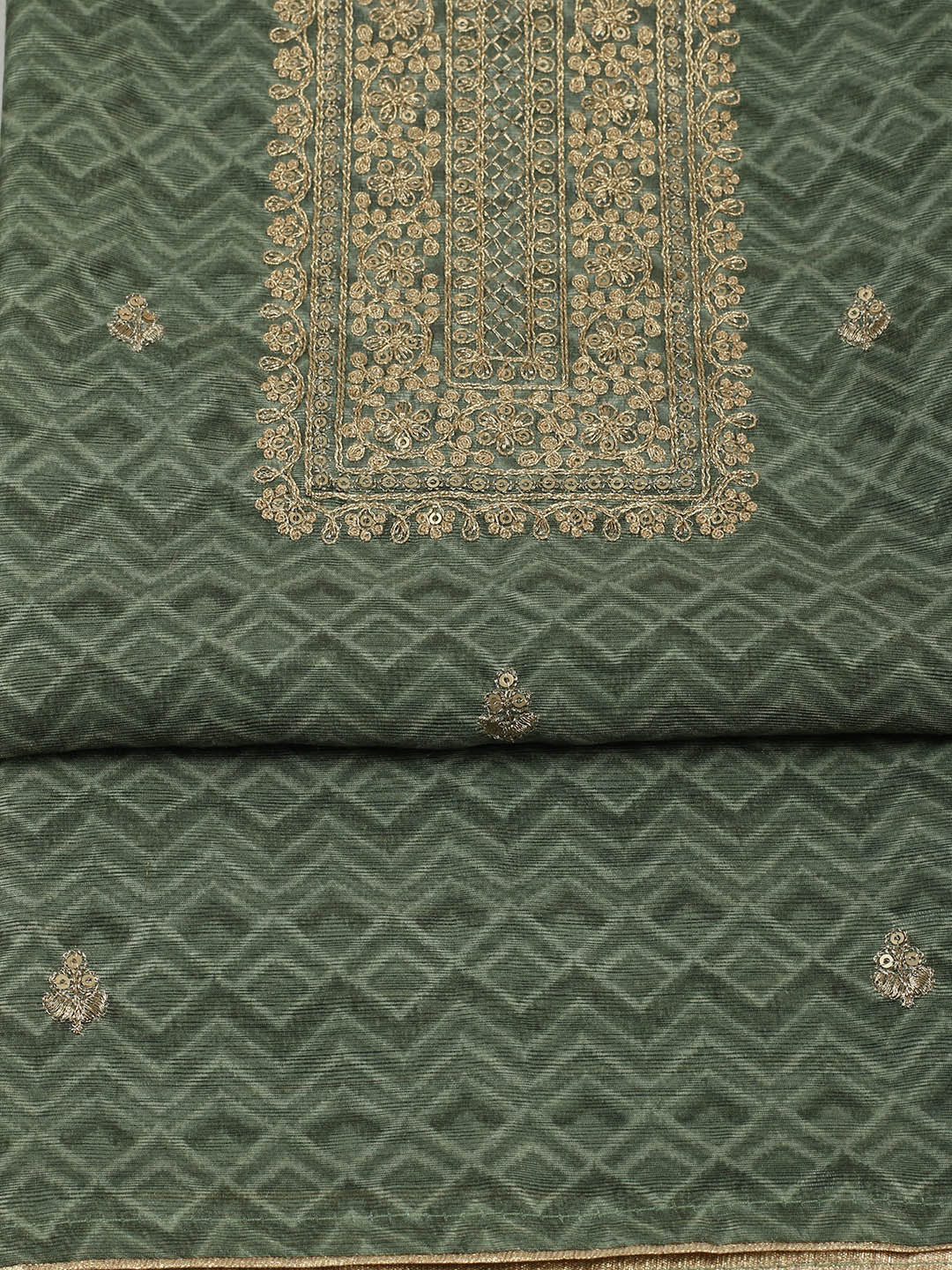 Embroidered Chanderi Unstitched Suit With Pant & Dupatta