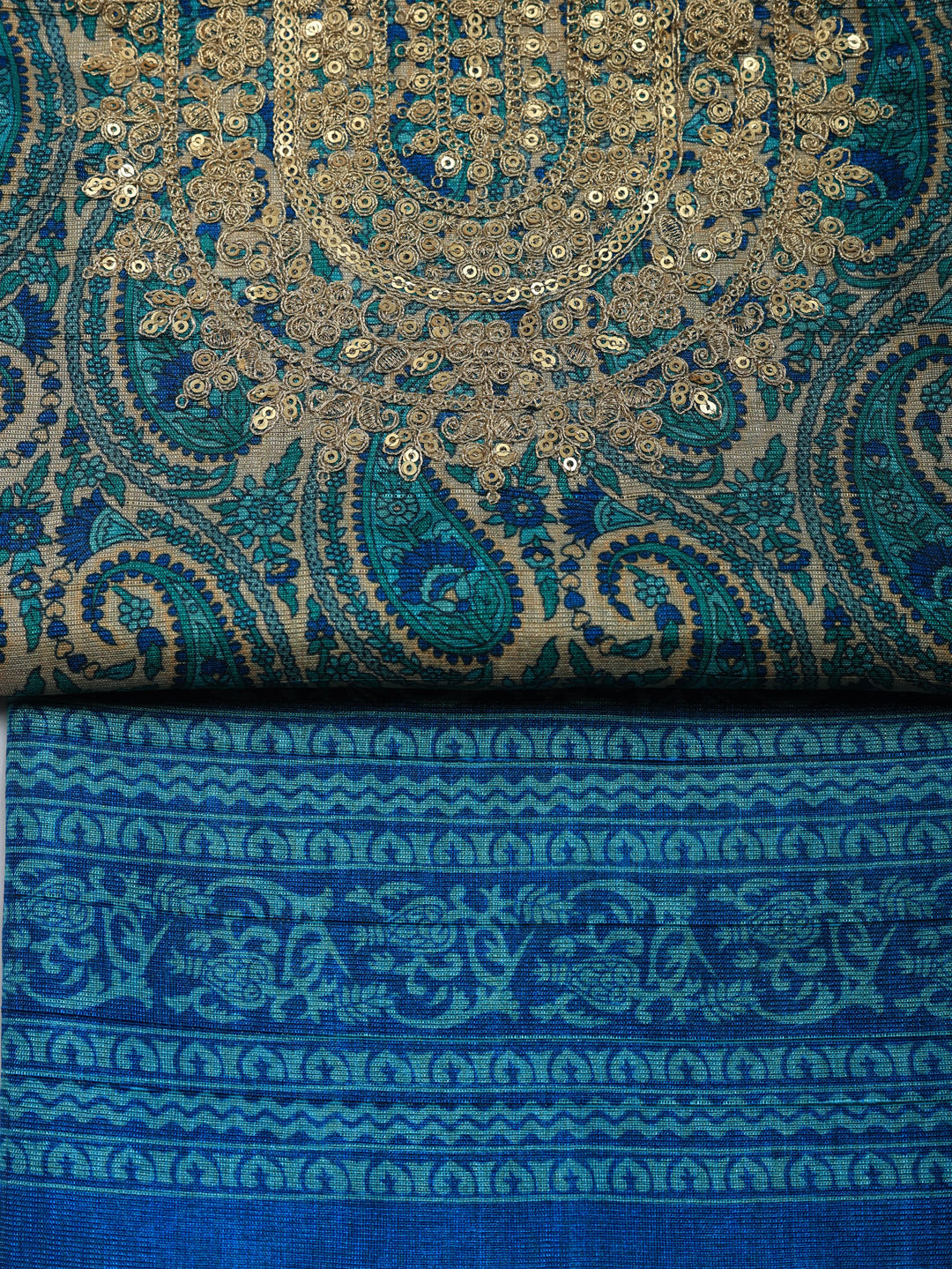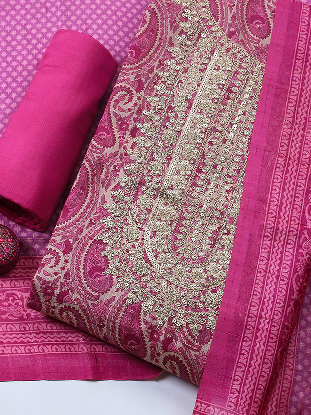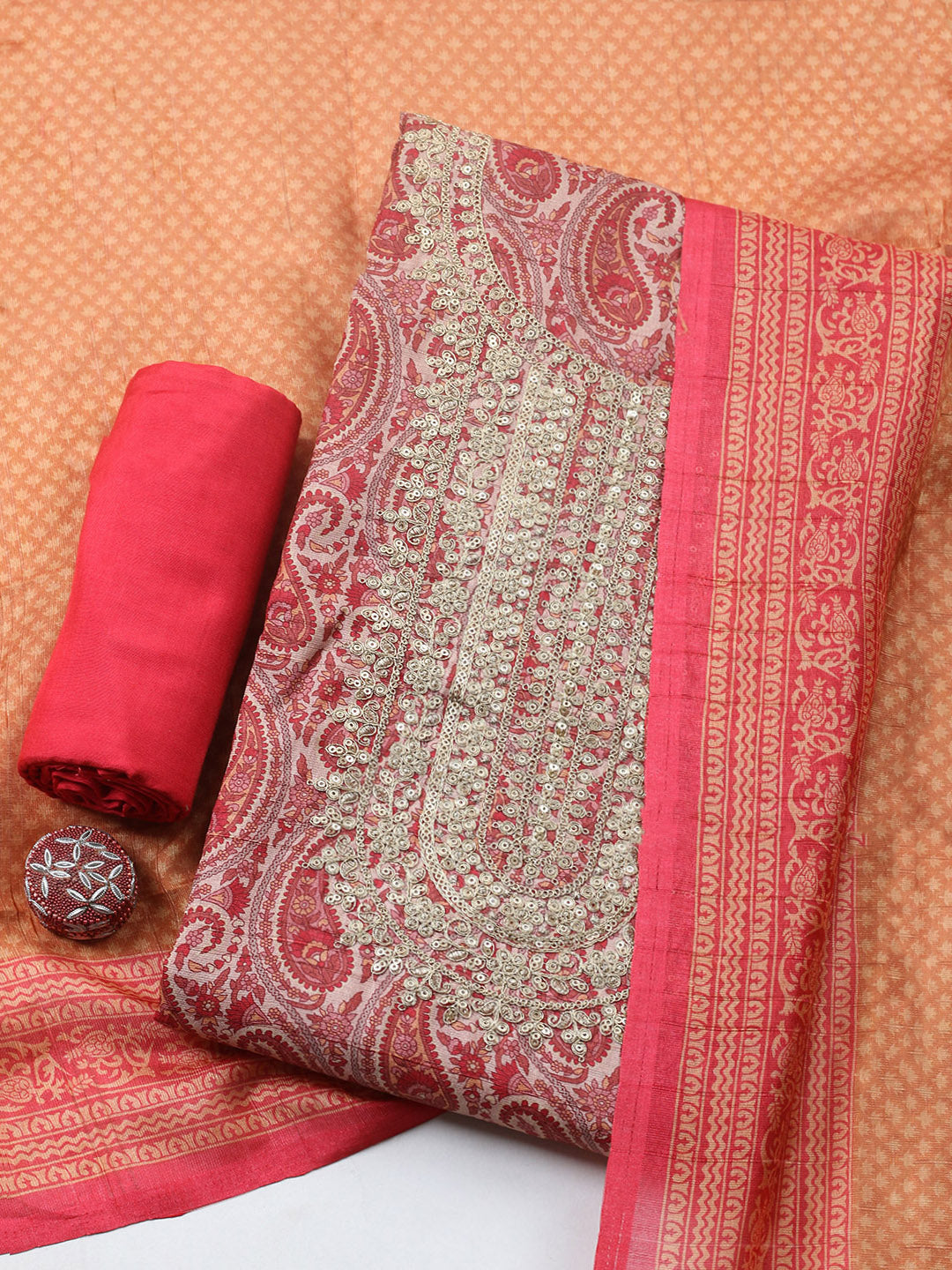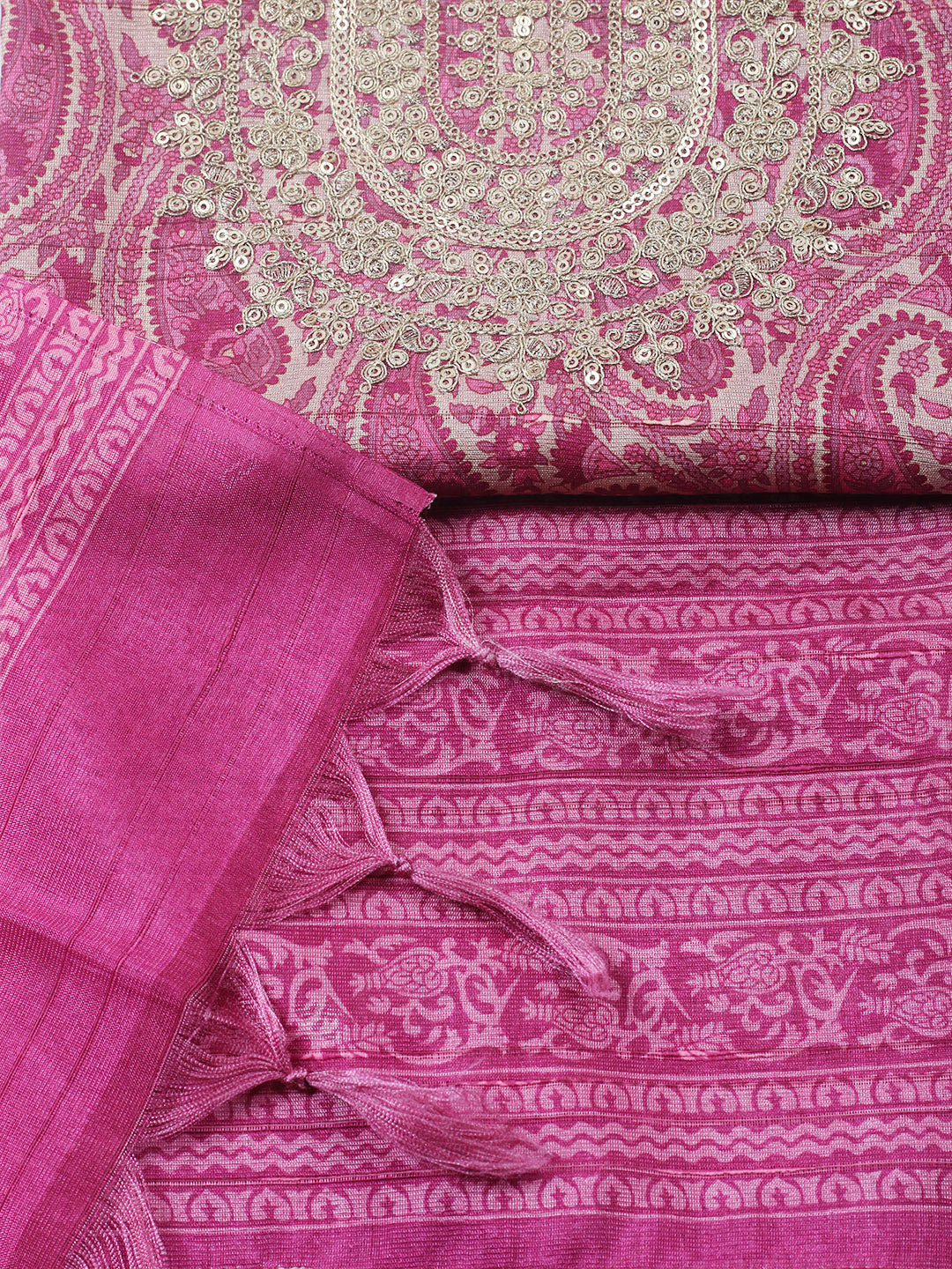 Embroidered Cotton Blend Unstitched Suit With Pant & Dupatta