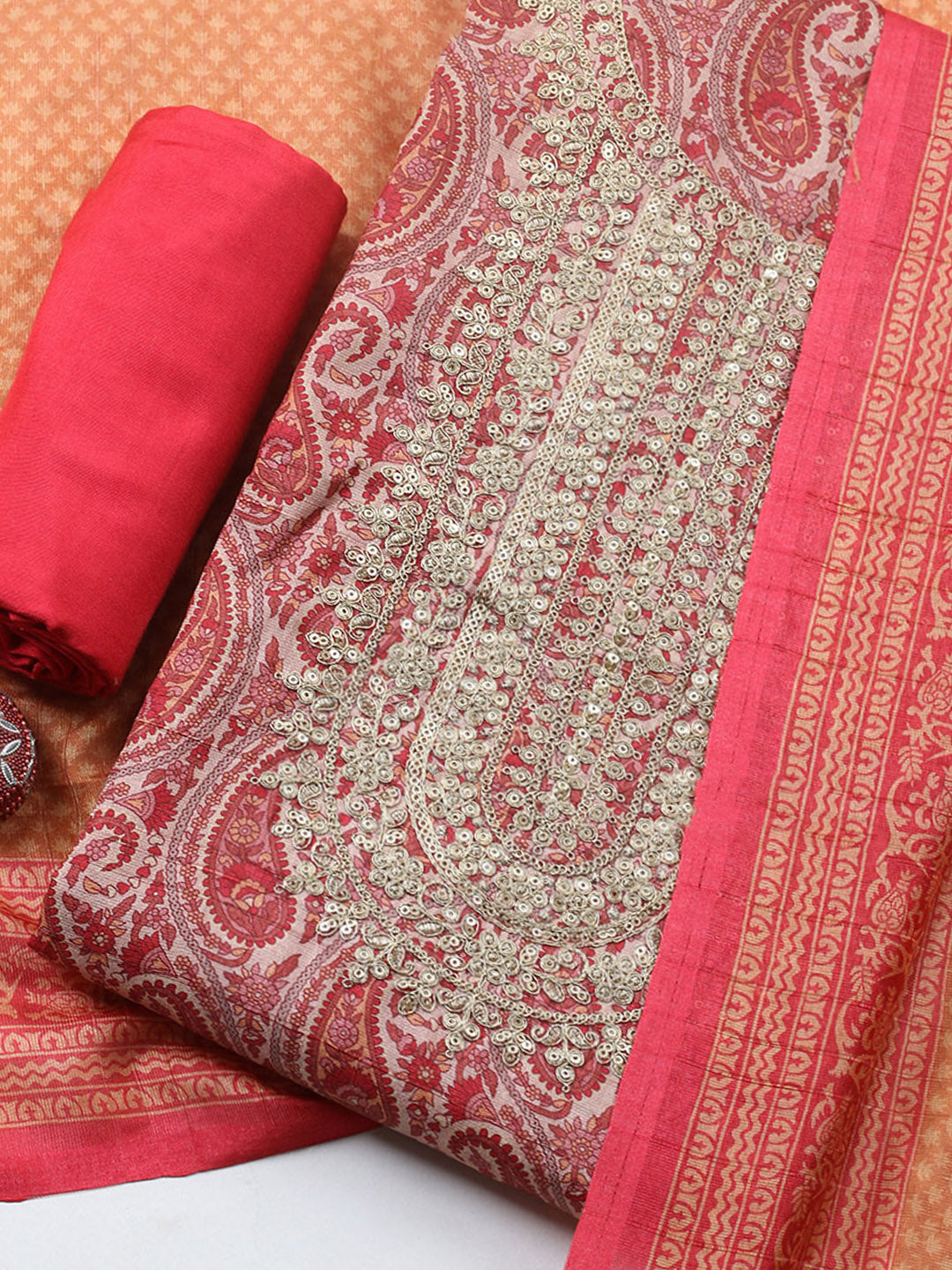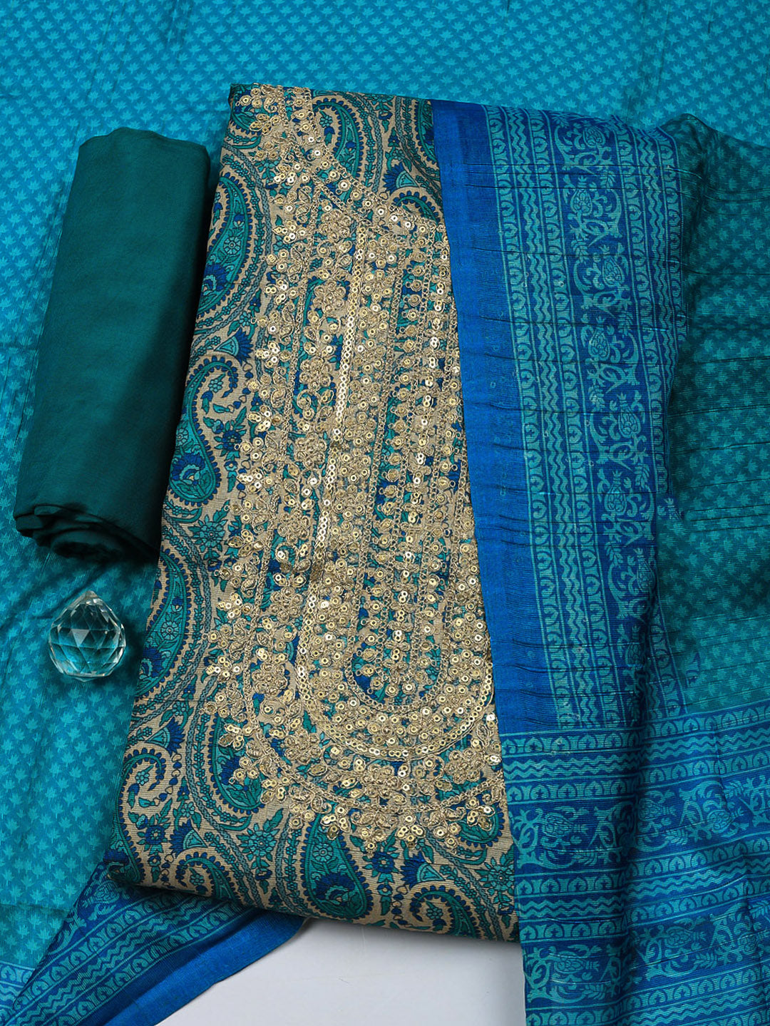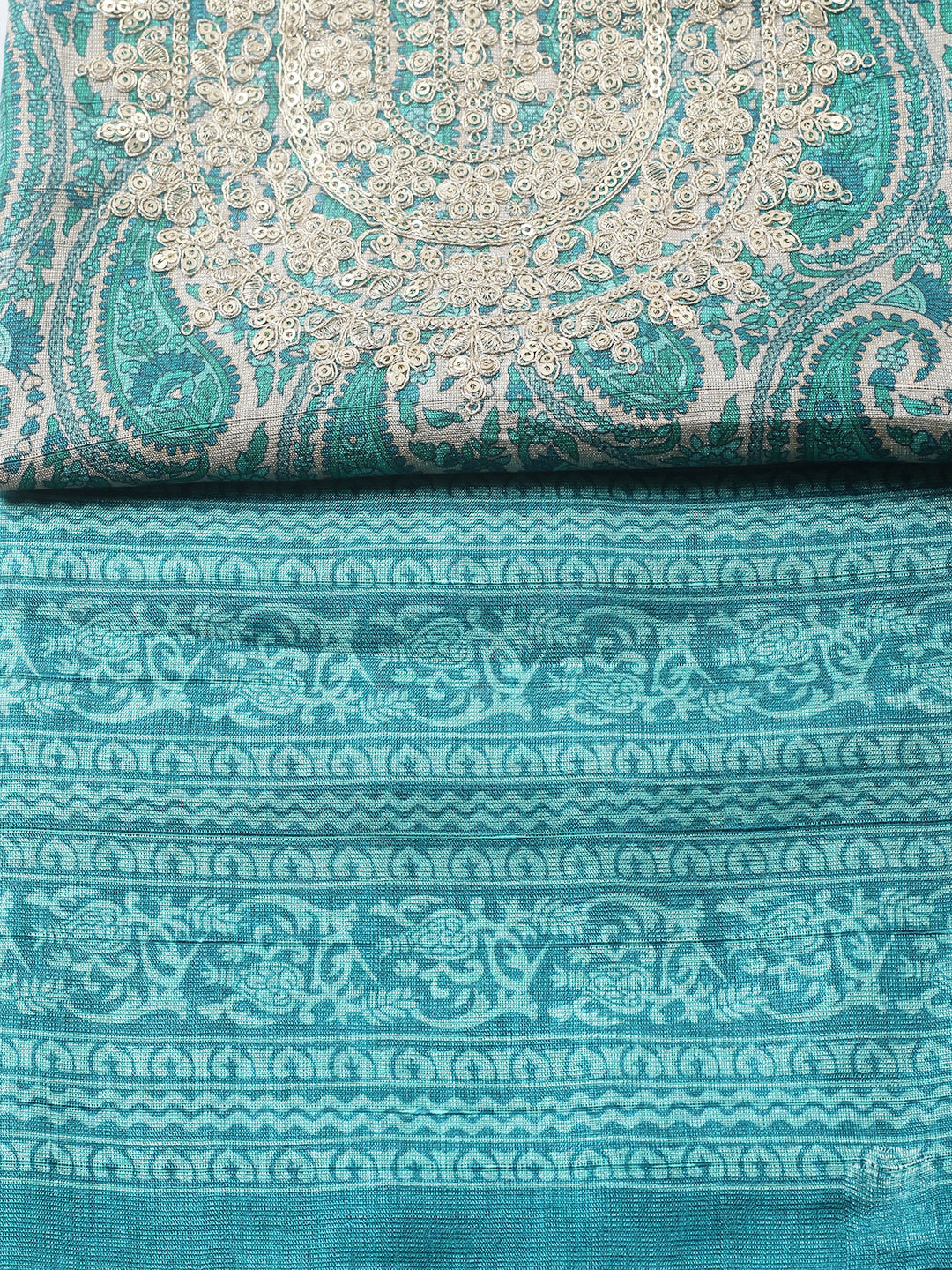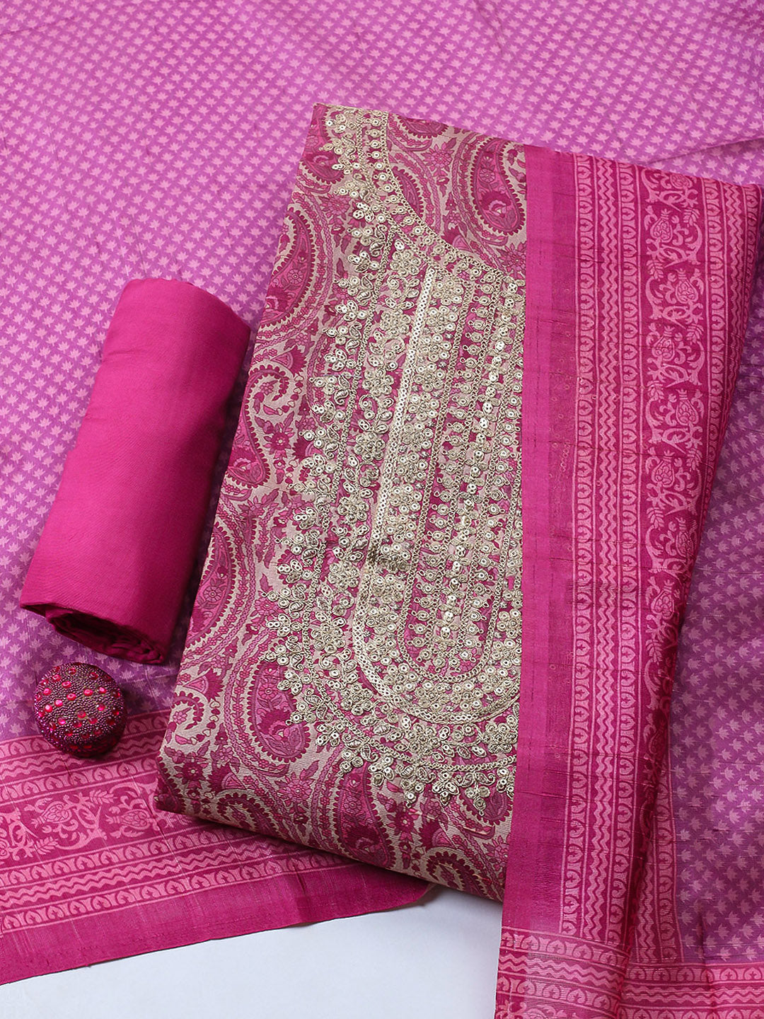 Embroidered Cotton Blend Unstitched Suit With Pant & Dupatta