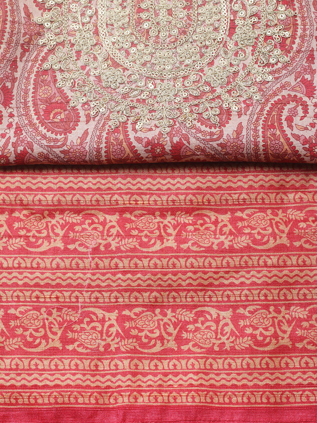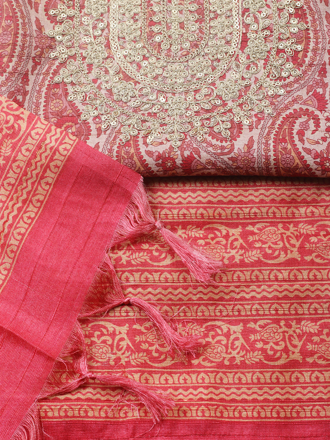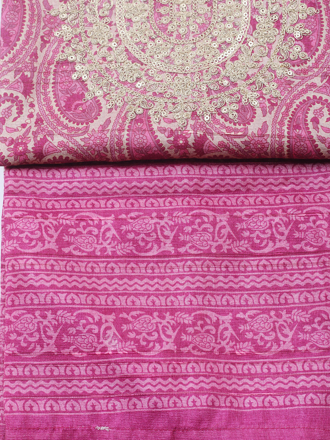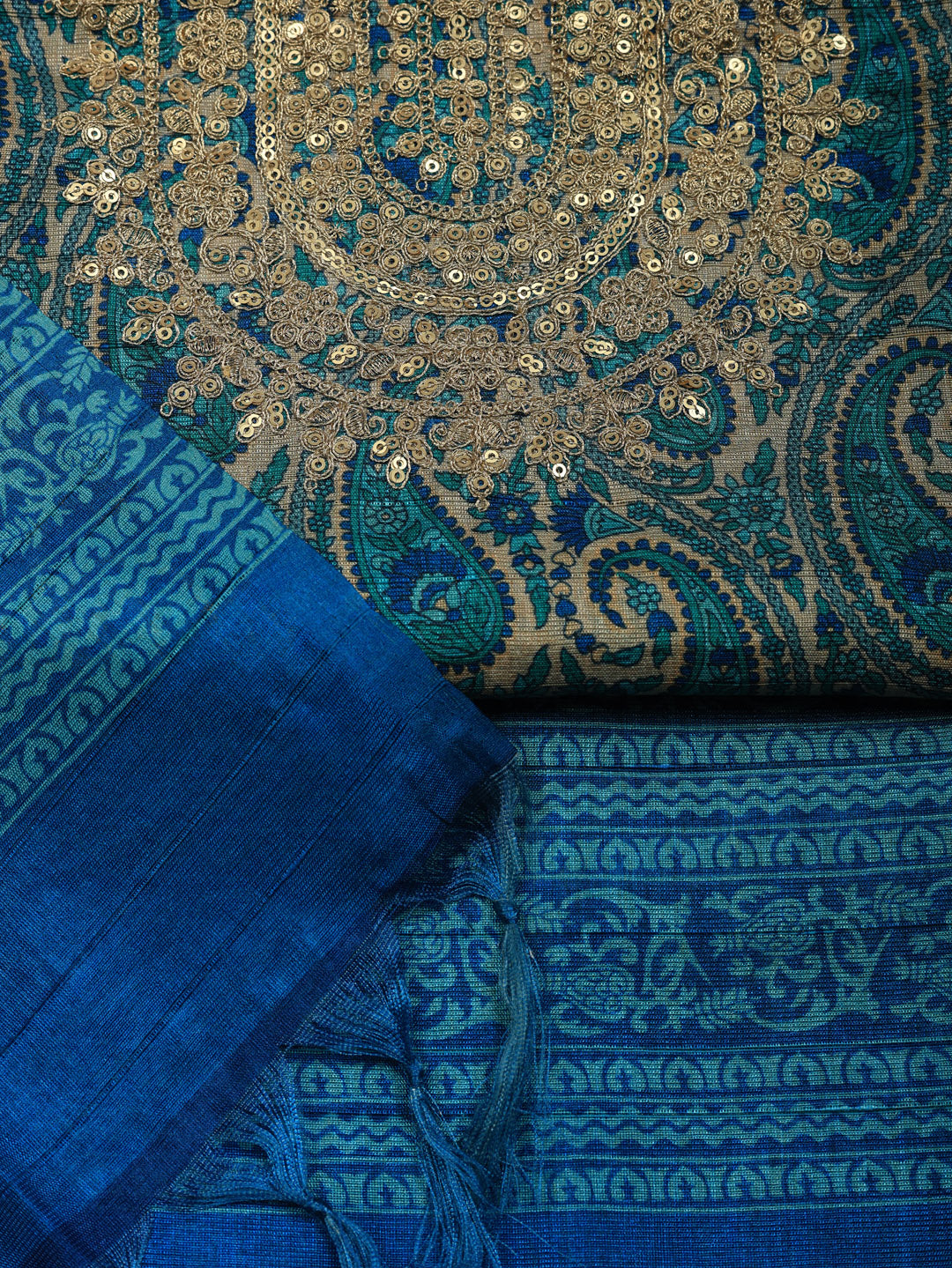 Embroidered Cotton Blend Unstitched Suit With Pant & Dupatta