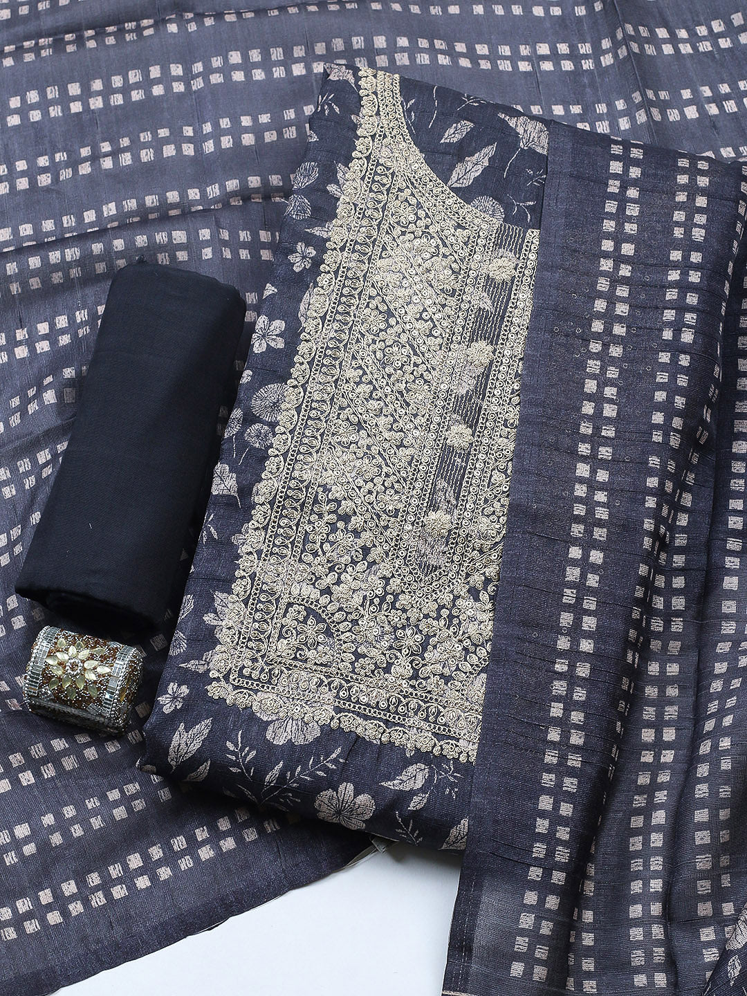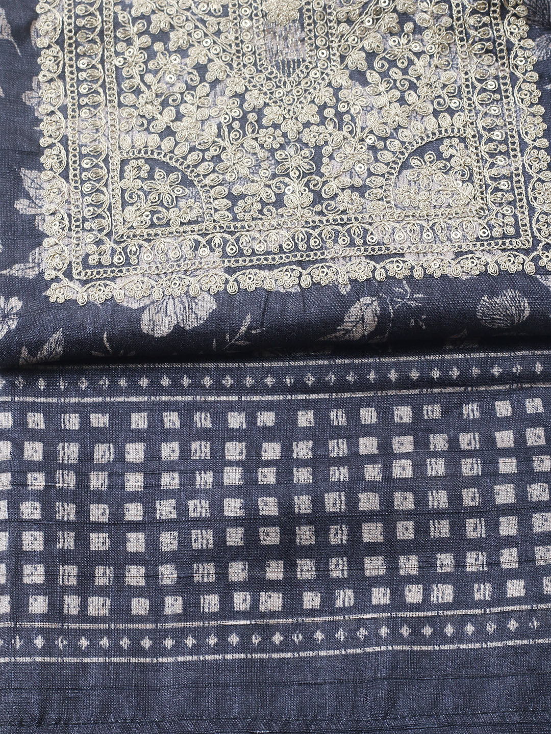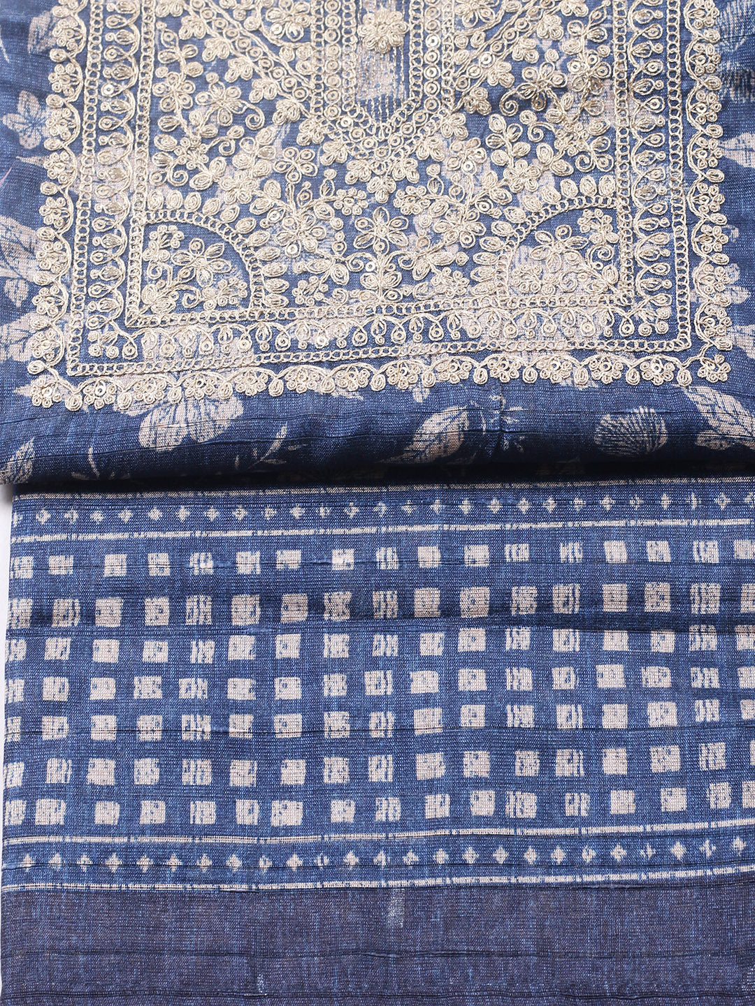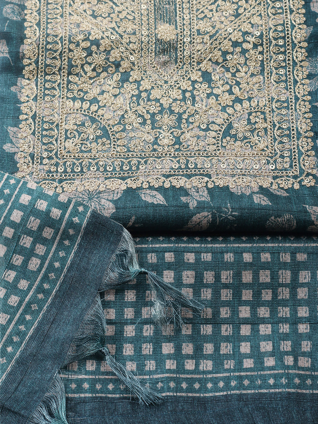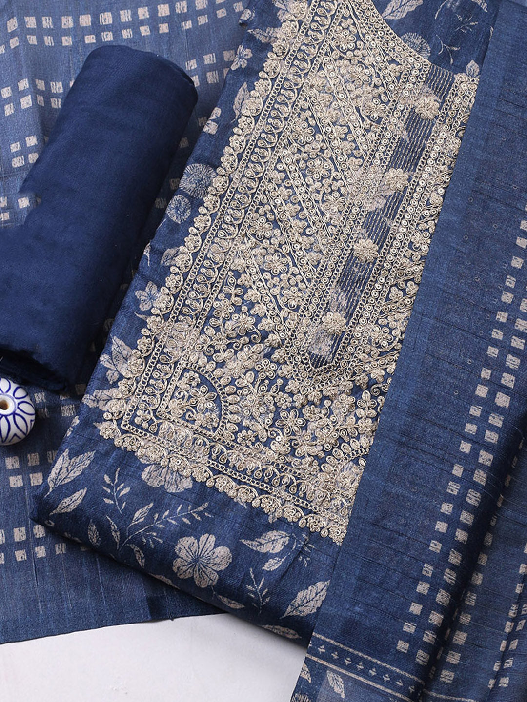 Embroidered Cotton Blend Unstitched Suit With Pant & Dupatta