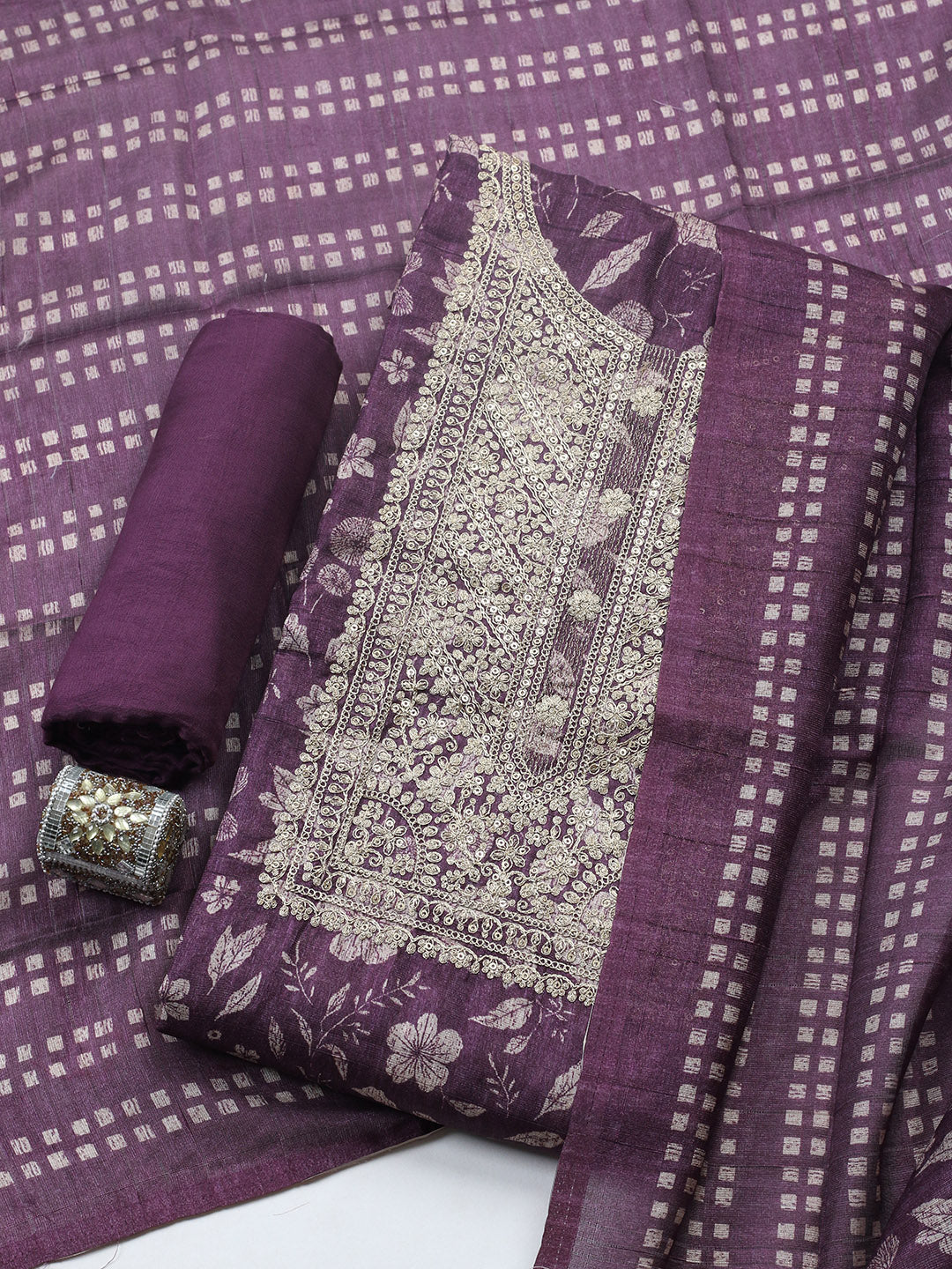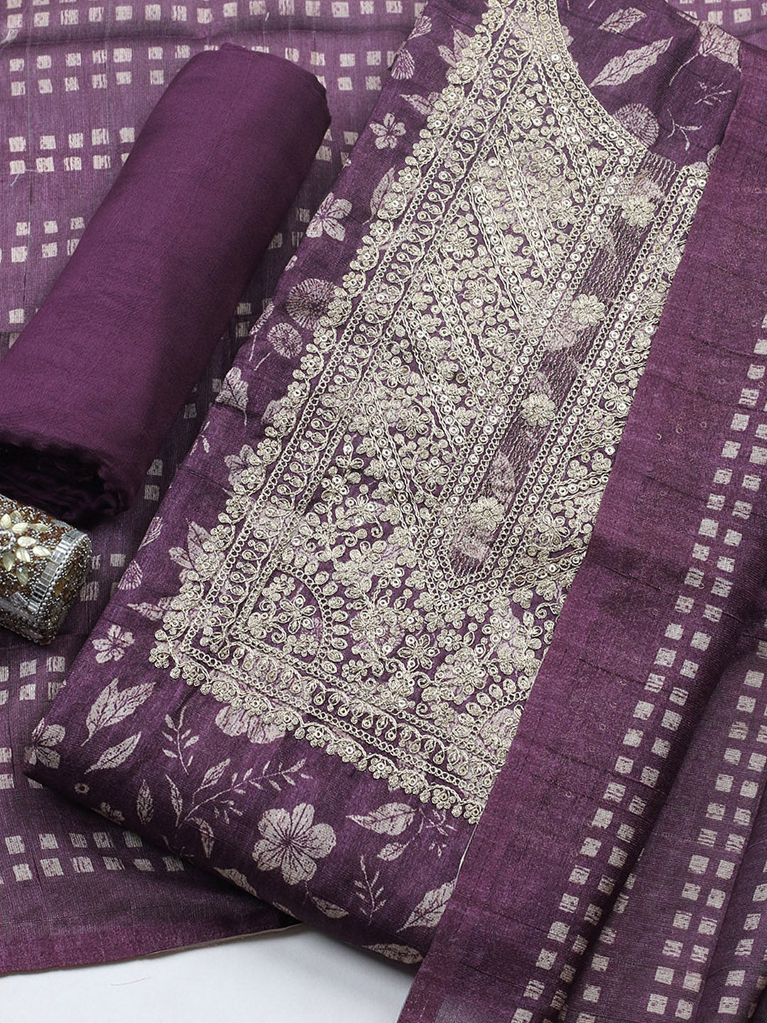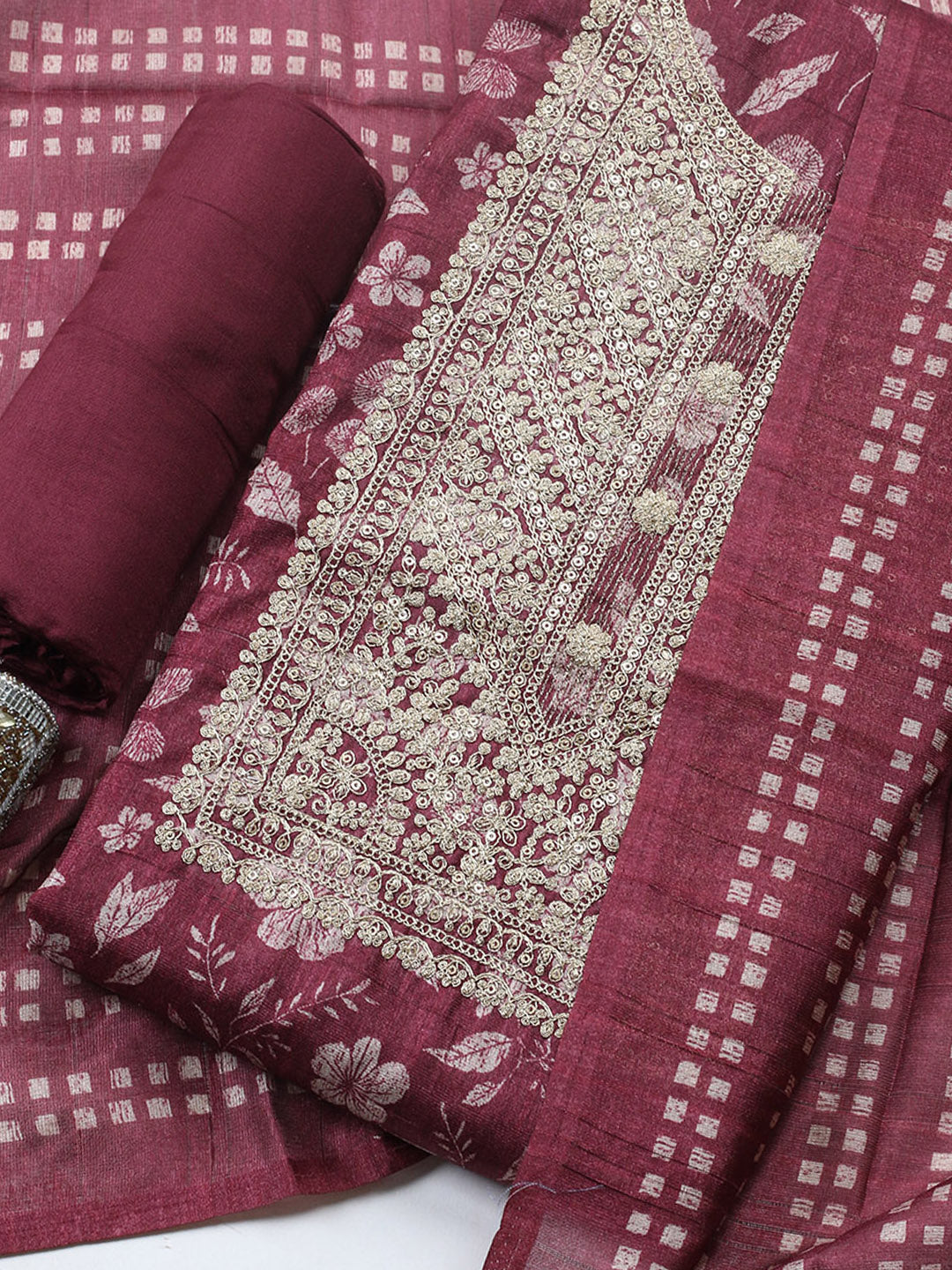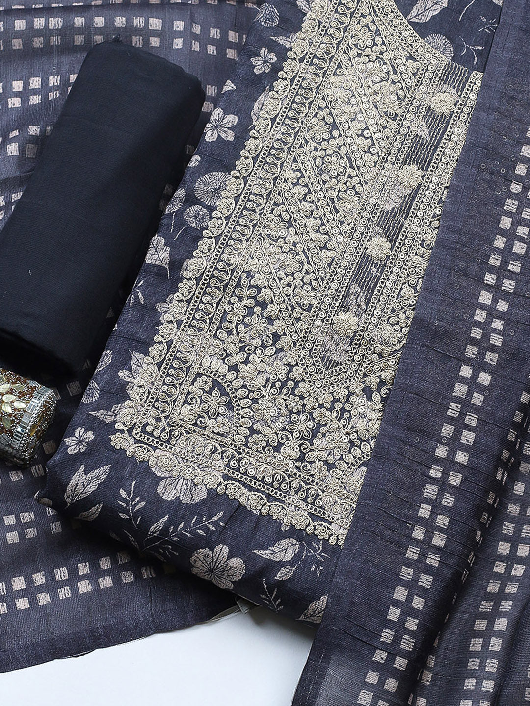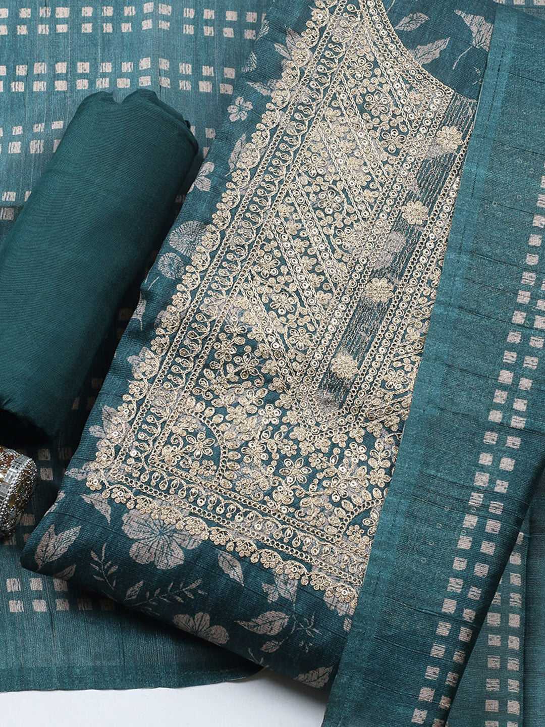 Embroidered Cotton Blend Unstitched Suit With Pant & Dupatta