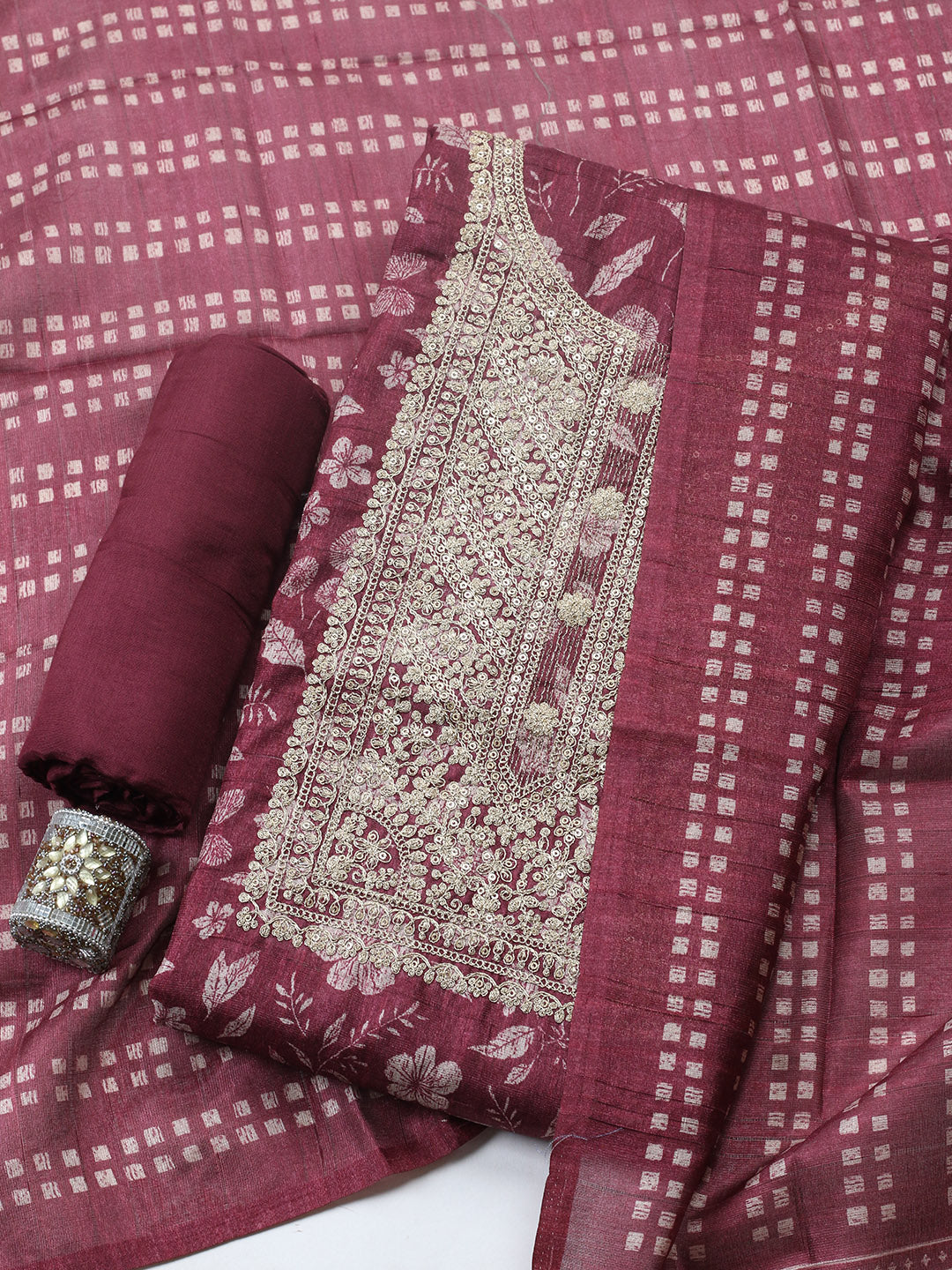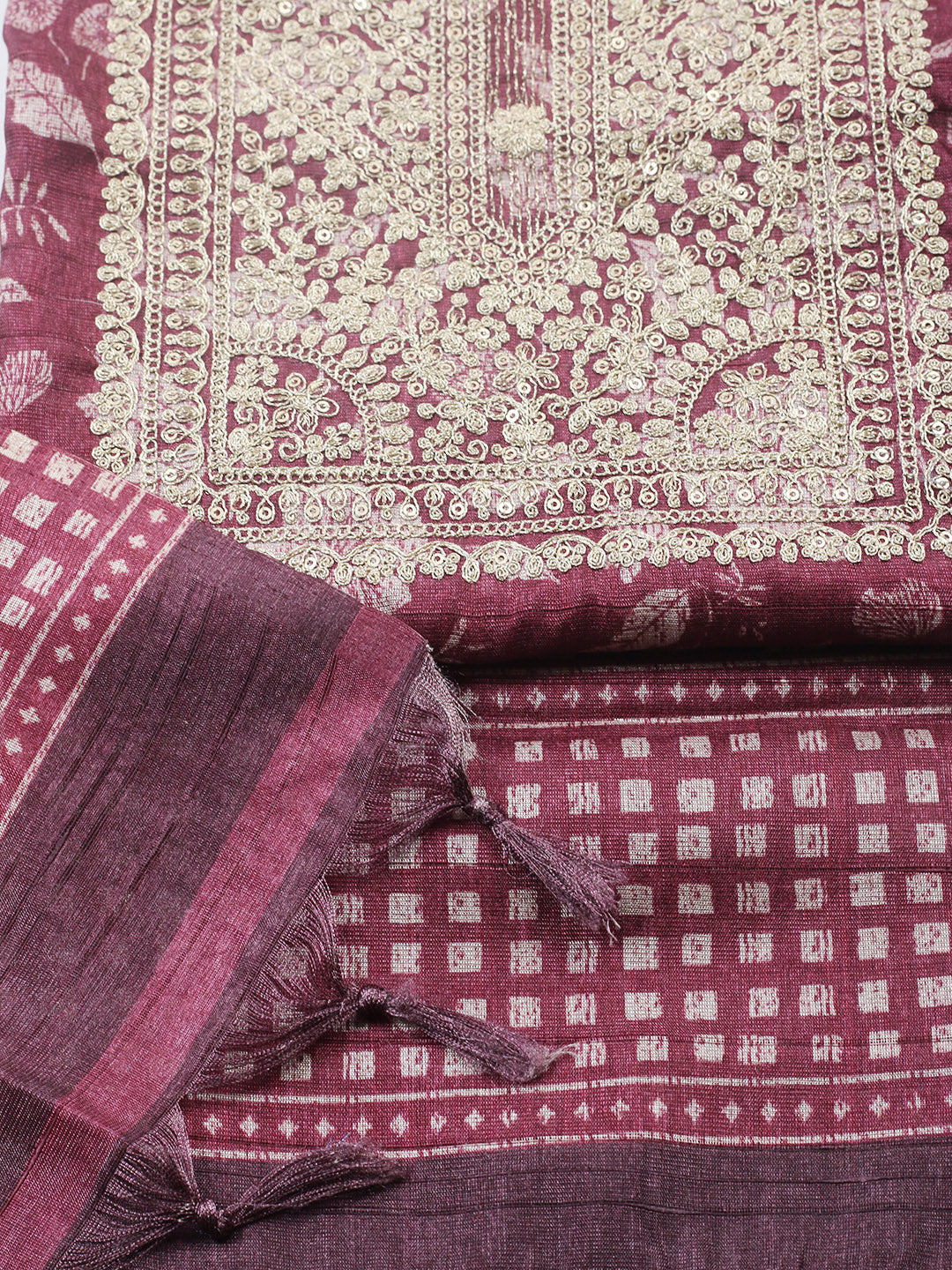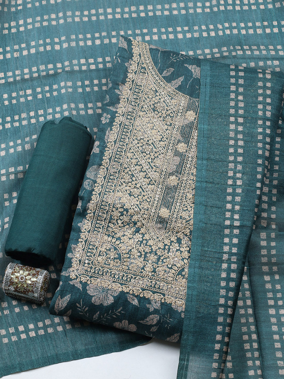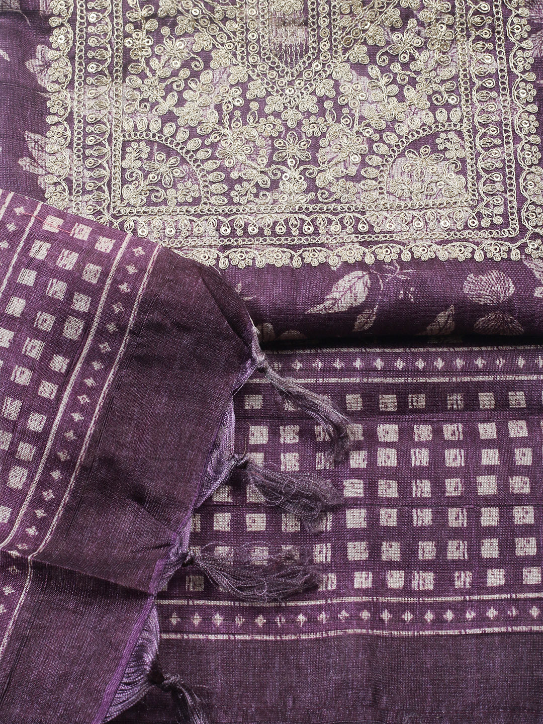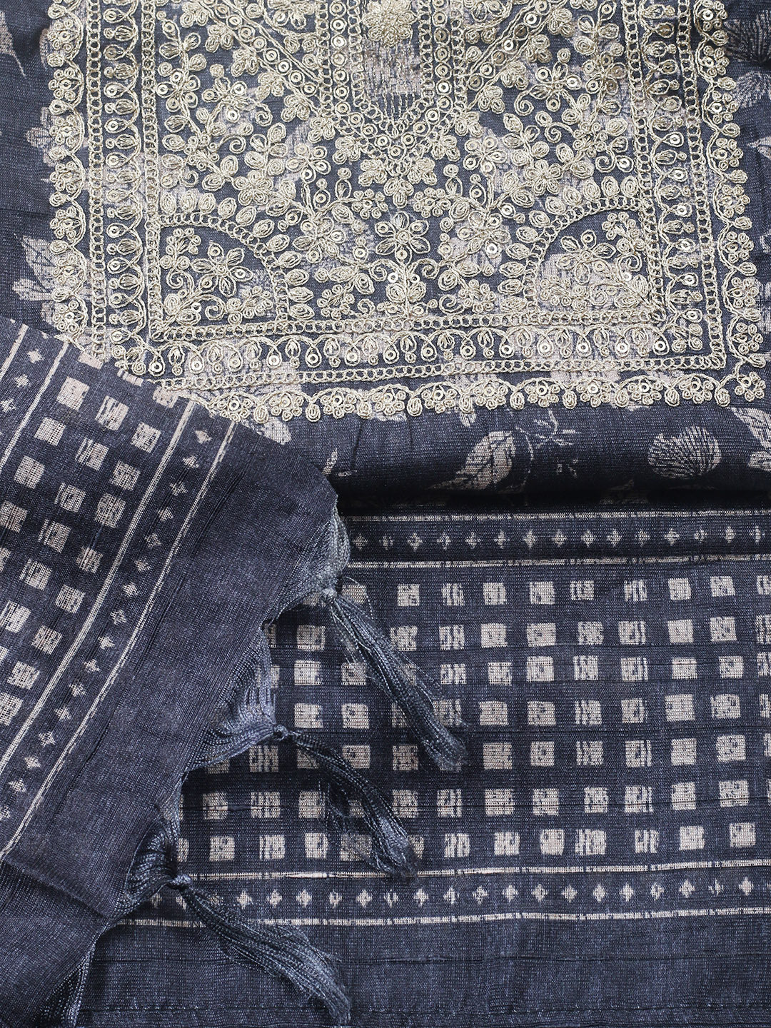 Embroidered Cotton Blend Unstitched Suit With Pant & Dupatta