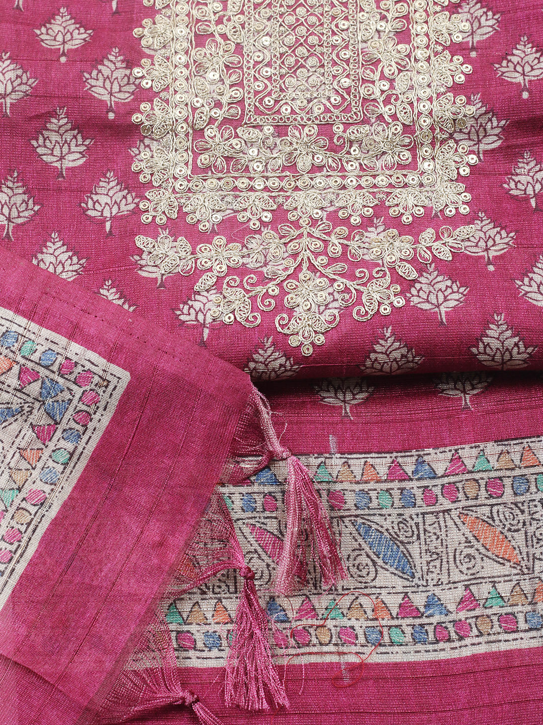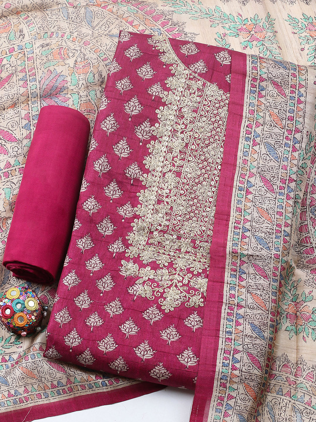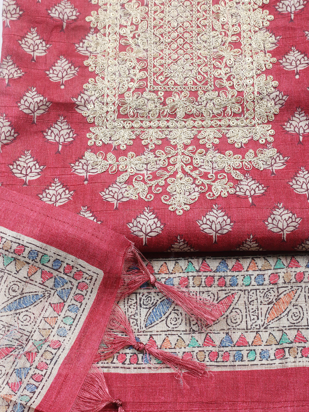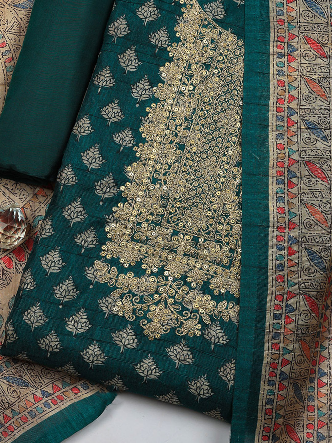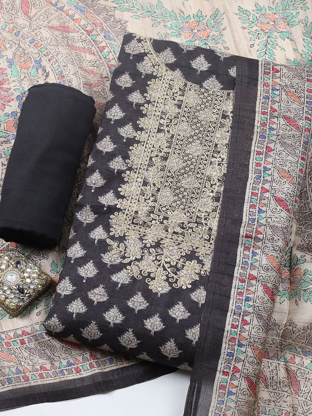 Embroidered Cotton Blend Unstitched Suit With Pant & Dupatta