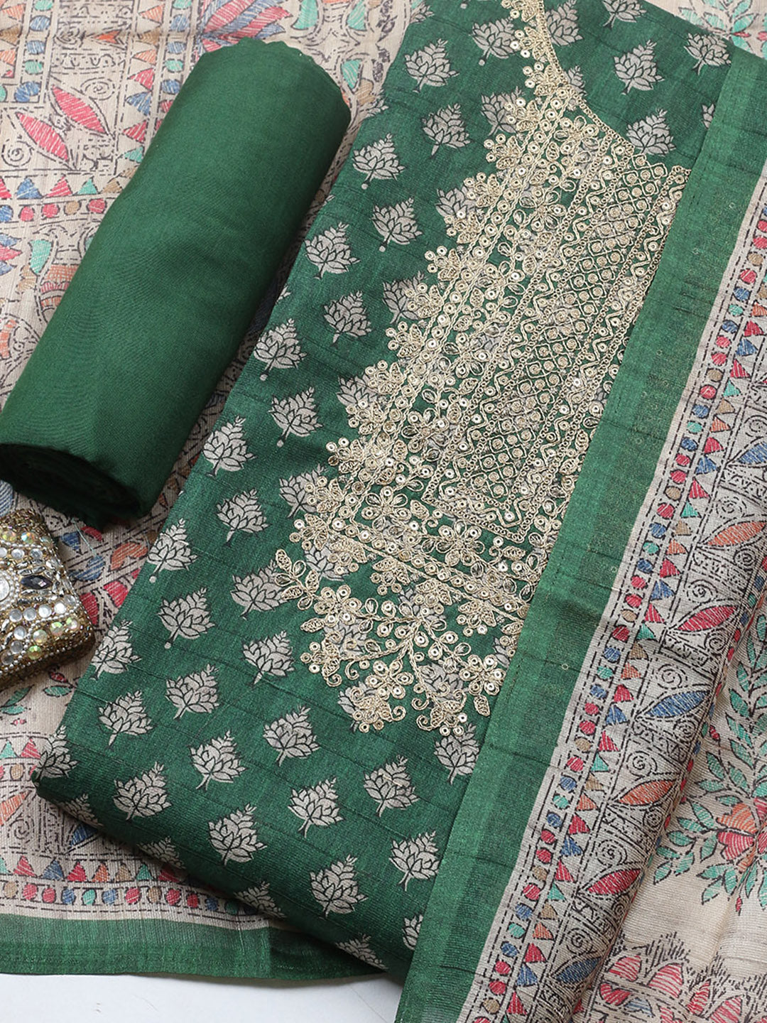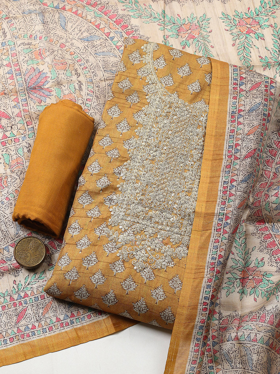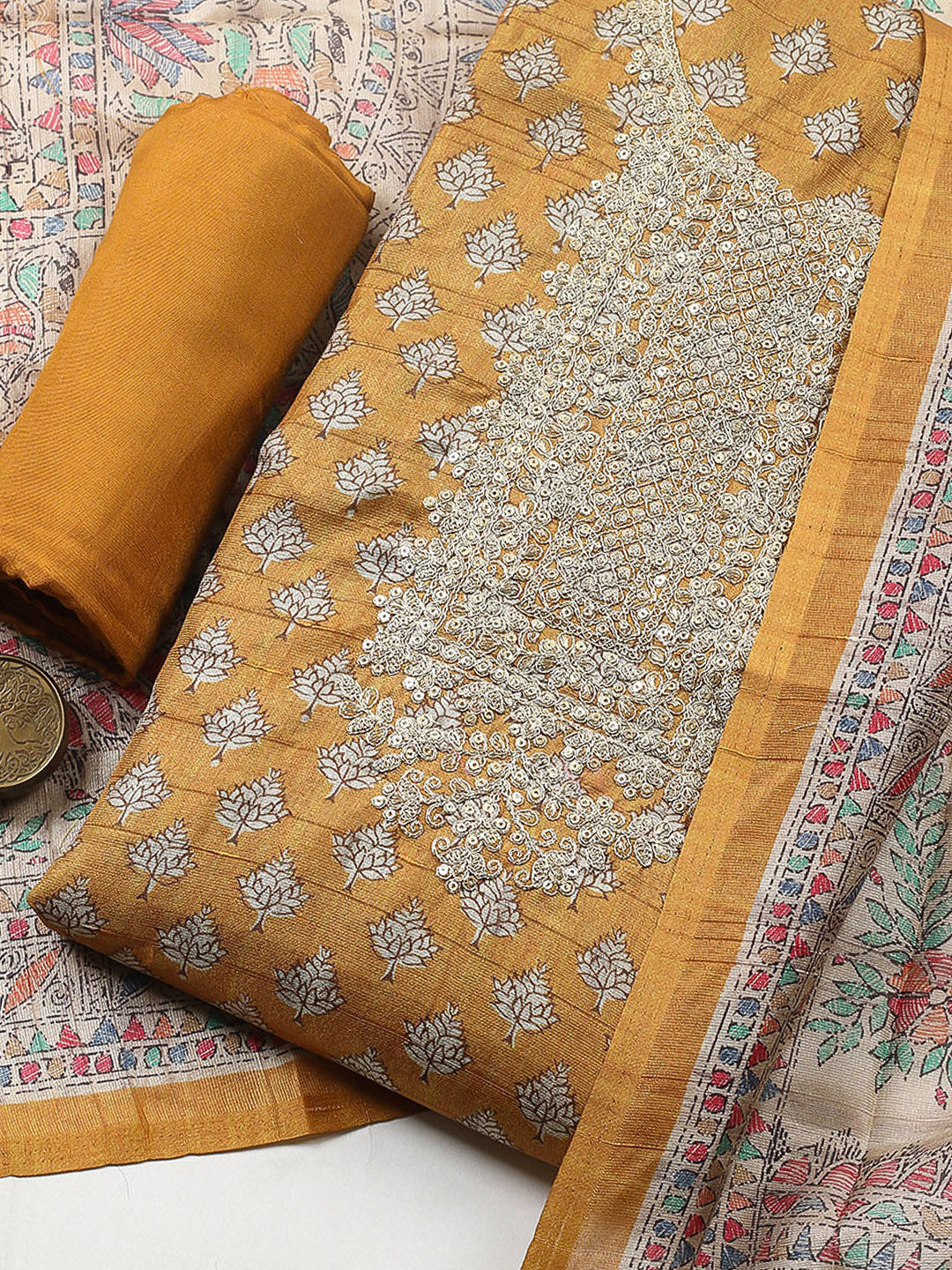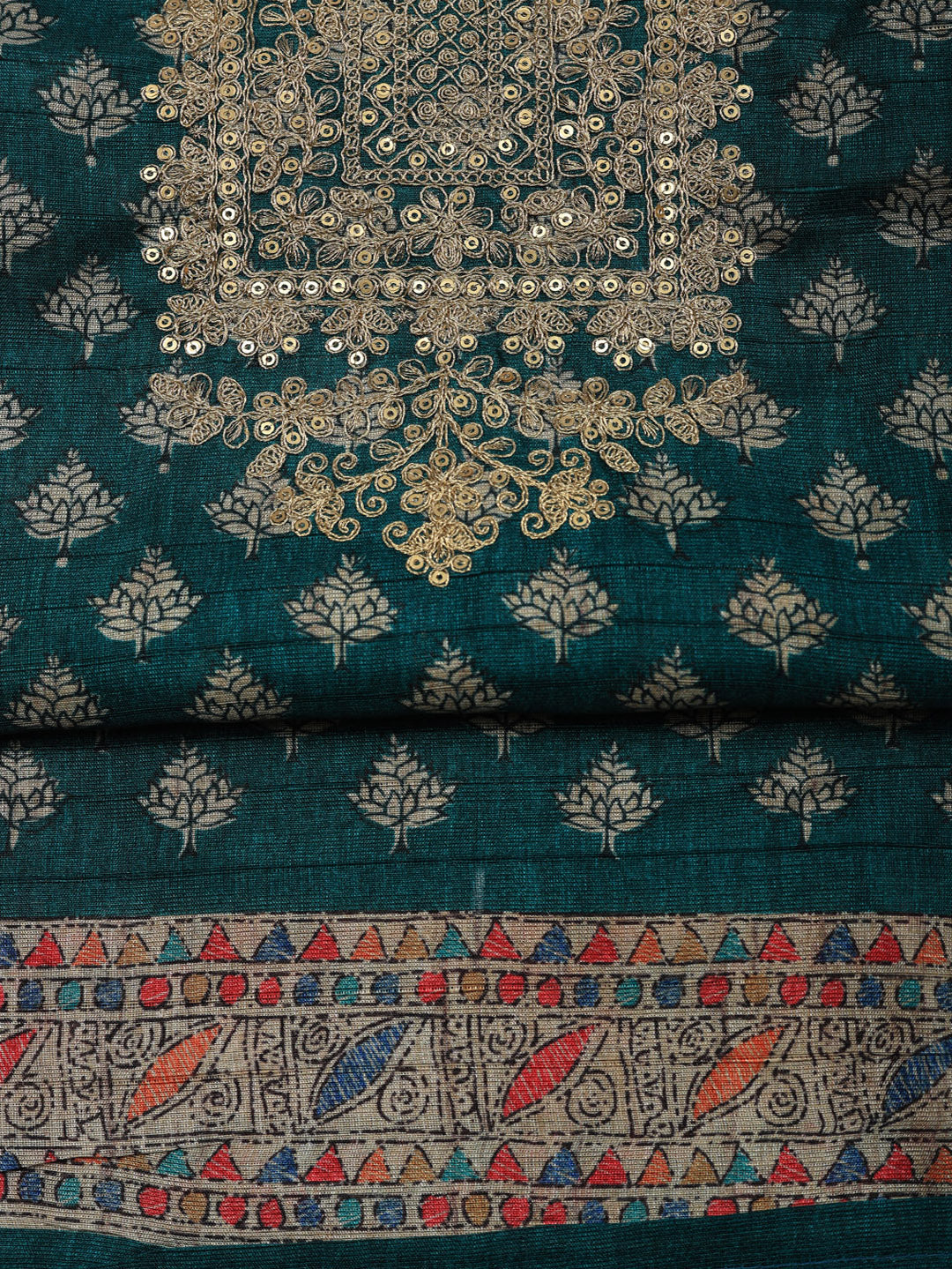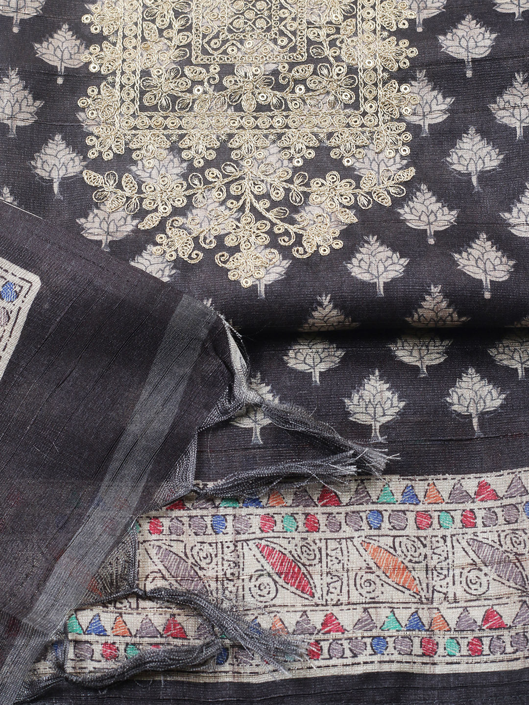 Embroidered Cotton Blend Unstitched Suit With Pant & Dupatta