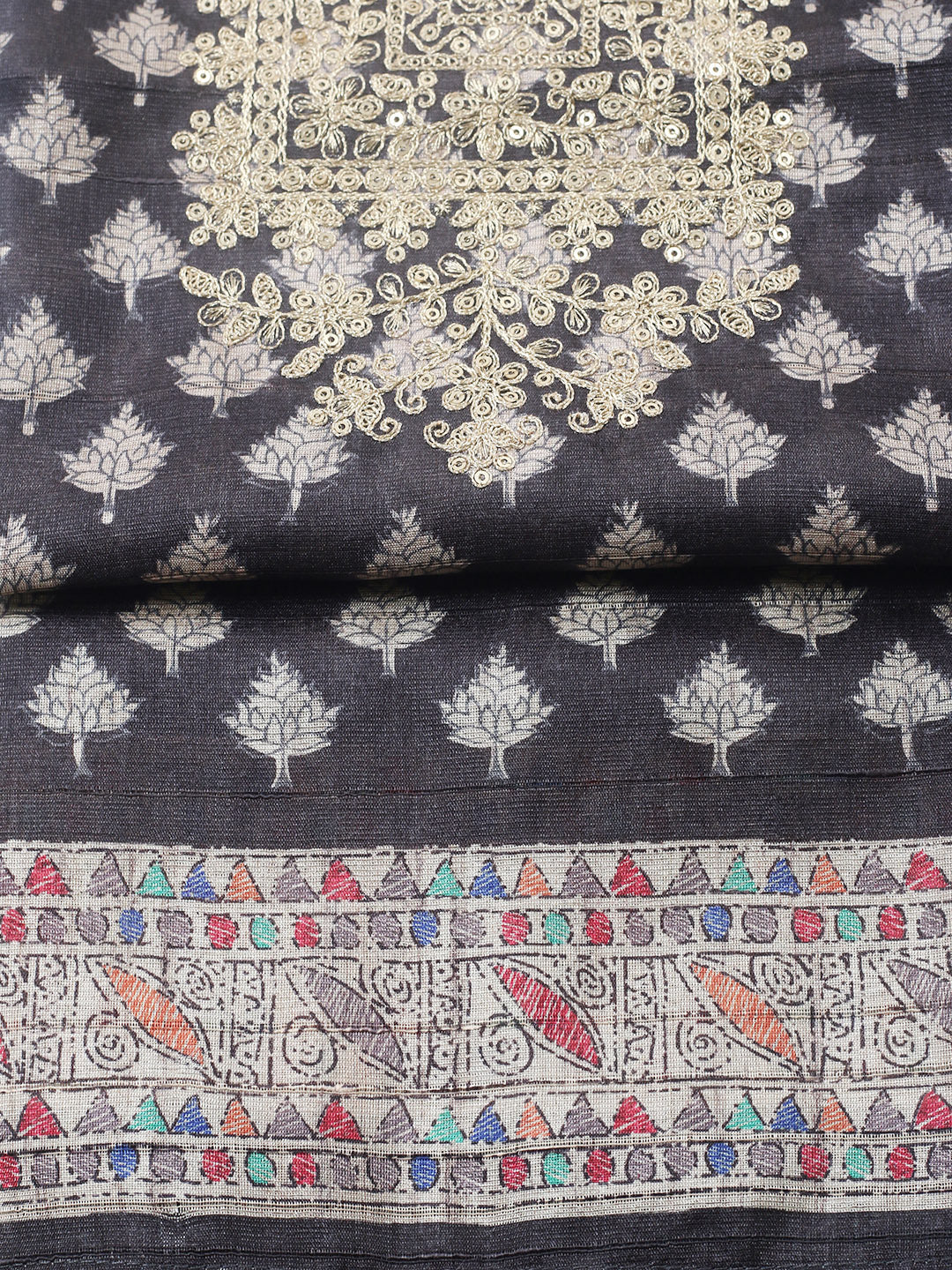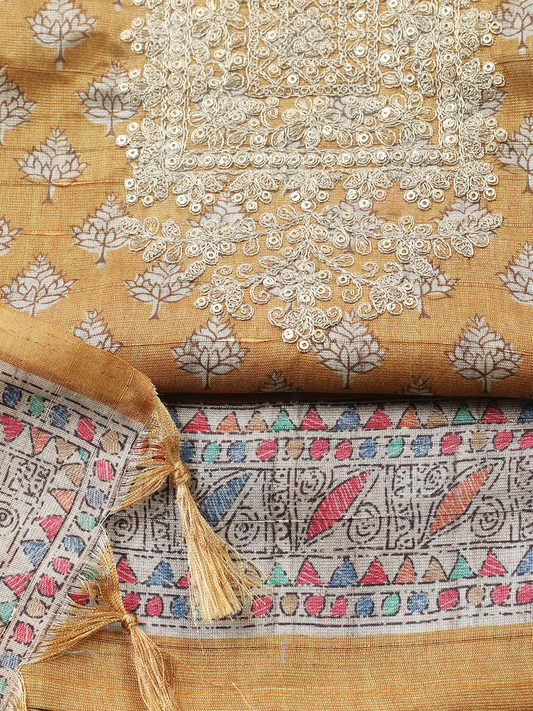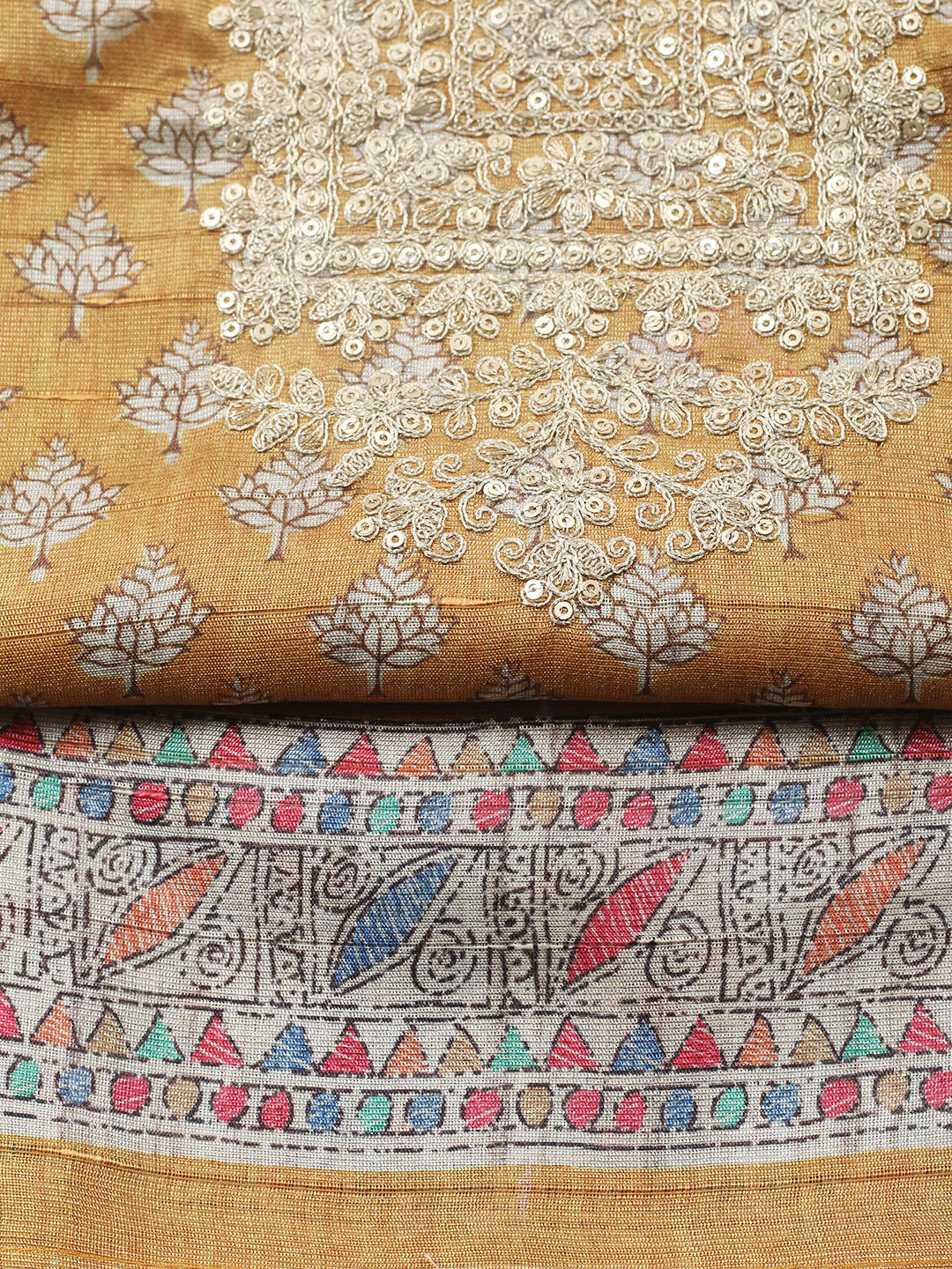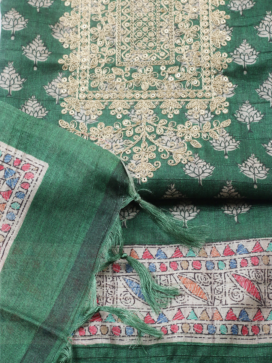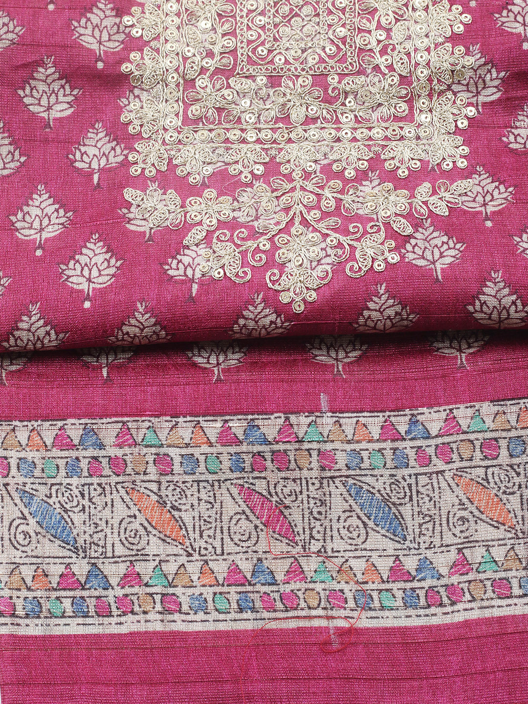 Embroidered Cotton Blend Unstitched Suit With Pant & Dupatta