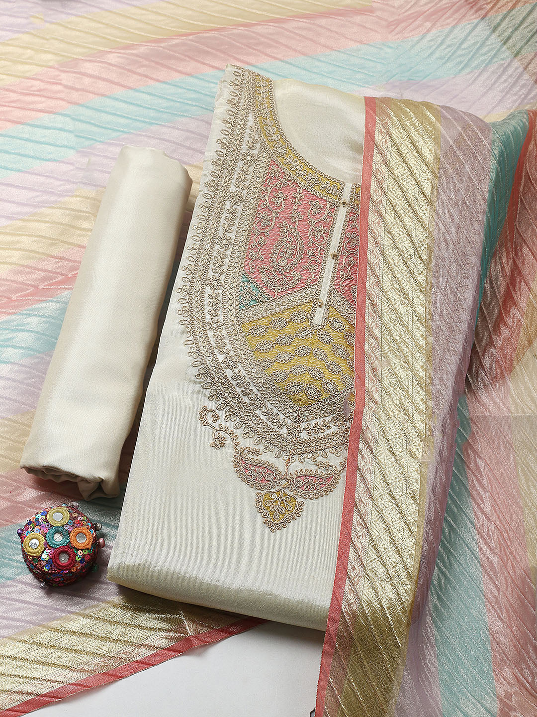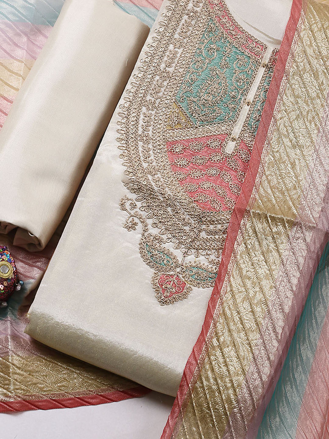 Embroidered Tissue Ustitched Suit With Pant & Dupatta