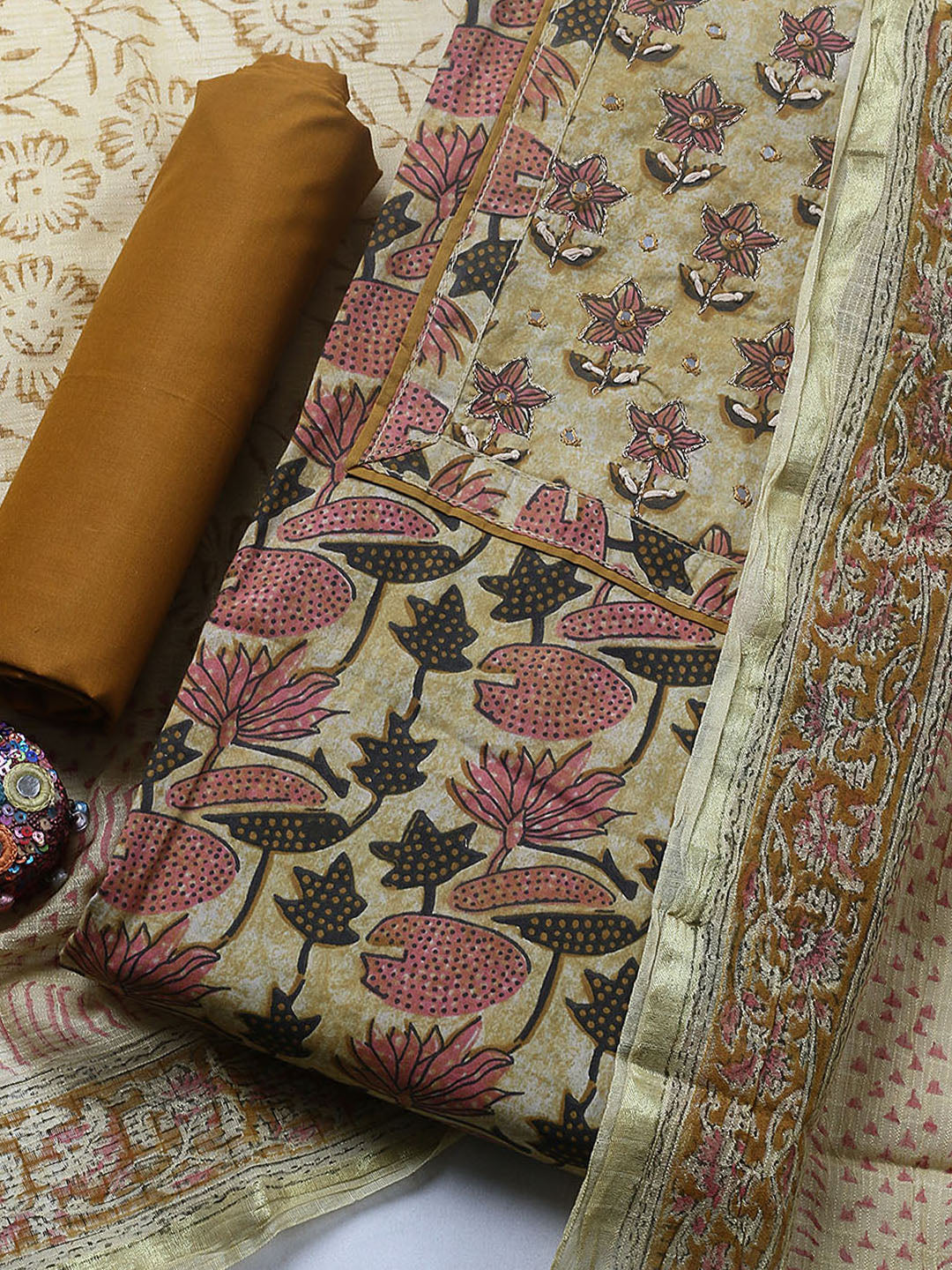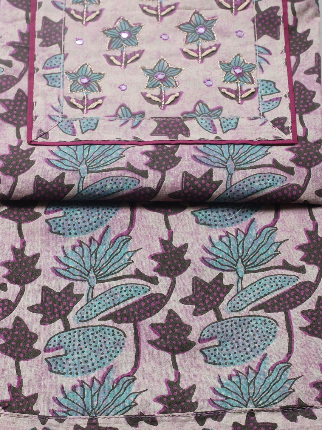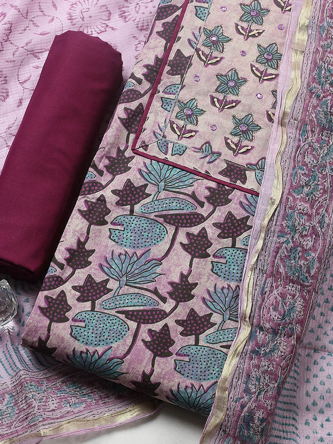 Printed Cotton Blend Ustitched Suit With Pant & Dupatta