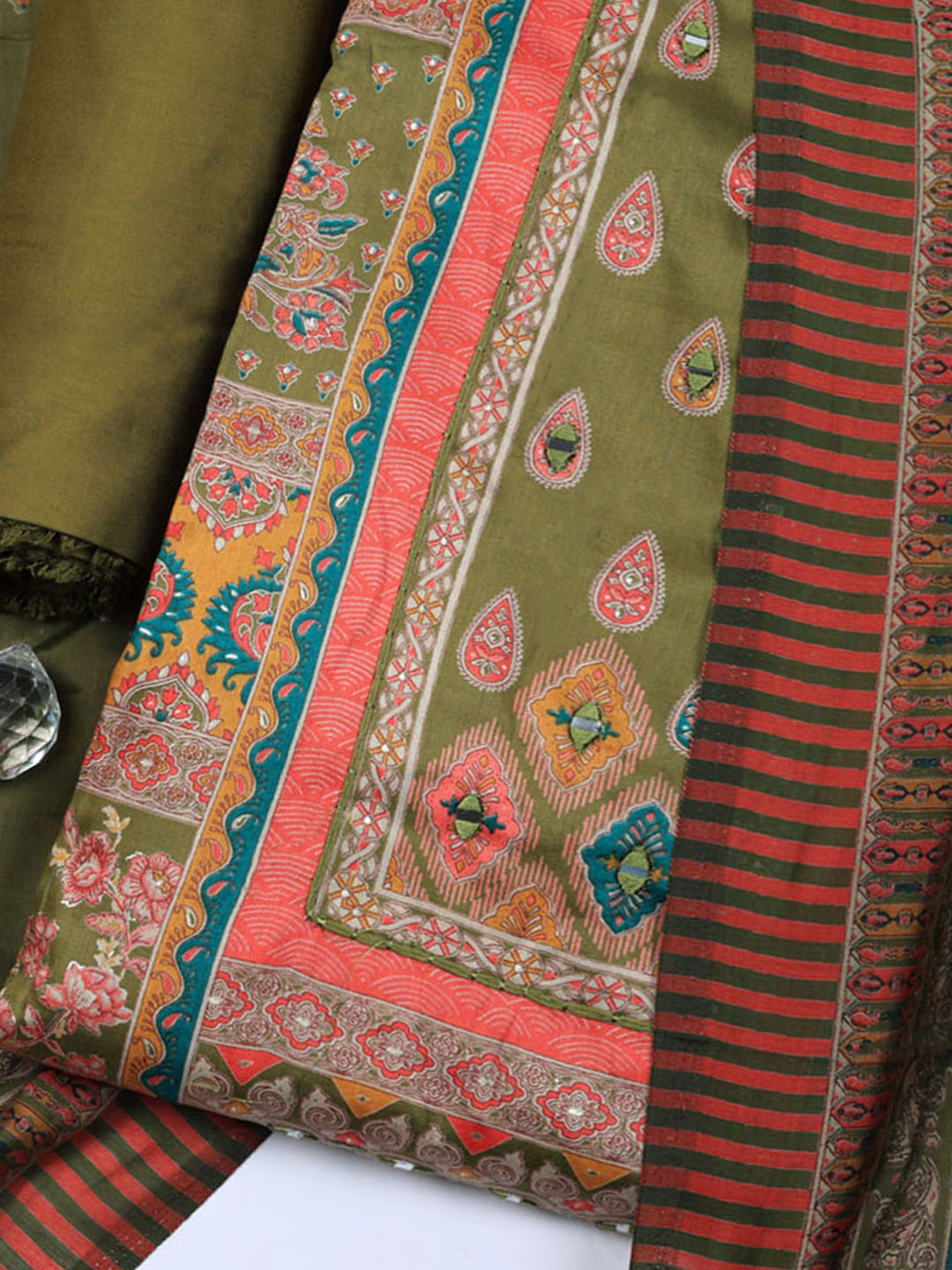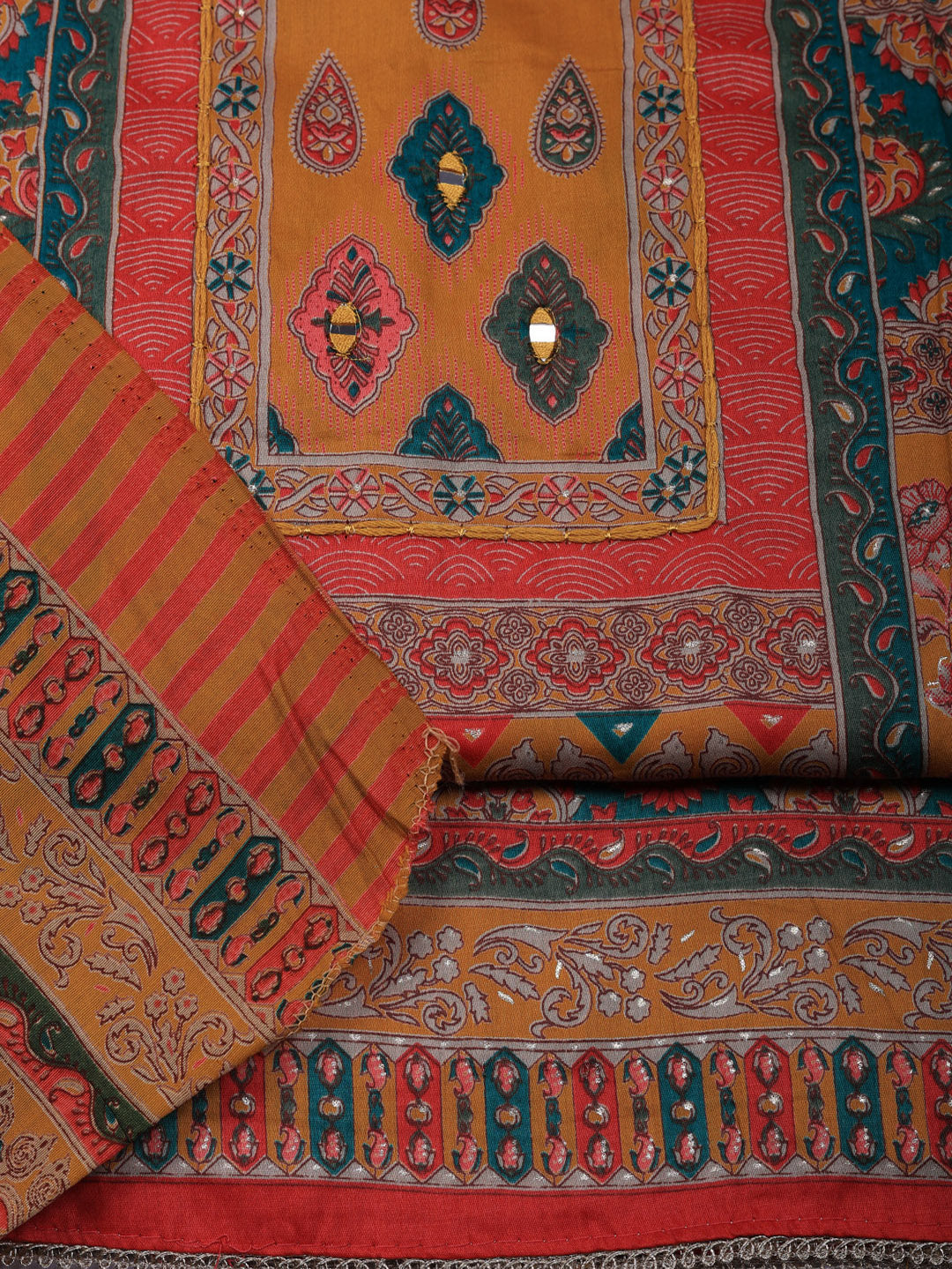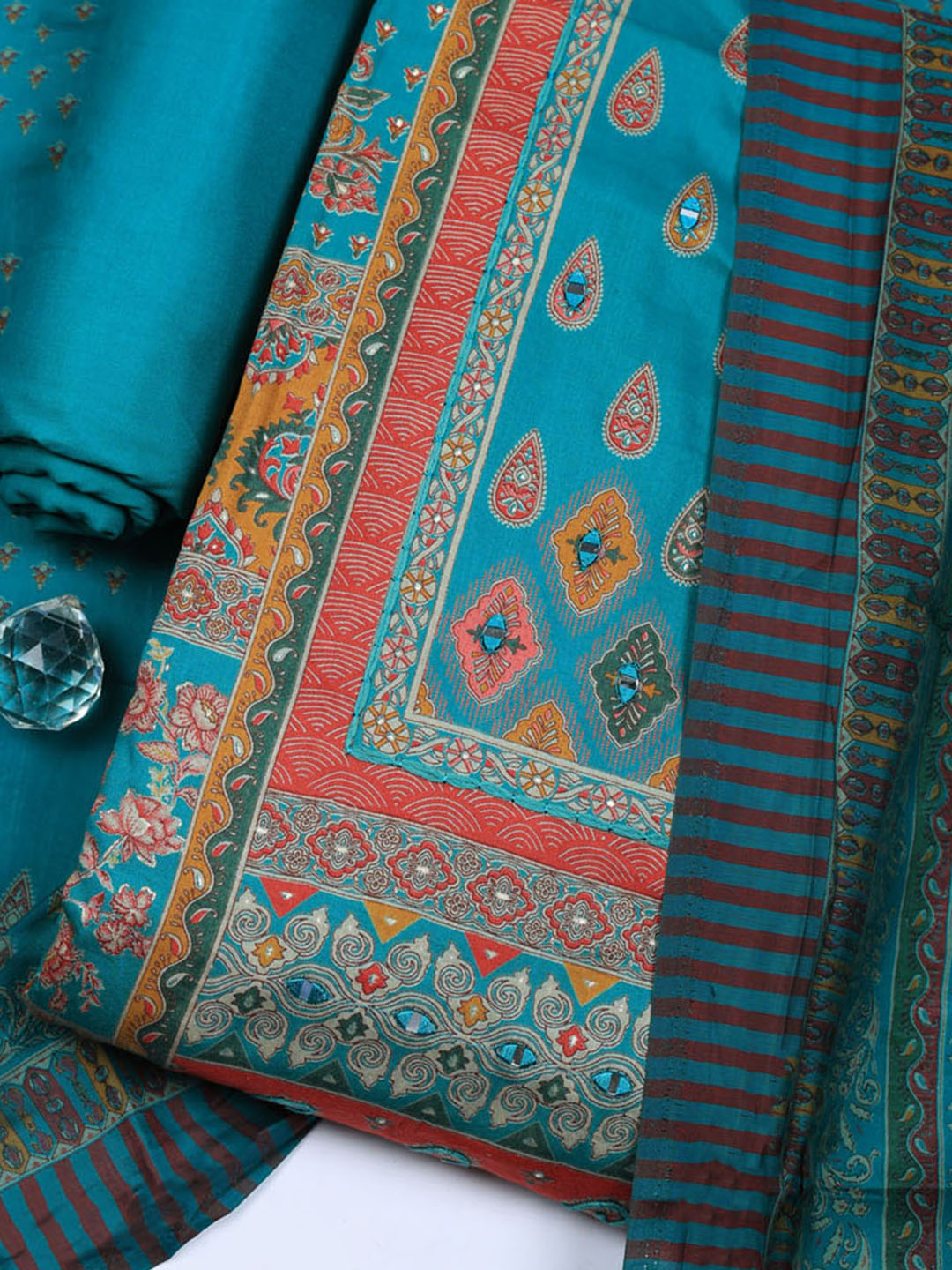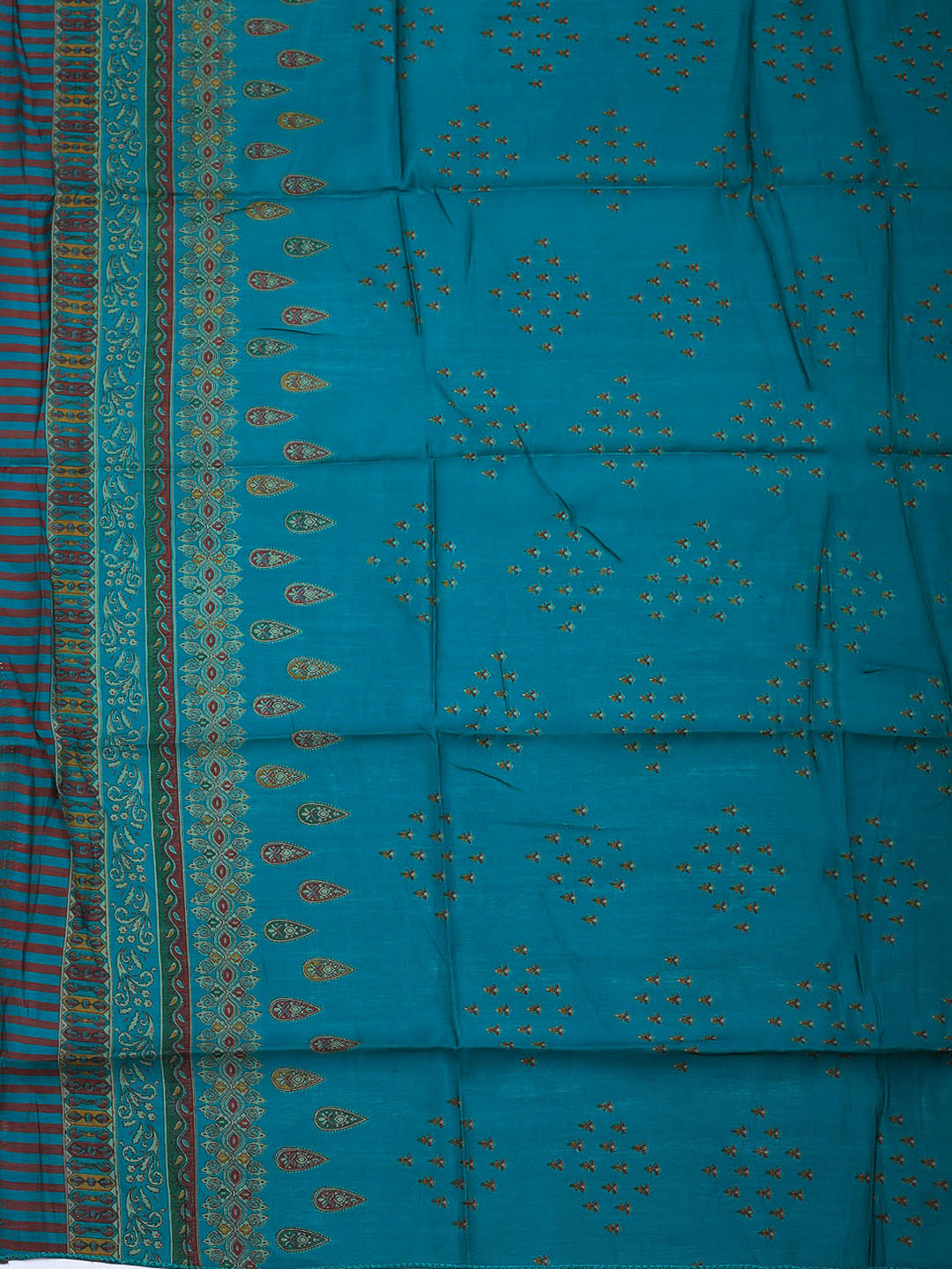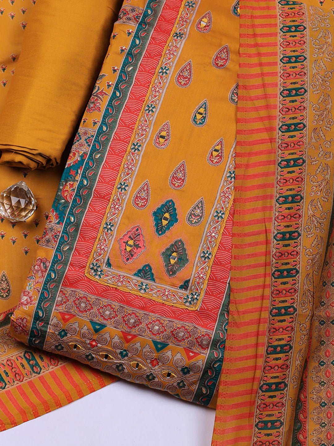 Printed Cotton Blend Unstitched Suit With Pant & Dupatta