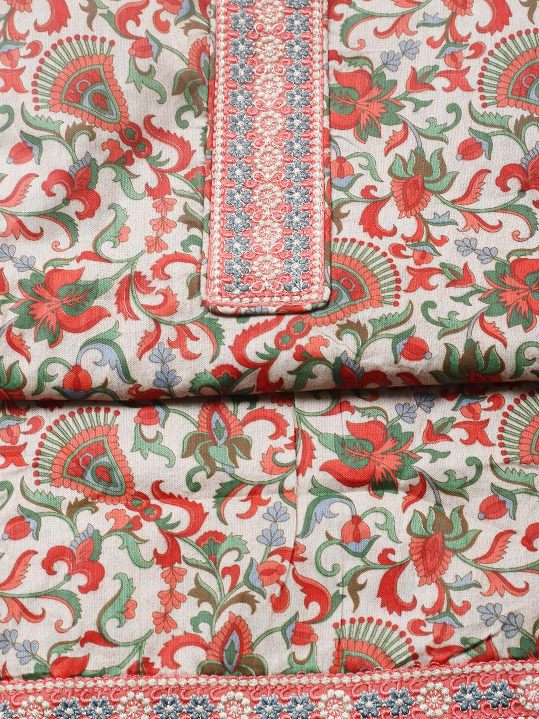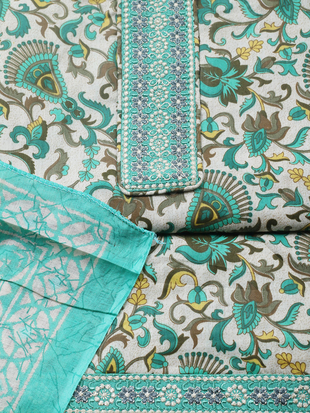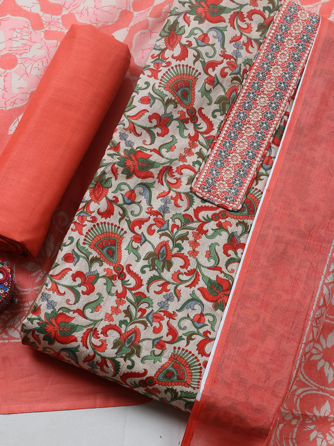 Printed Cotton Blend Unstitched Suit With Pant & Dupatta