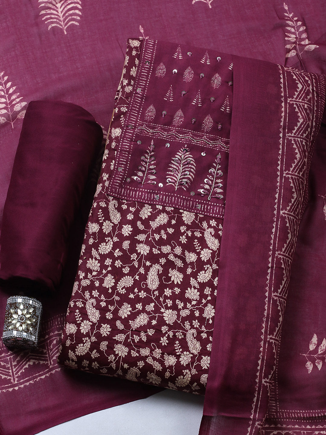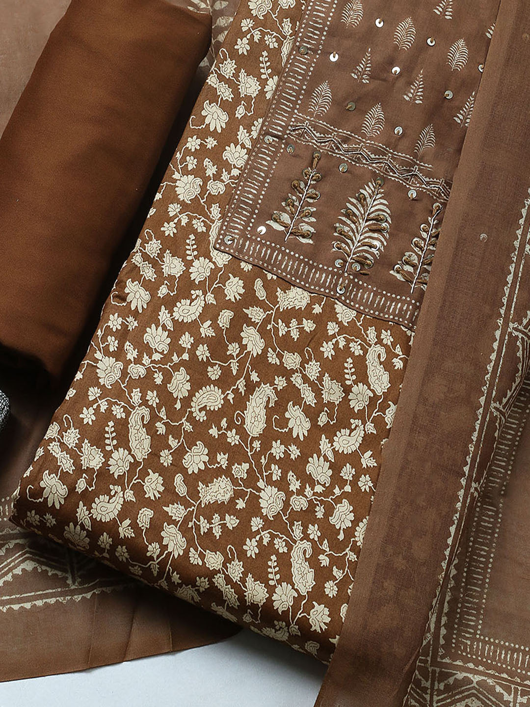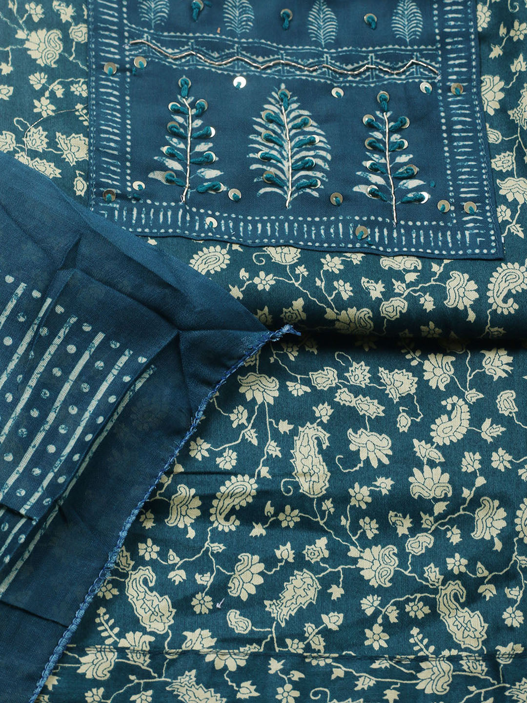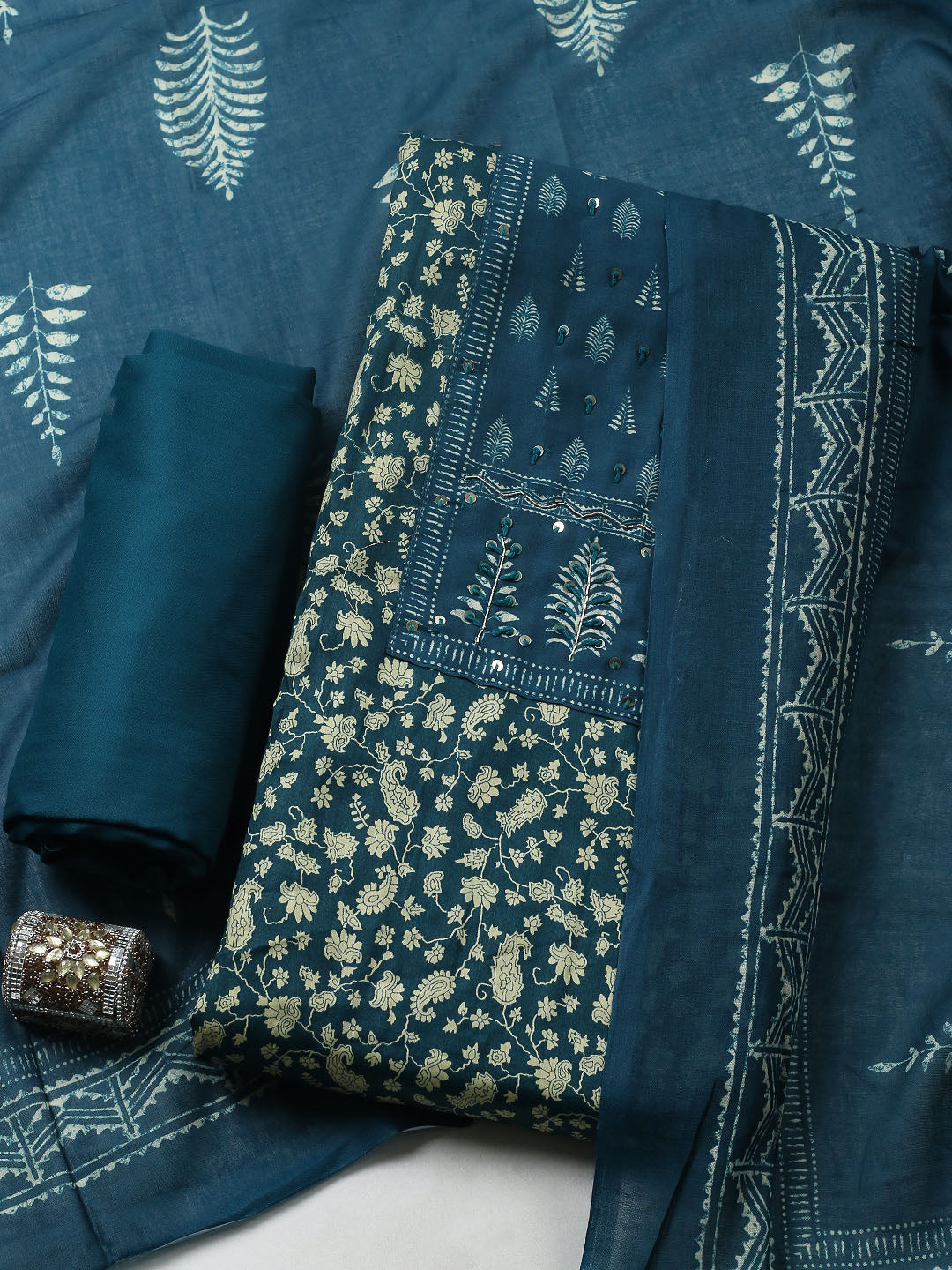 Printed Cotton Blend Ustitched Suit With Pant & Dupatta