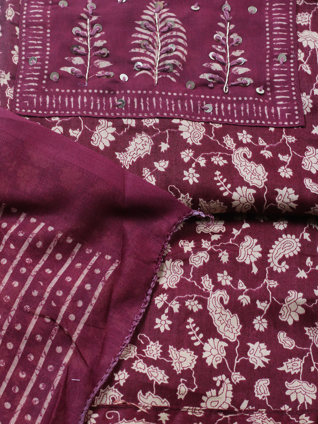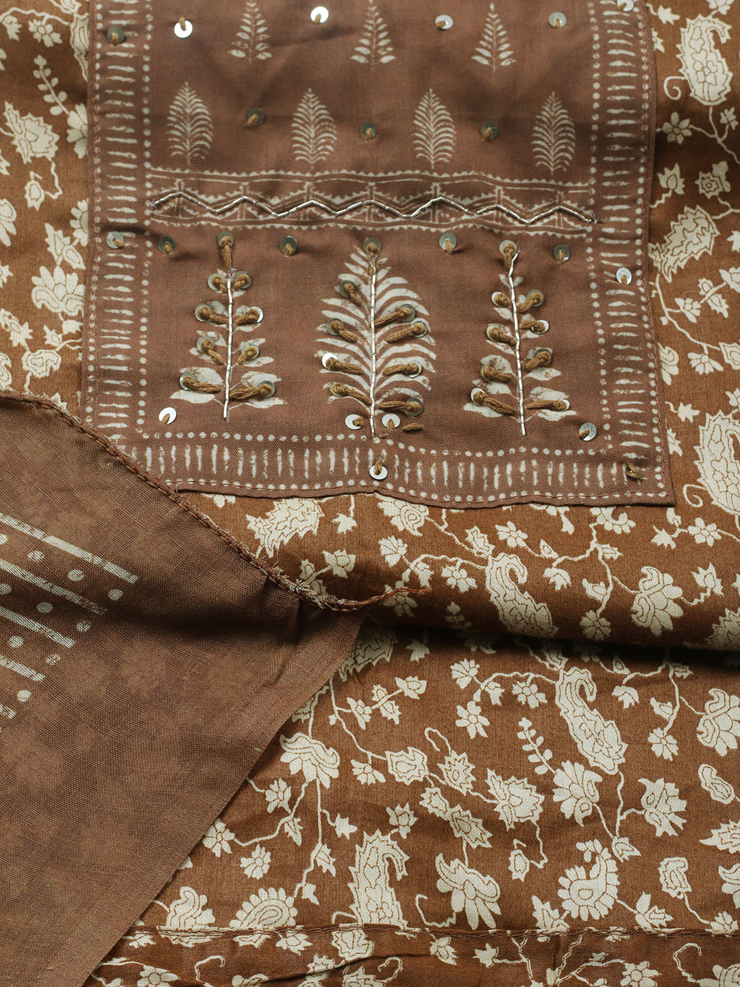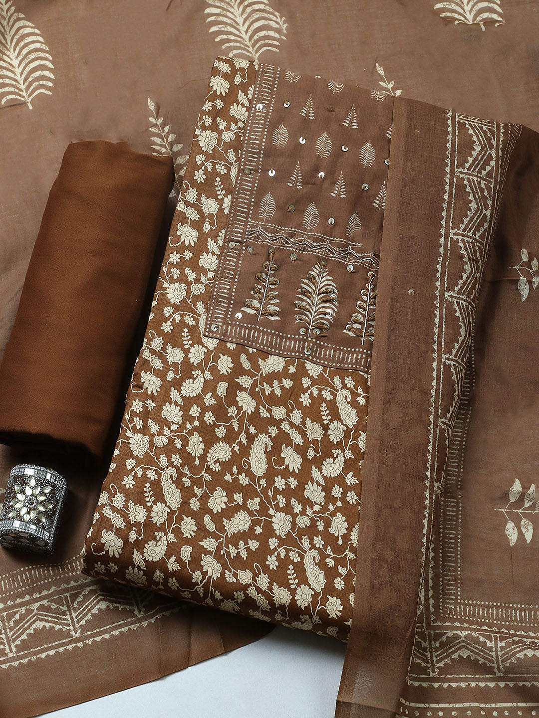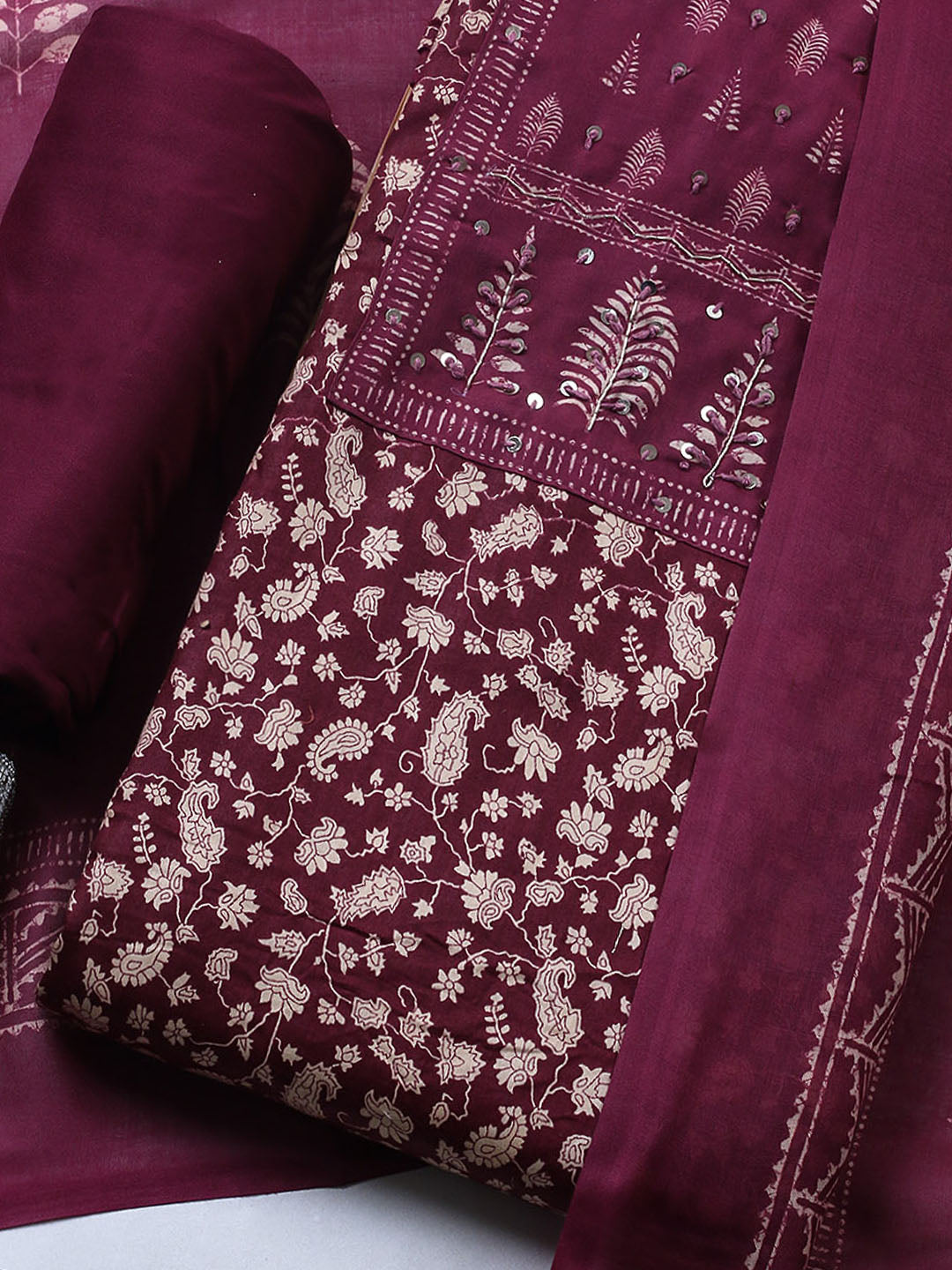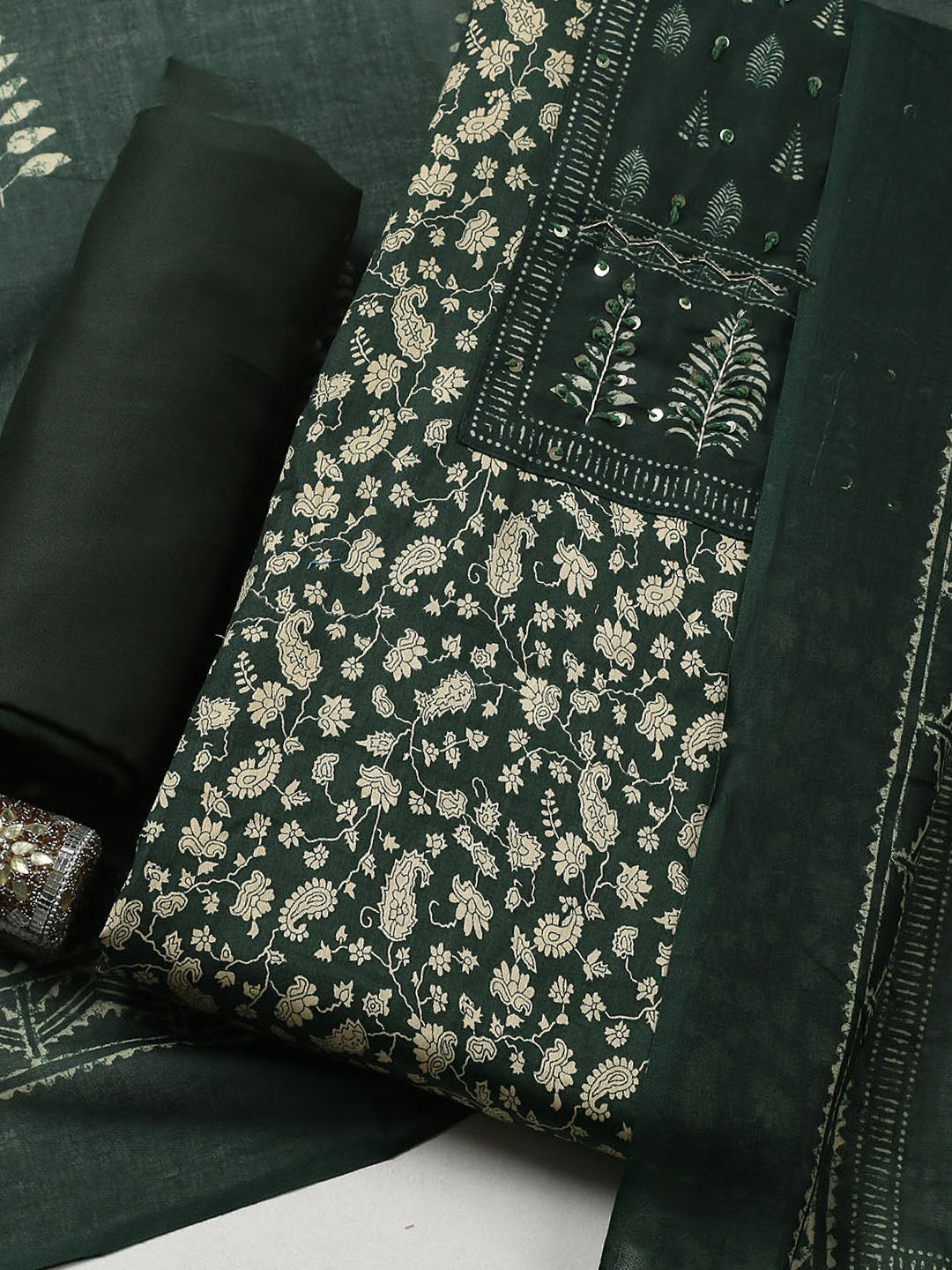 Printed Cotton Blend Ustitched Suit With Pant & Dupatta